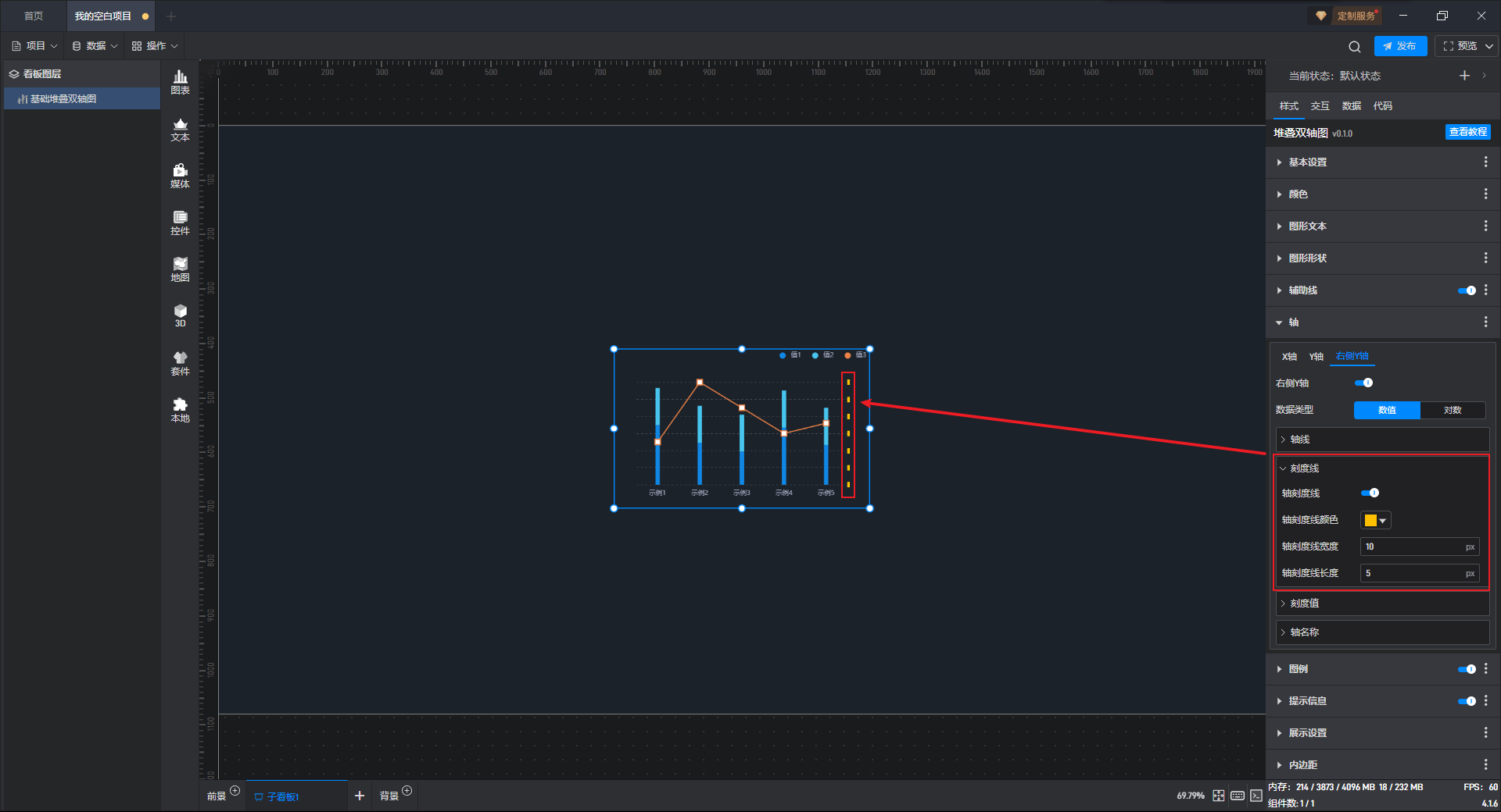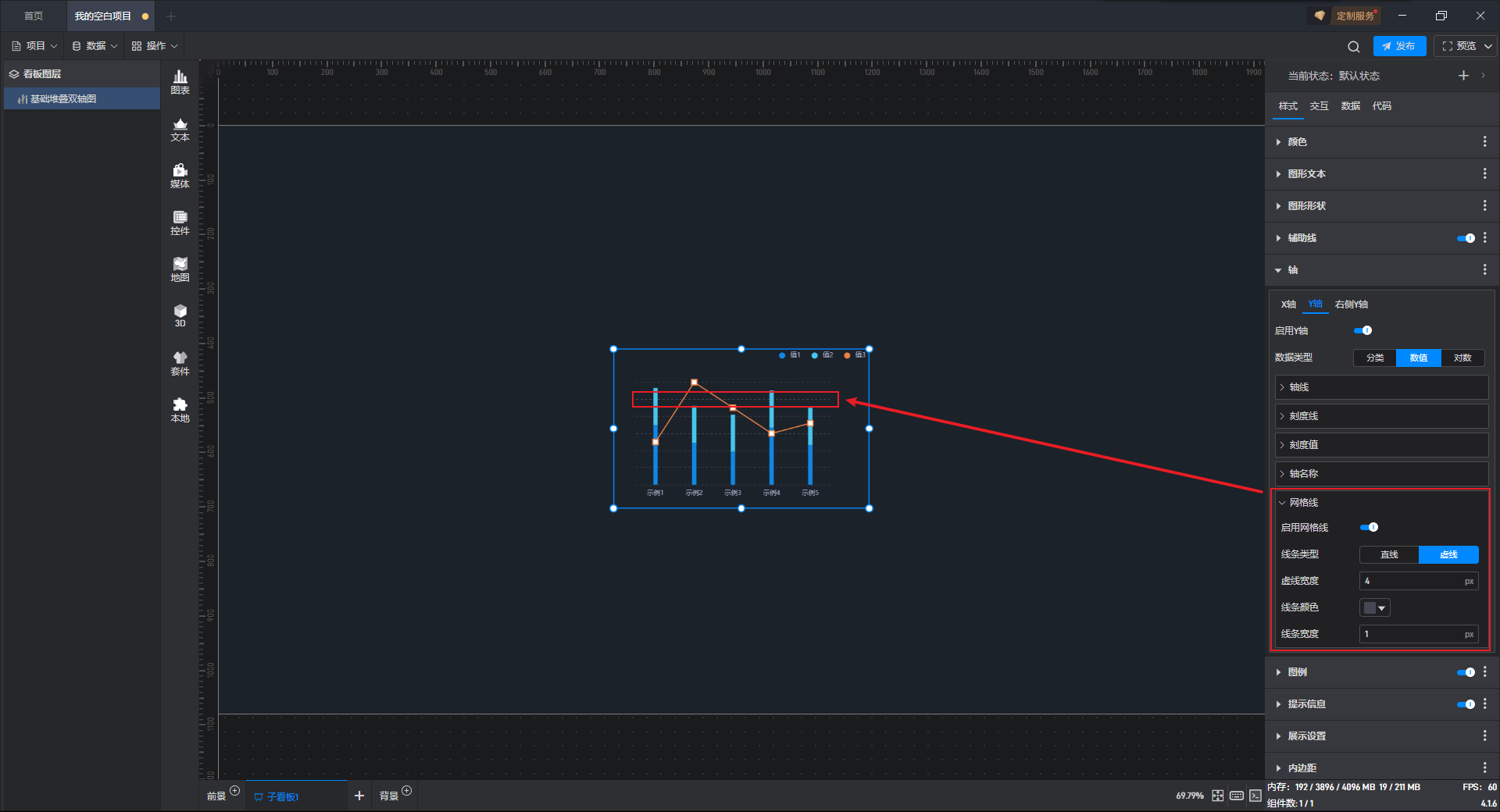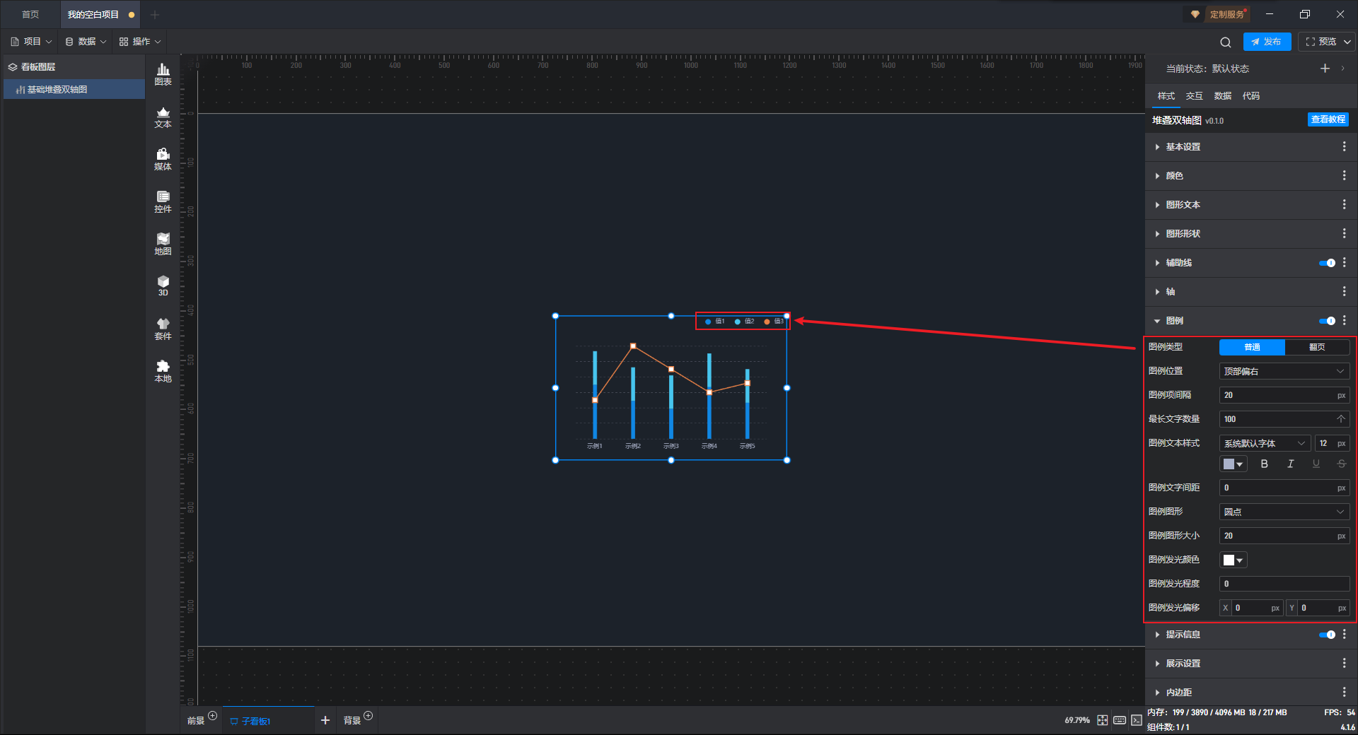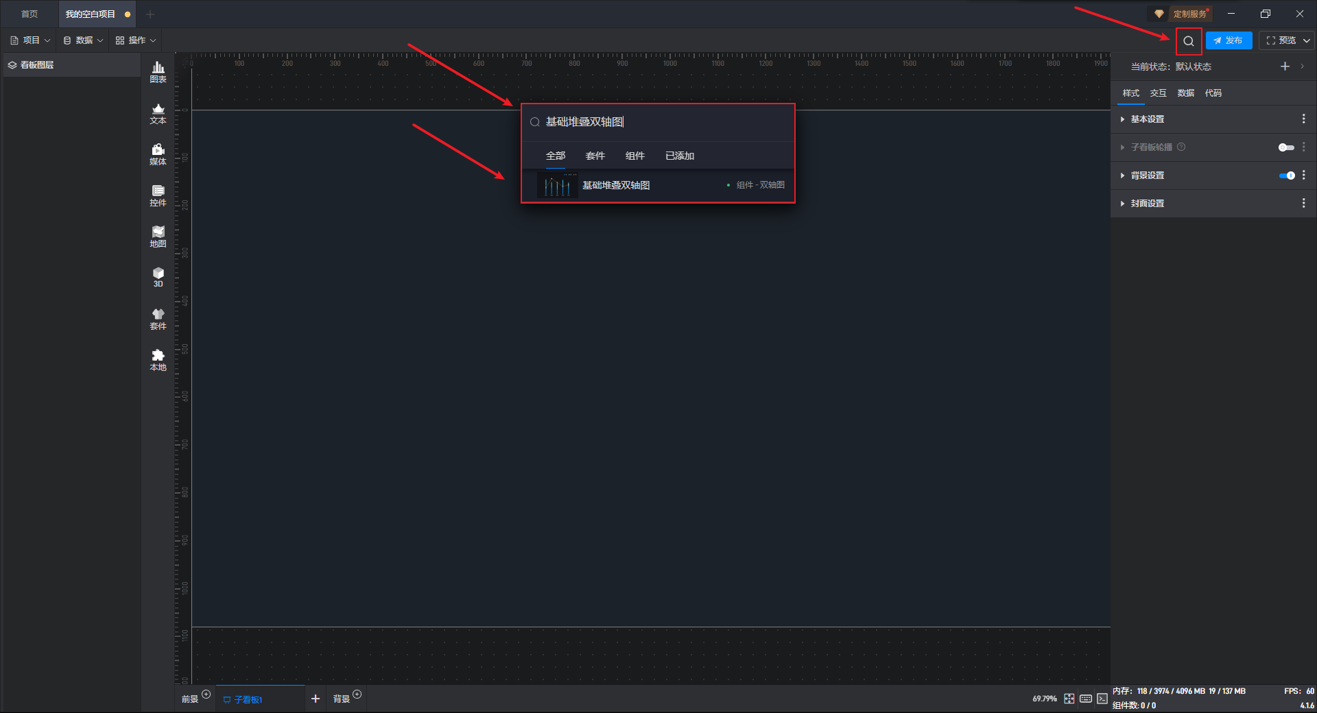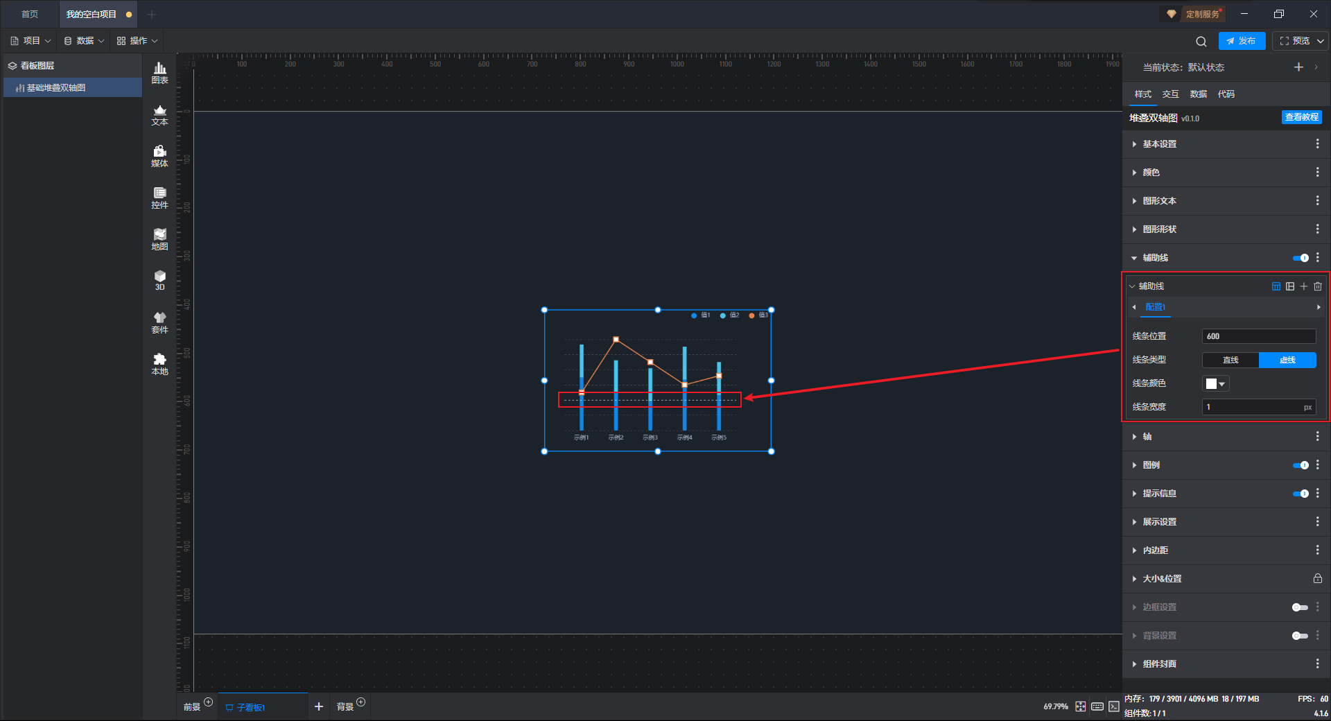 下面我们以基础堆叠双轴图为例,为大家介绍一下组件的使用步骤: