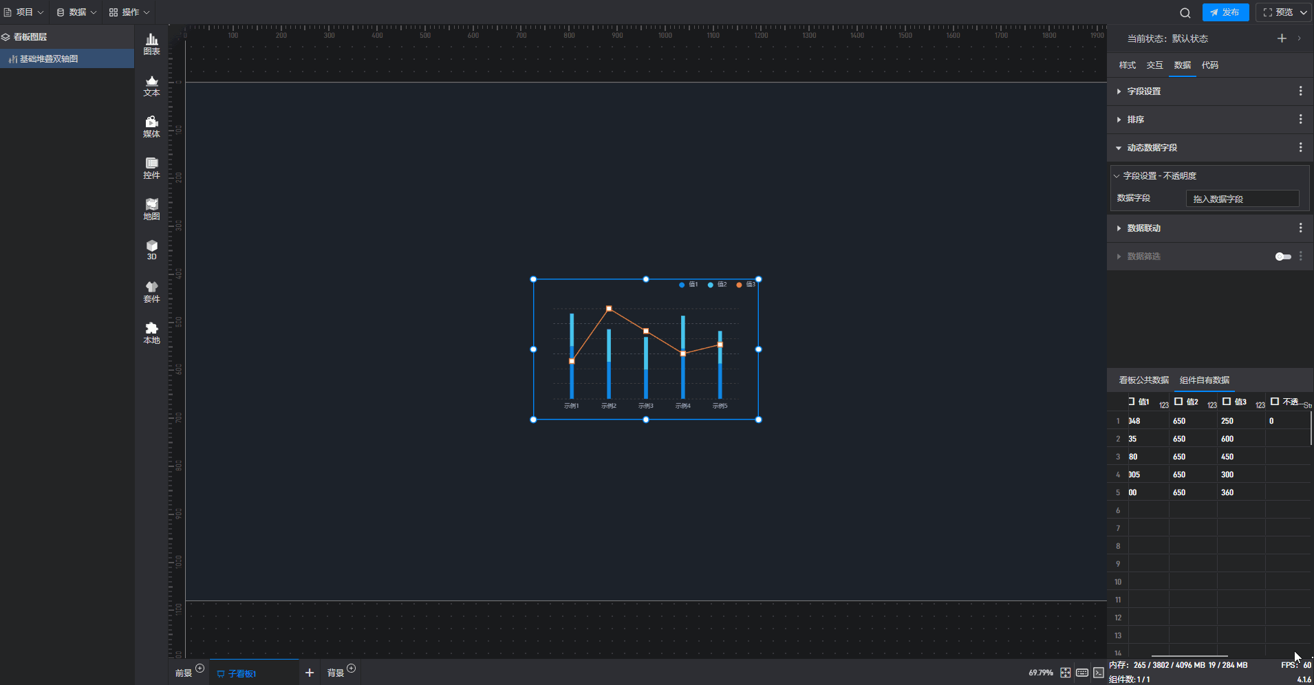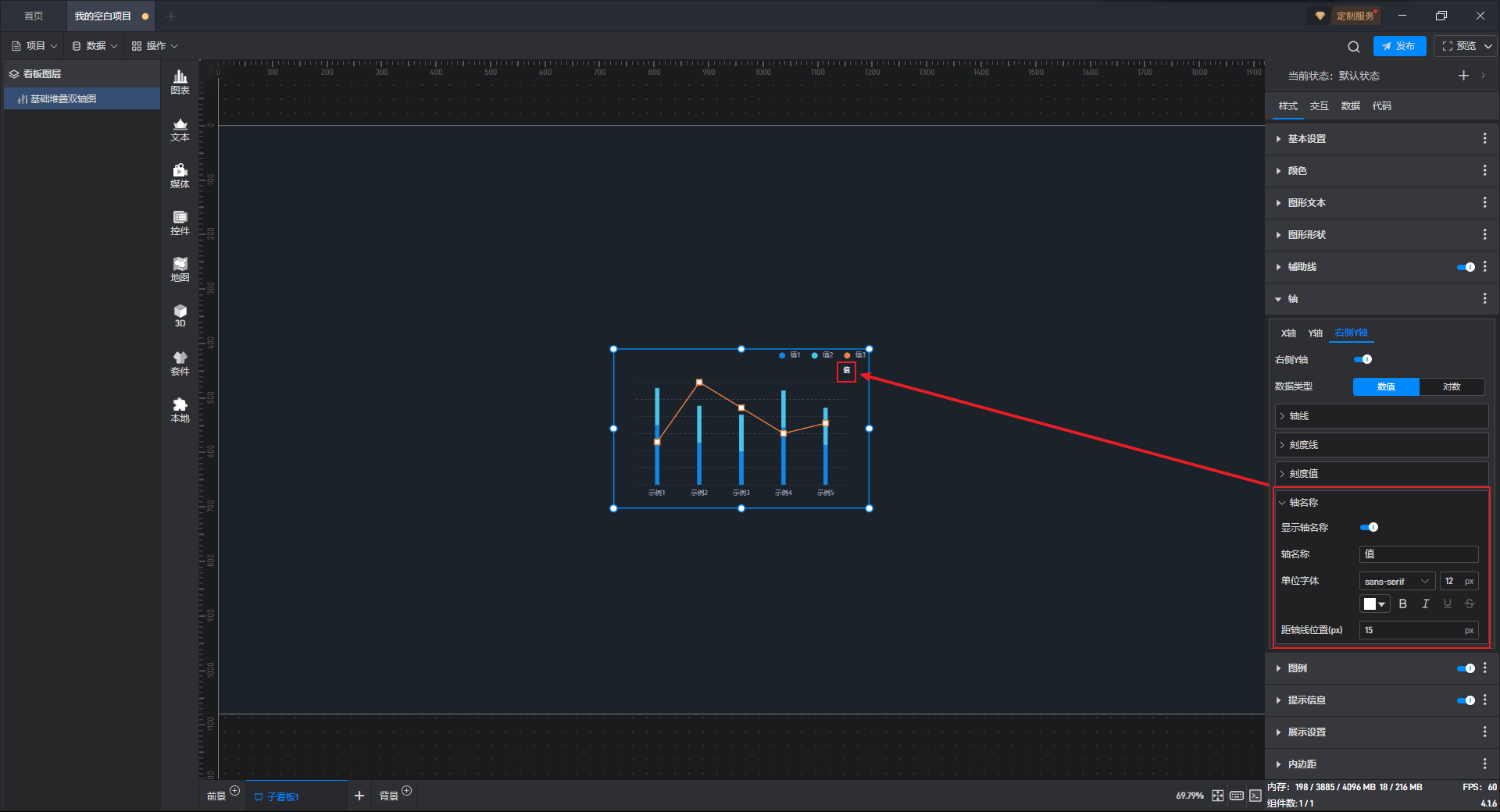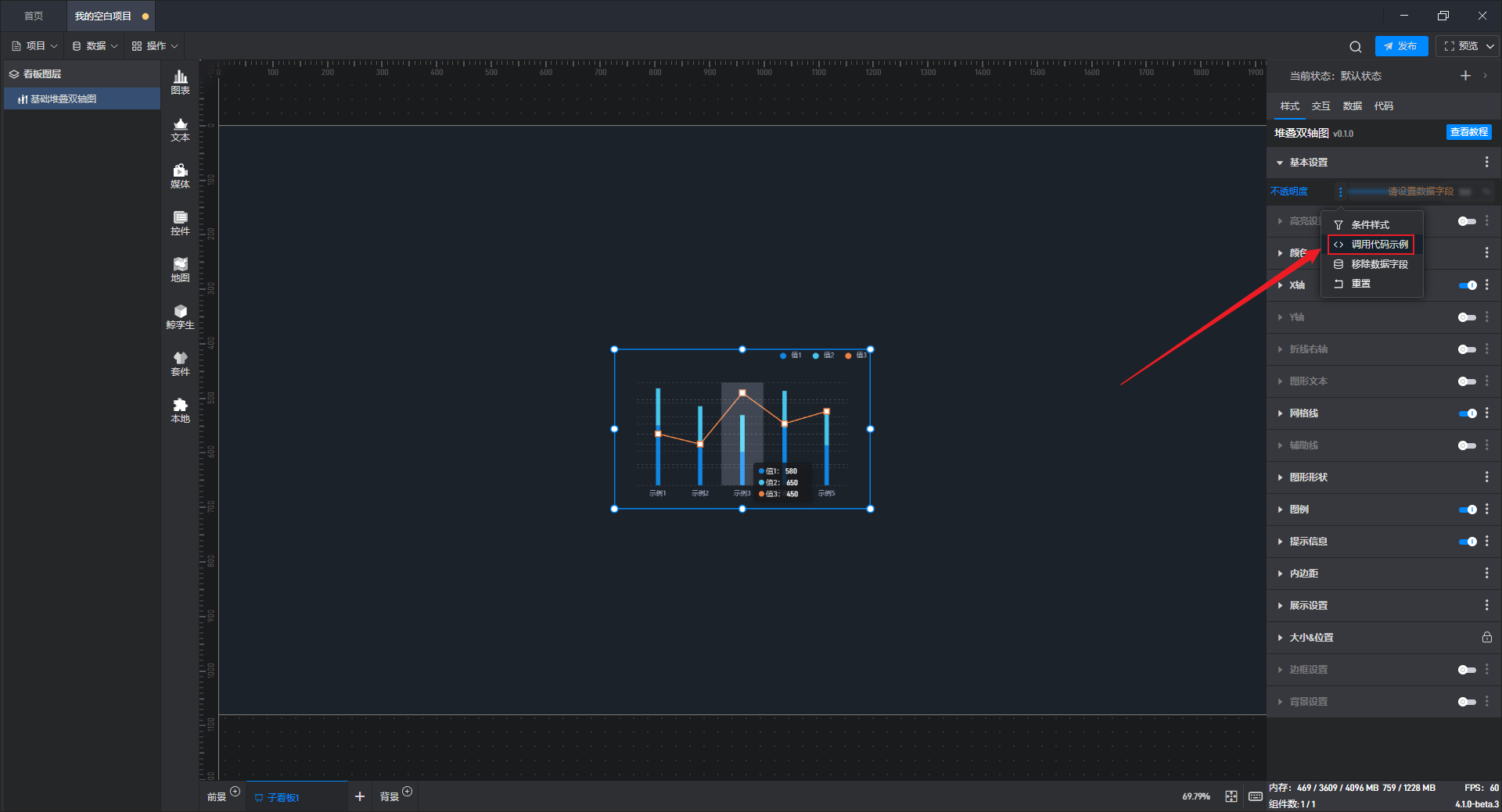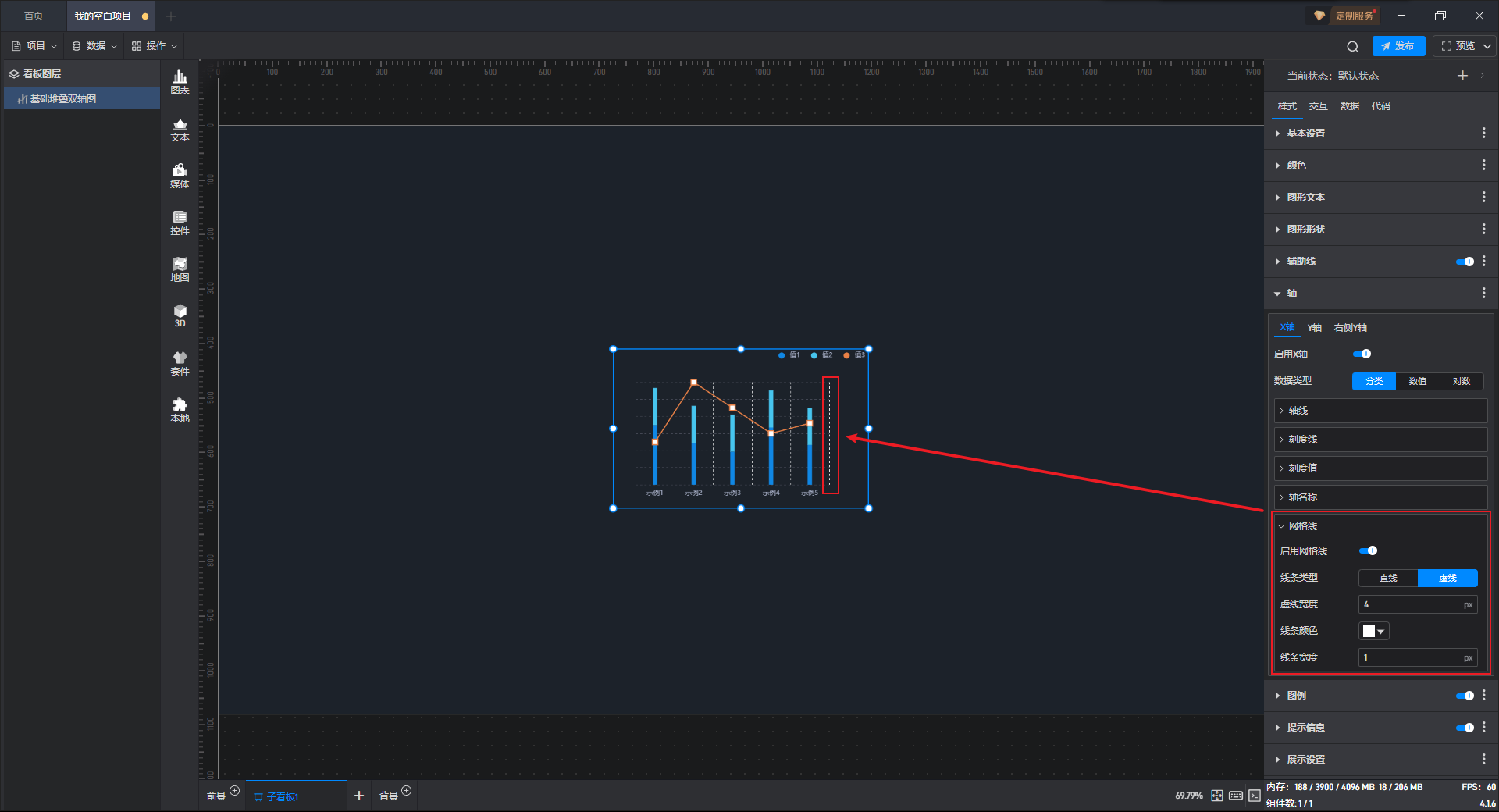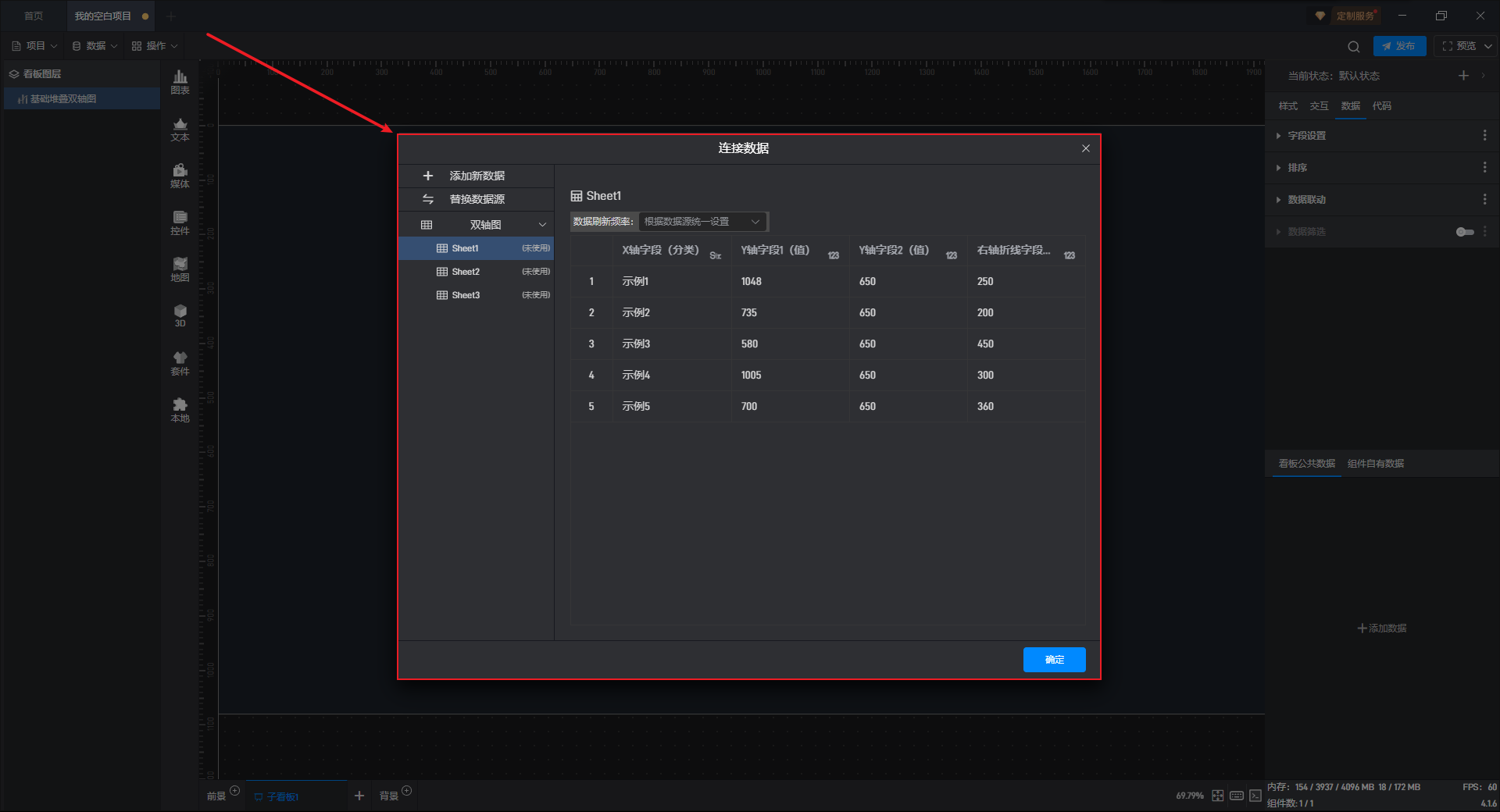 下面我们以基础堆叠双轴图为例,为大家介绍一下组件的使用步骤: