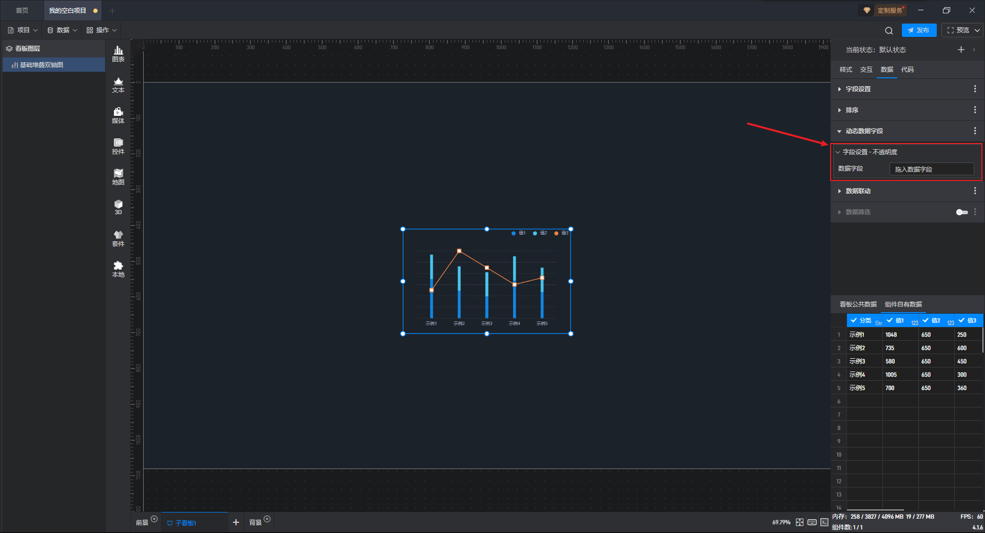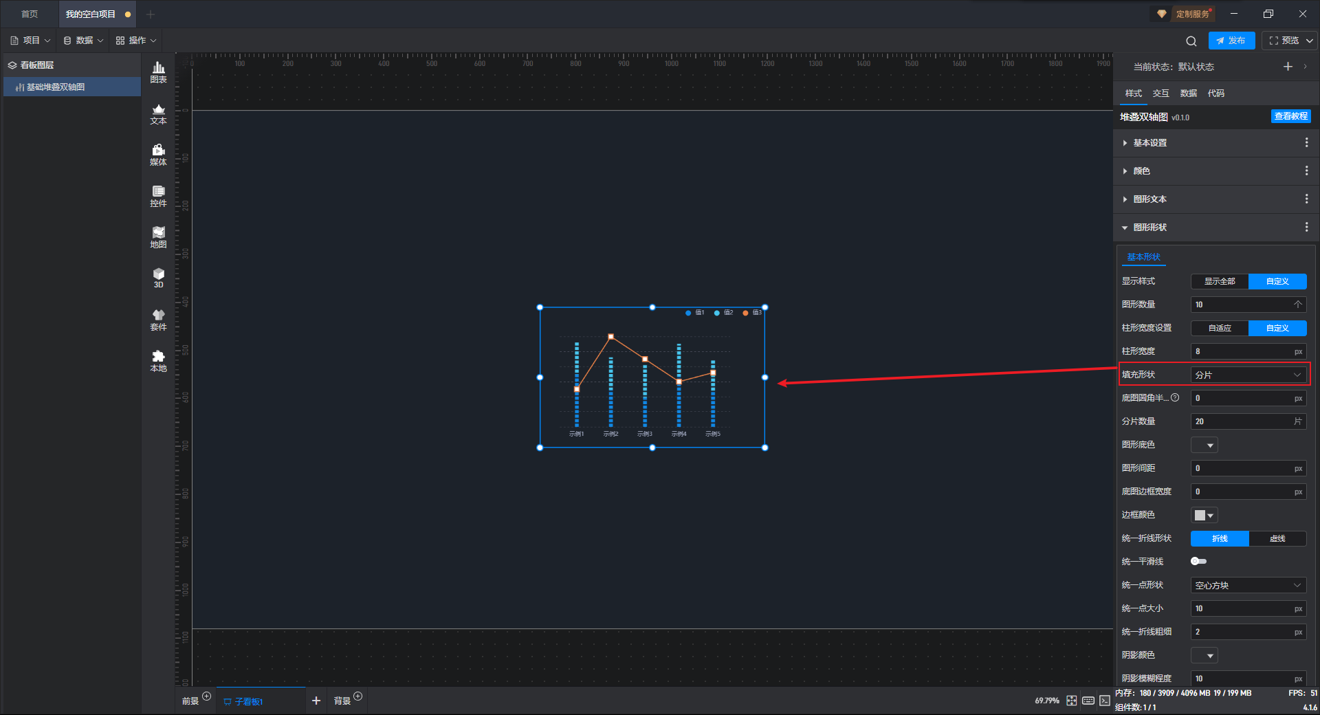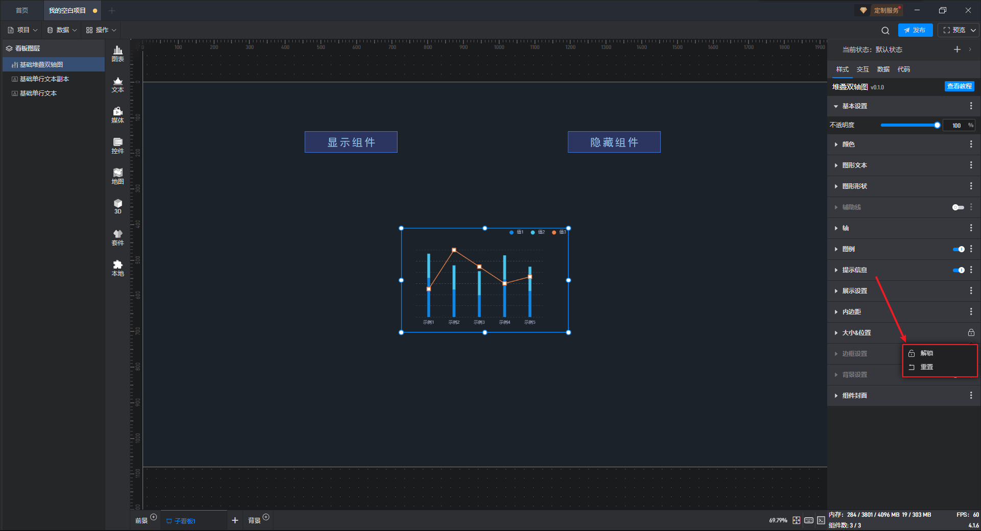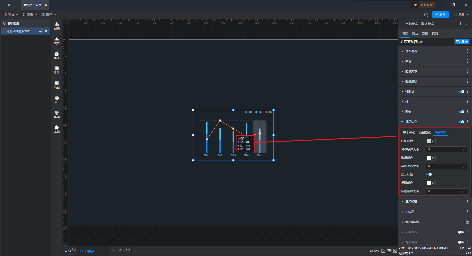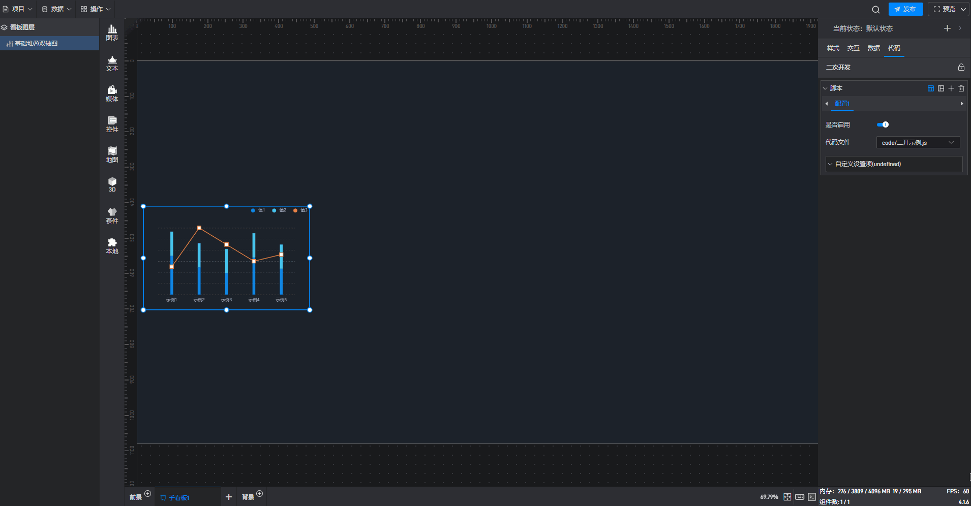 下面我们以基础堆叠双轴图为例,为大家介绍一下组件的使用步骤: