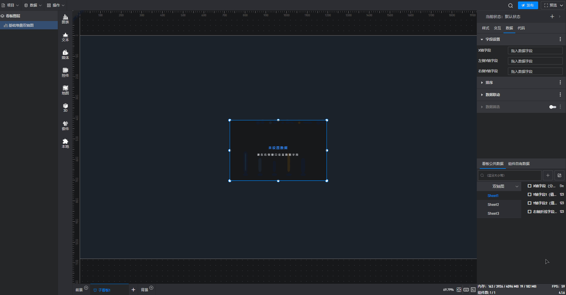 删除当前字段后,右侧字段栏为空,同时组件会提示“未设置数据”。