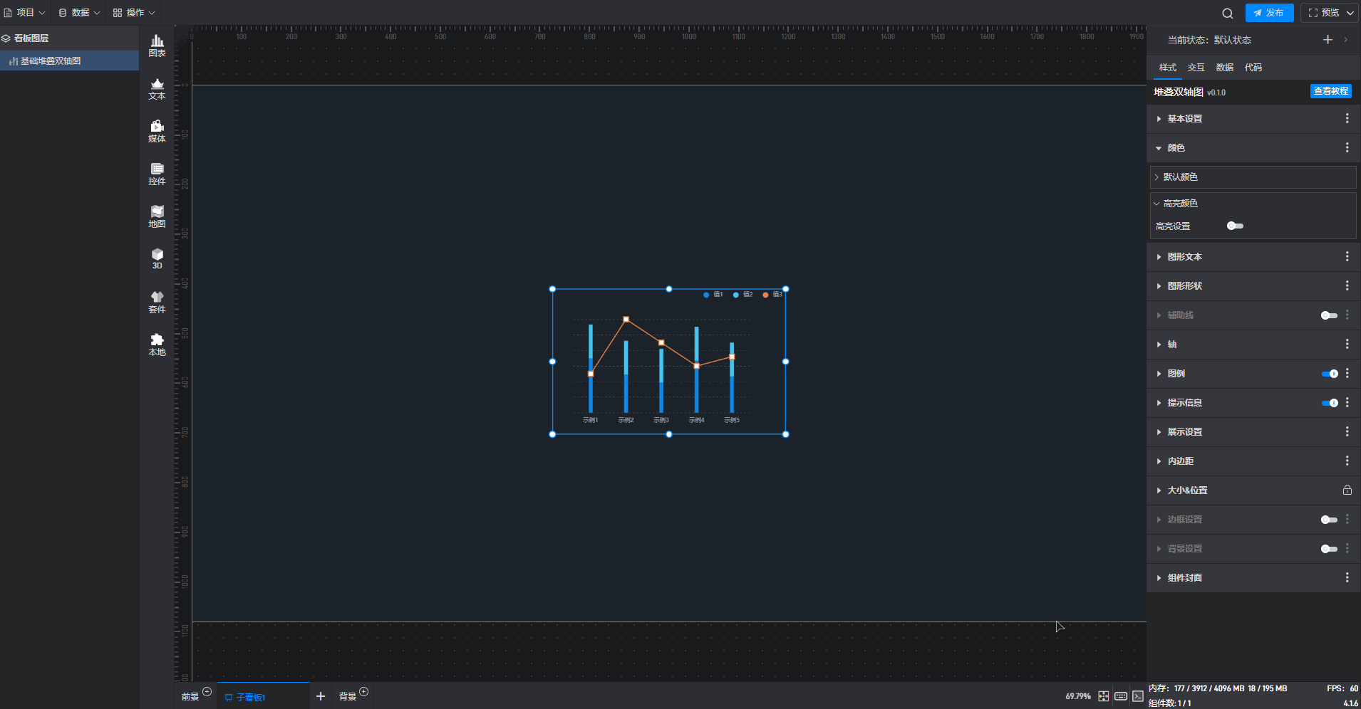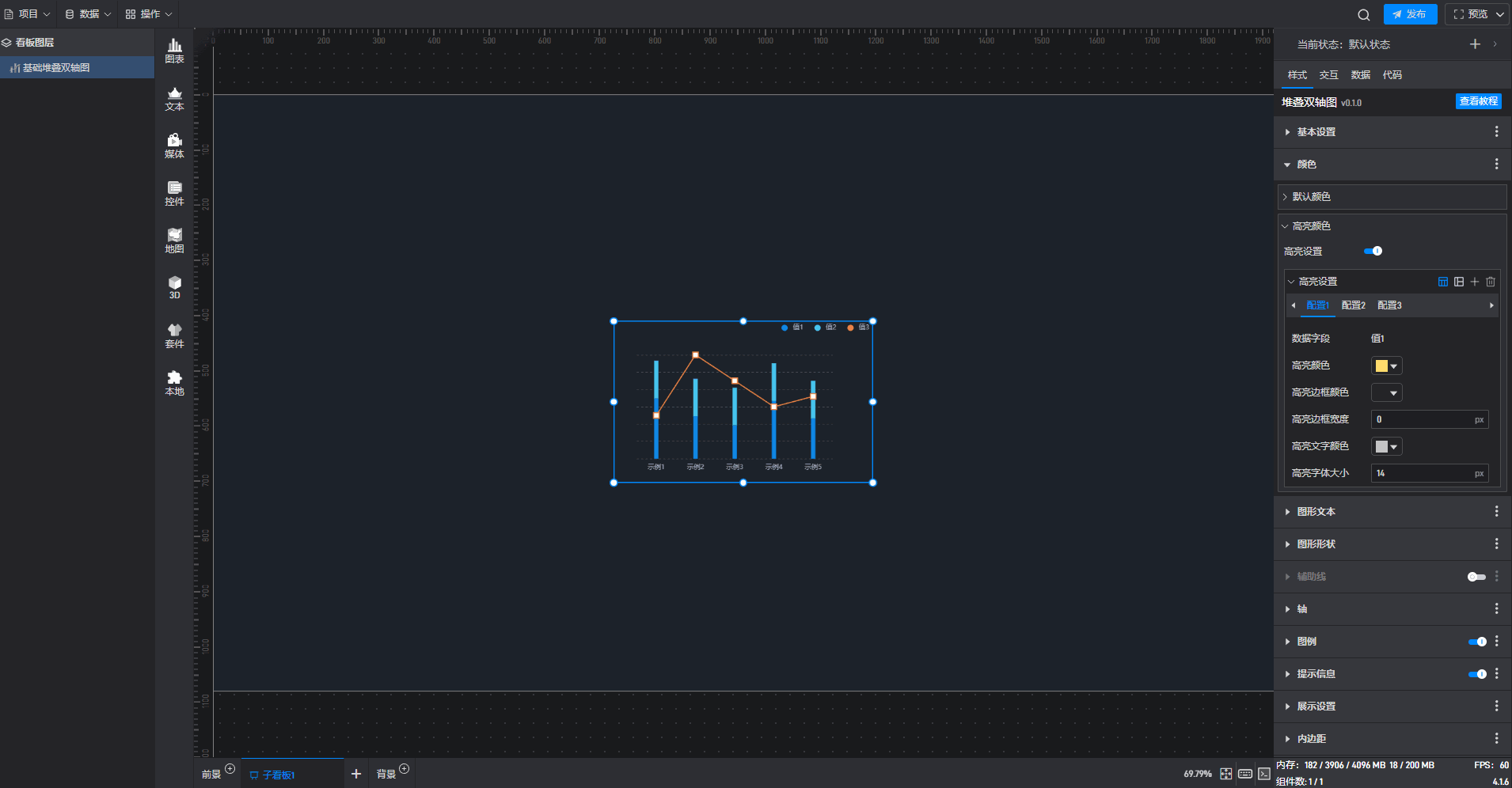 这是一个没有开启“高亮设置”按钮的基础堆叠双轴图组件: