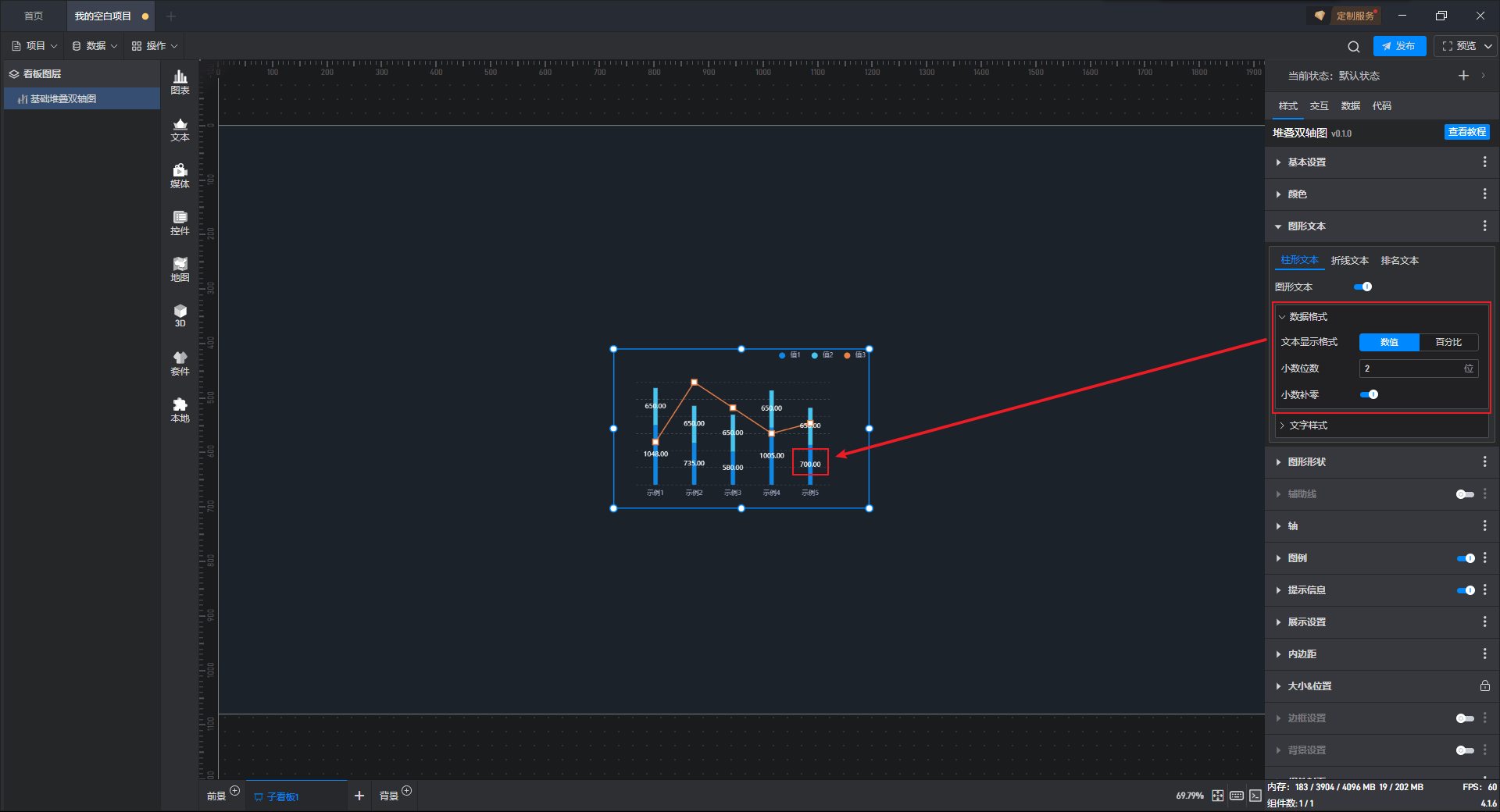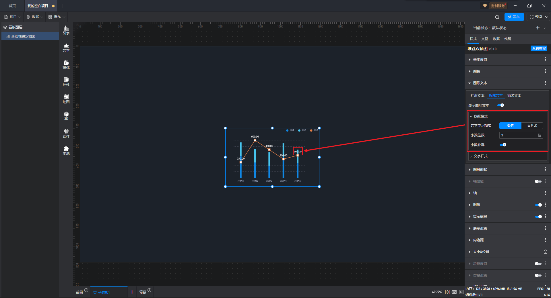 基础堆叠双轴图 开启 2 位小数补零,如下图所示: