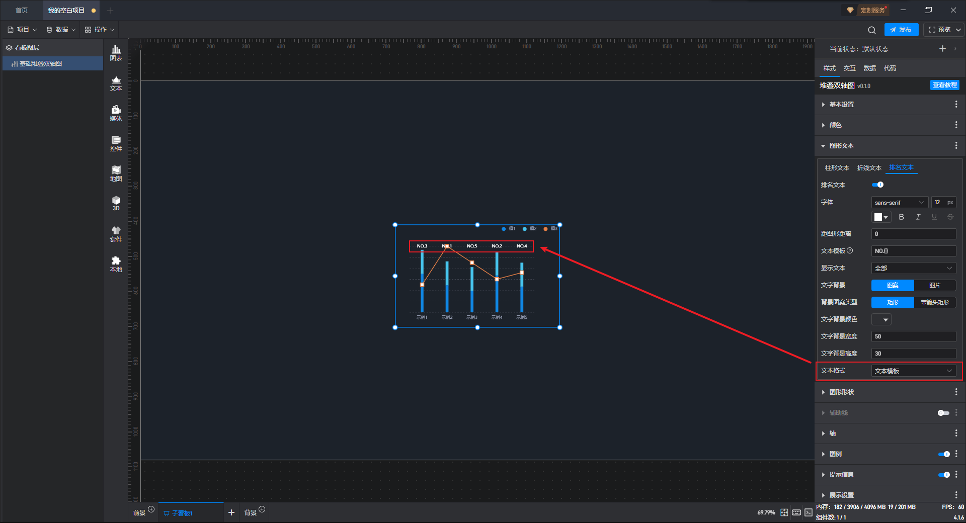 基础堆叠双轴图 排名文本格式为数值文本模板,如下图所示: