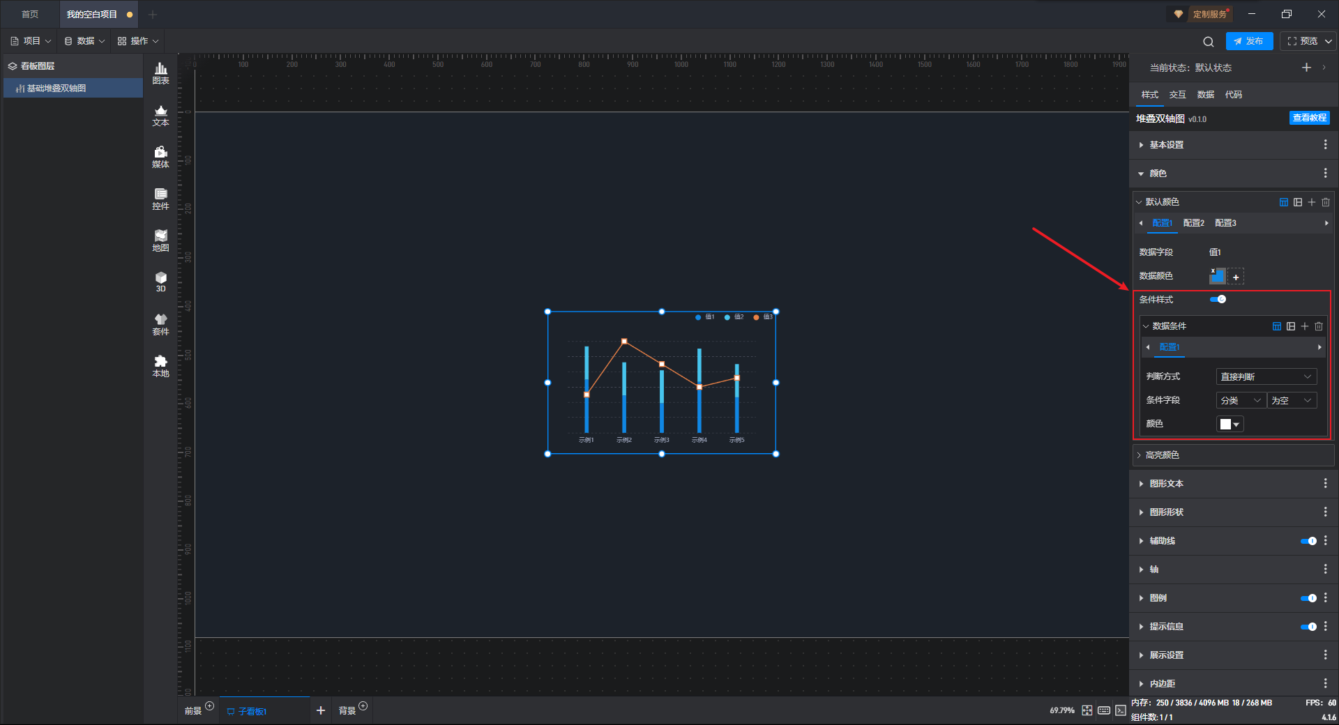 点击选中组件,开启“条件样式”按钮,就可以进行条件样式的设置。