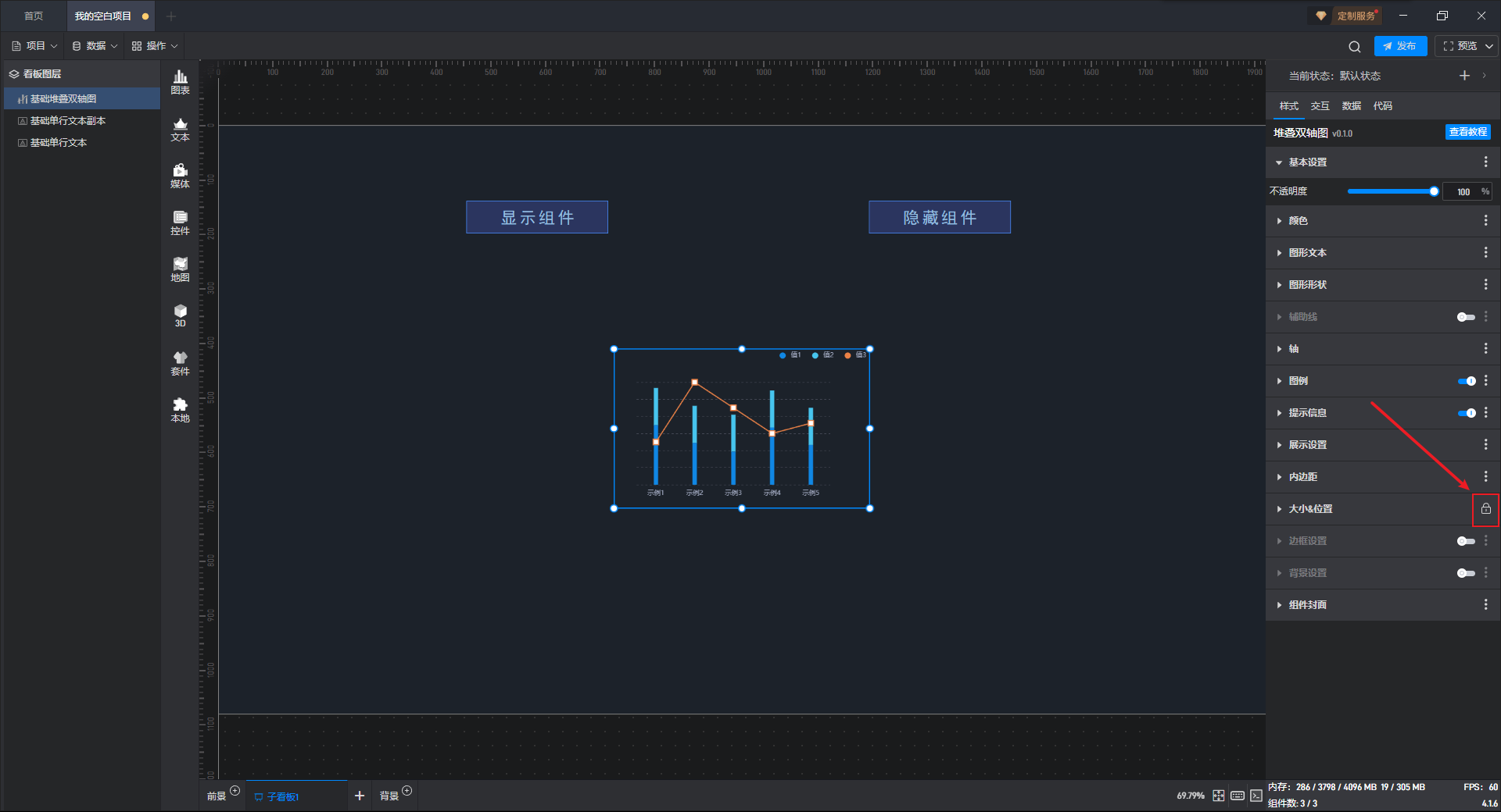 首先我们给双轴图组件设置一个隐藏状态(默认状态当做显示状态)。
