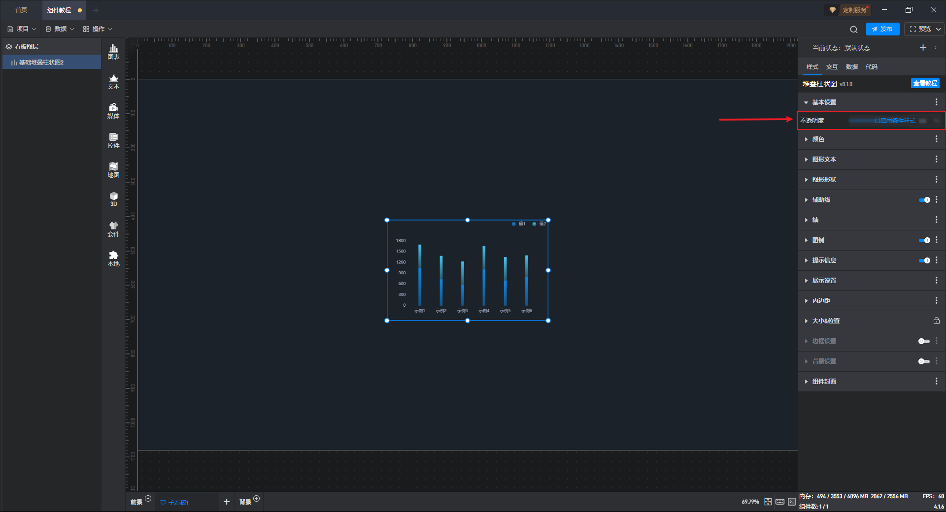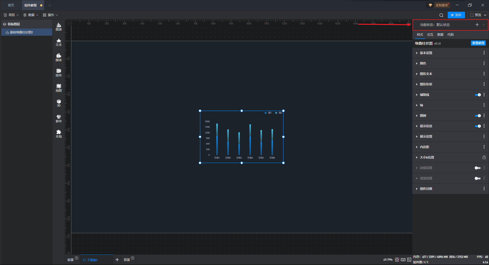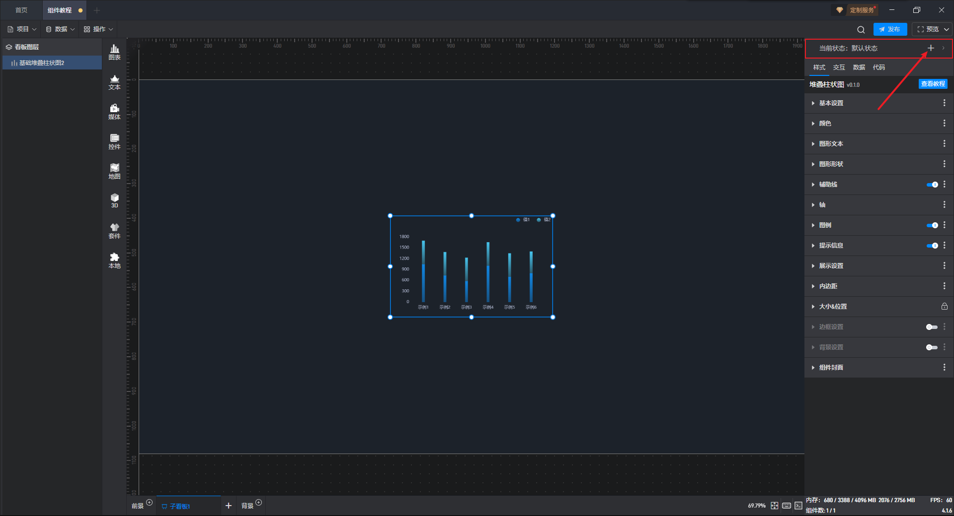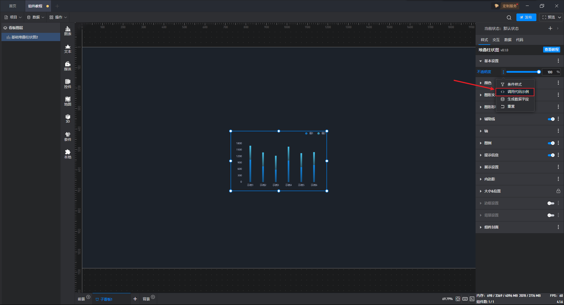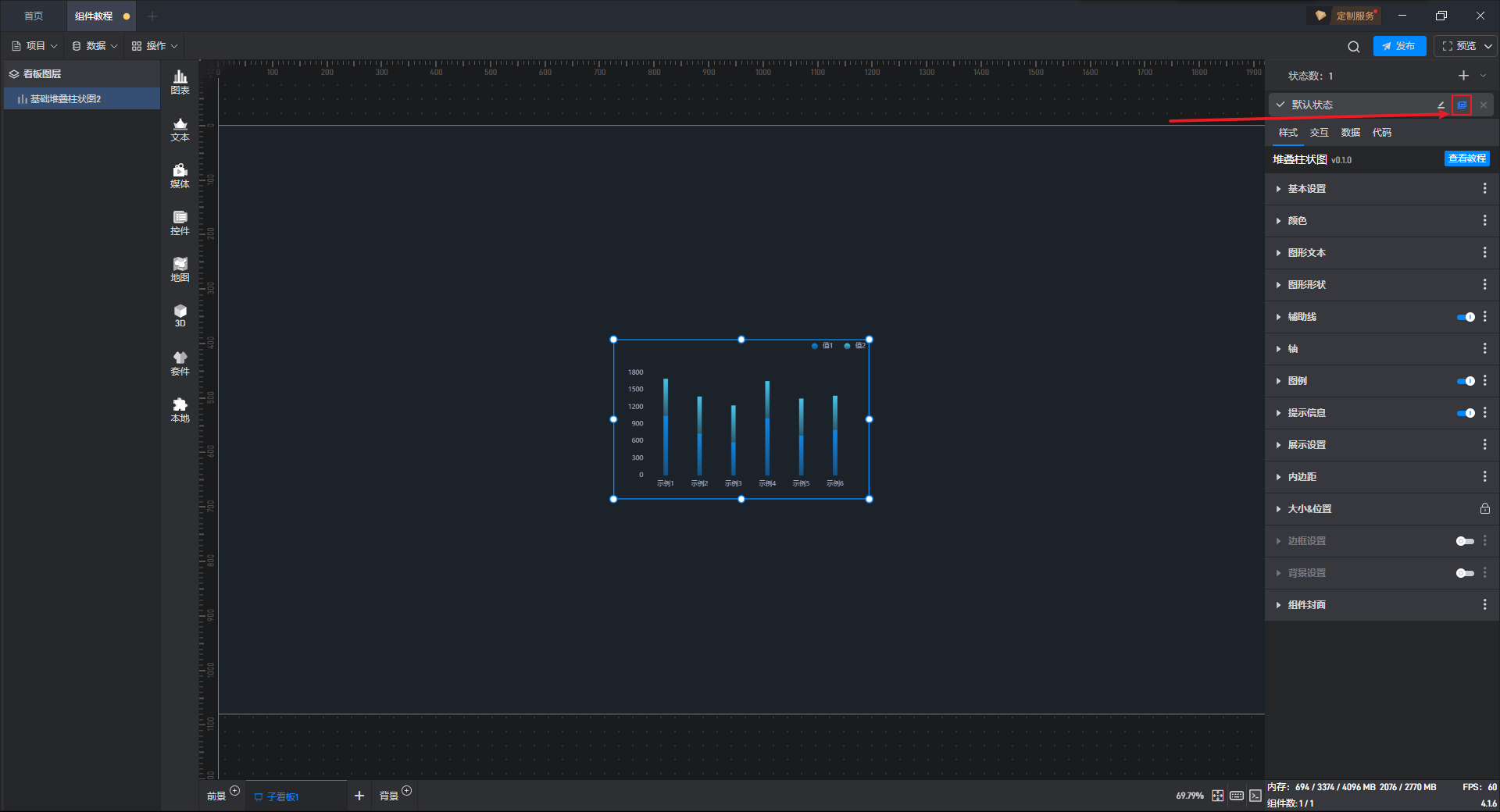 下面我们以基础堆叠柱状图 2为例,为大家介绍一下组件的使用步骤: