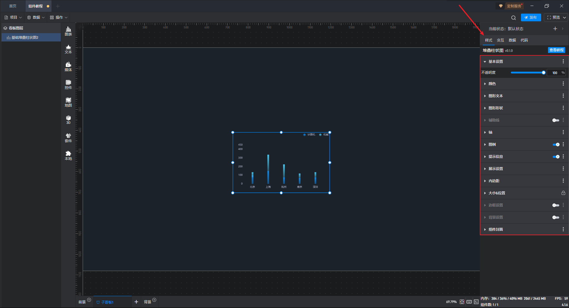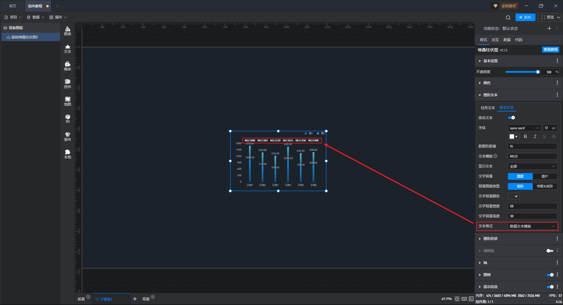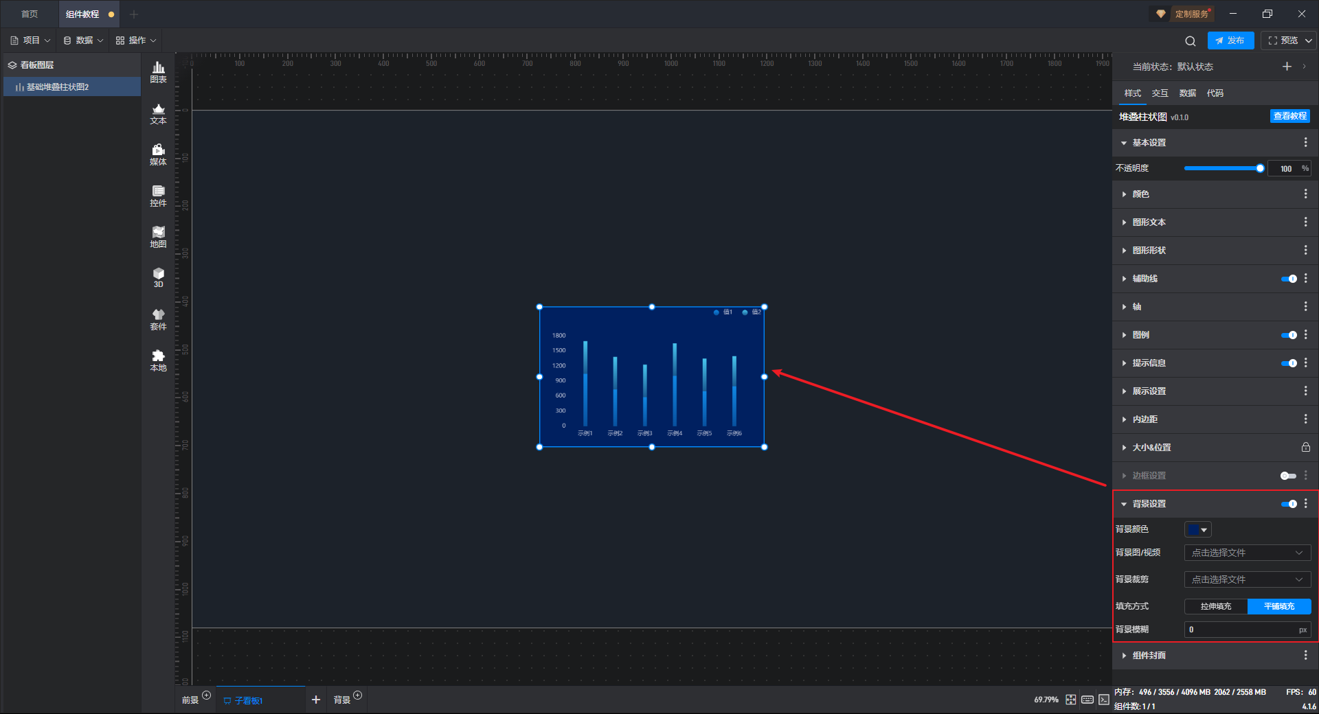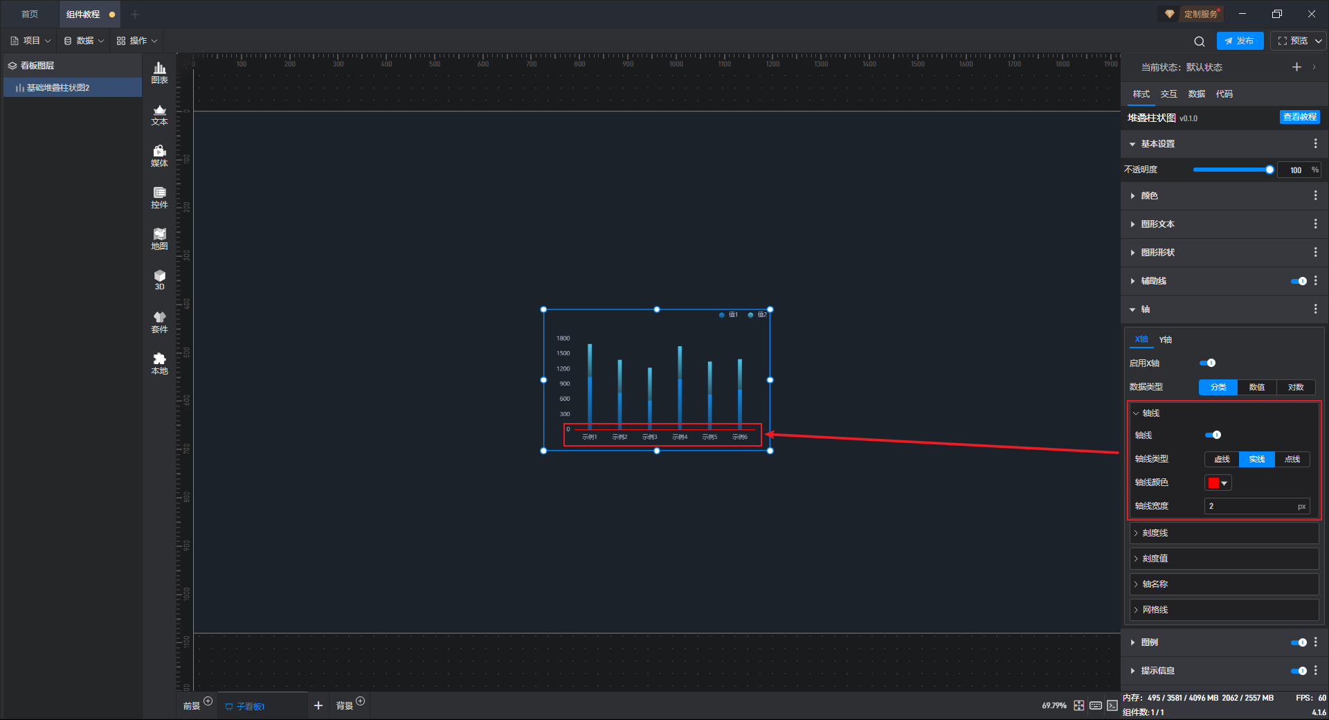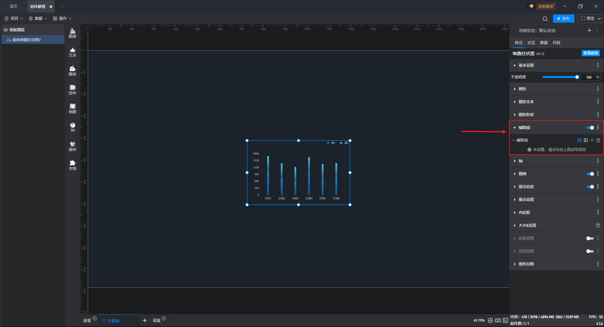 下面我们以基础堆叠柱状图 2为例,为大家介绍一下组件的使用步骤:
