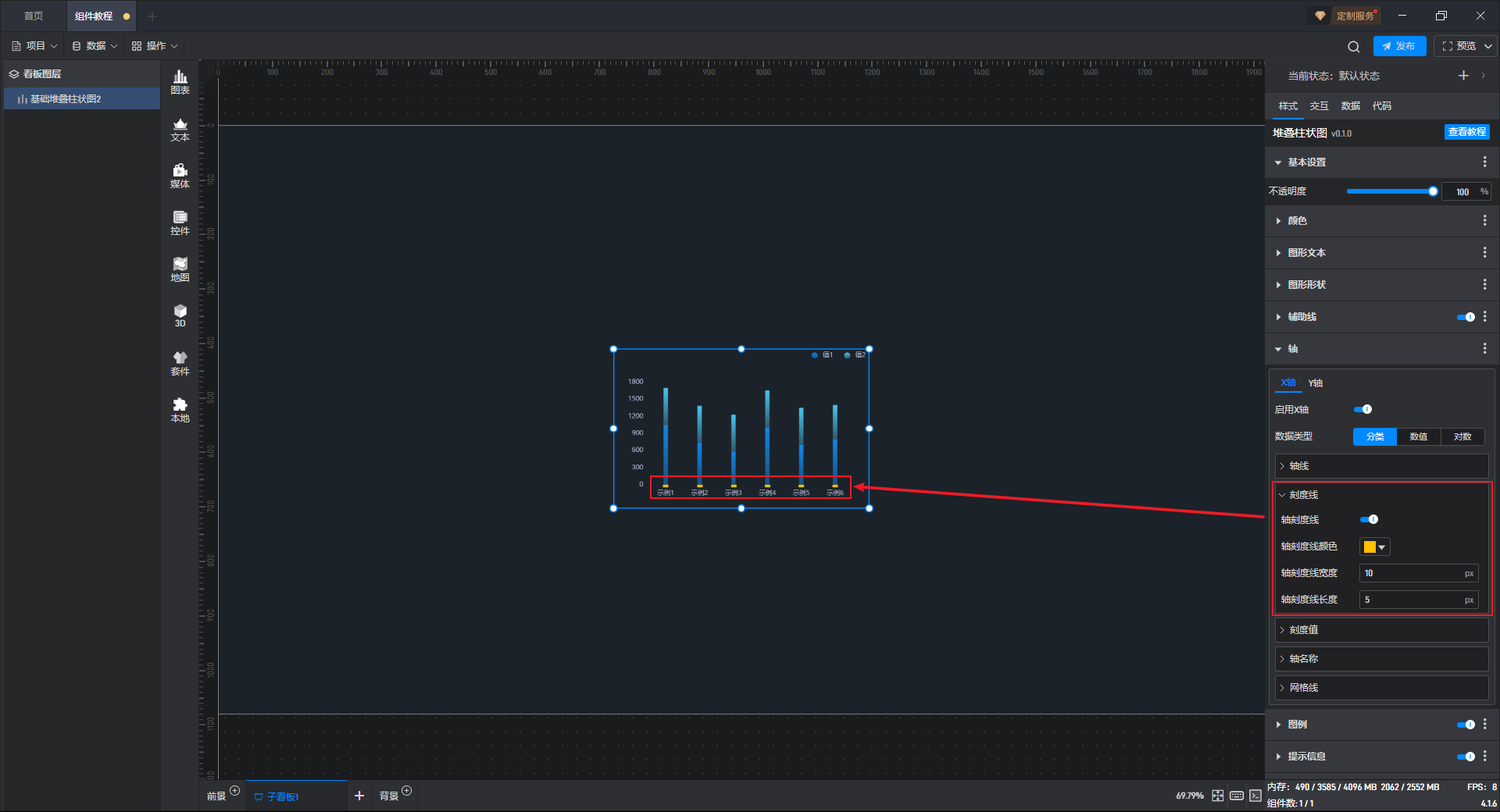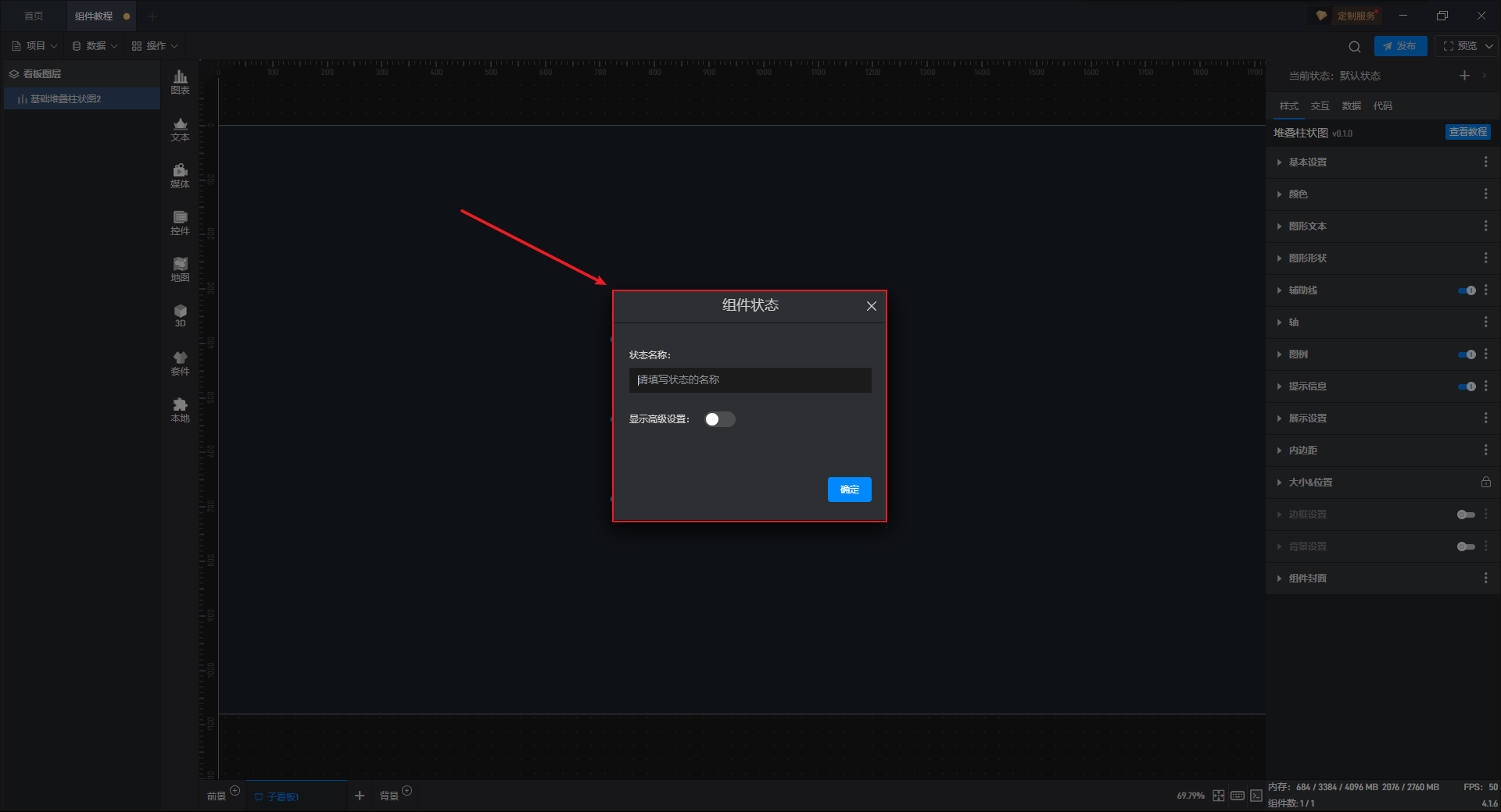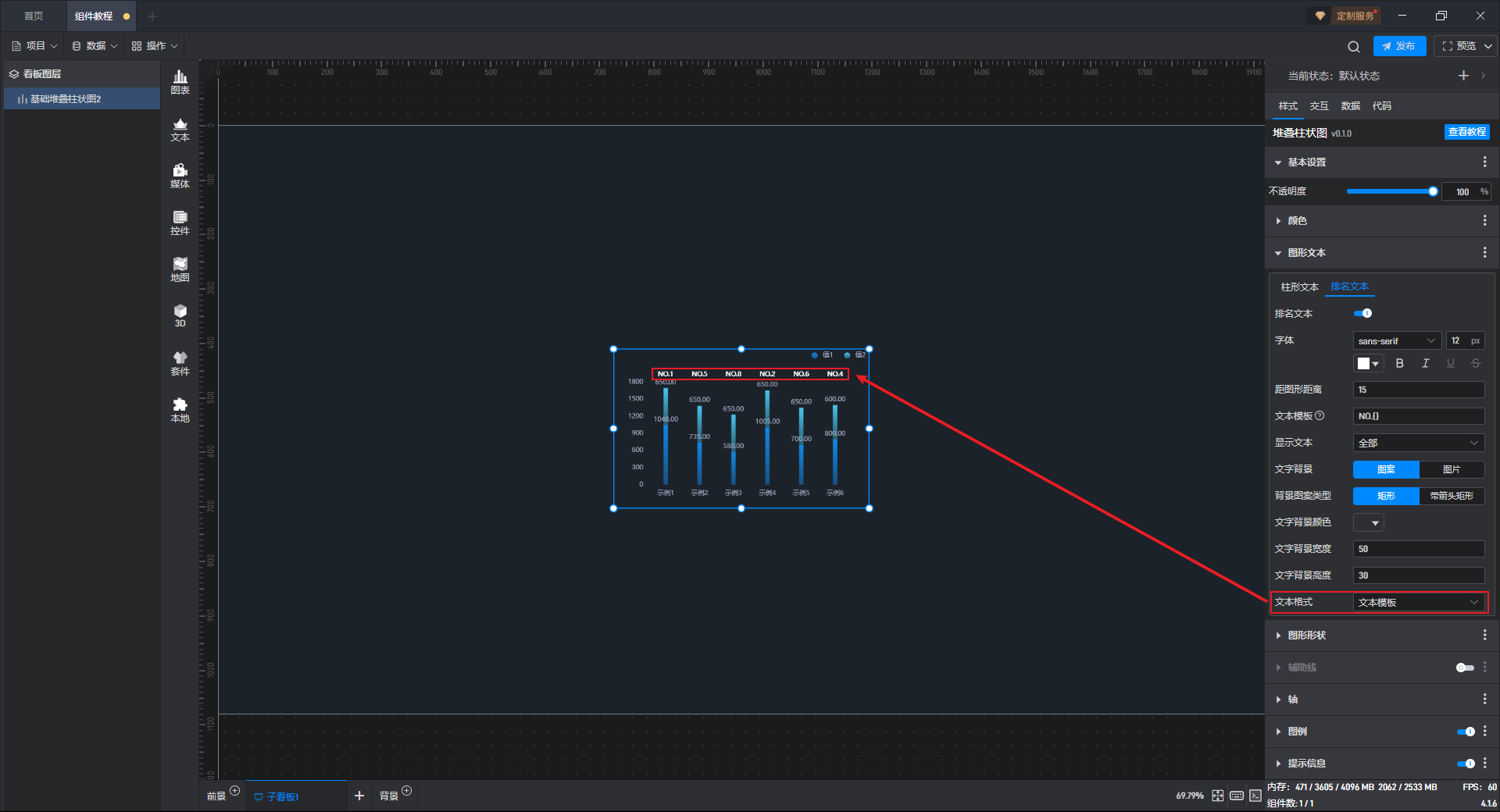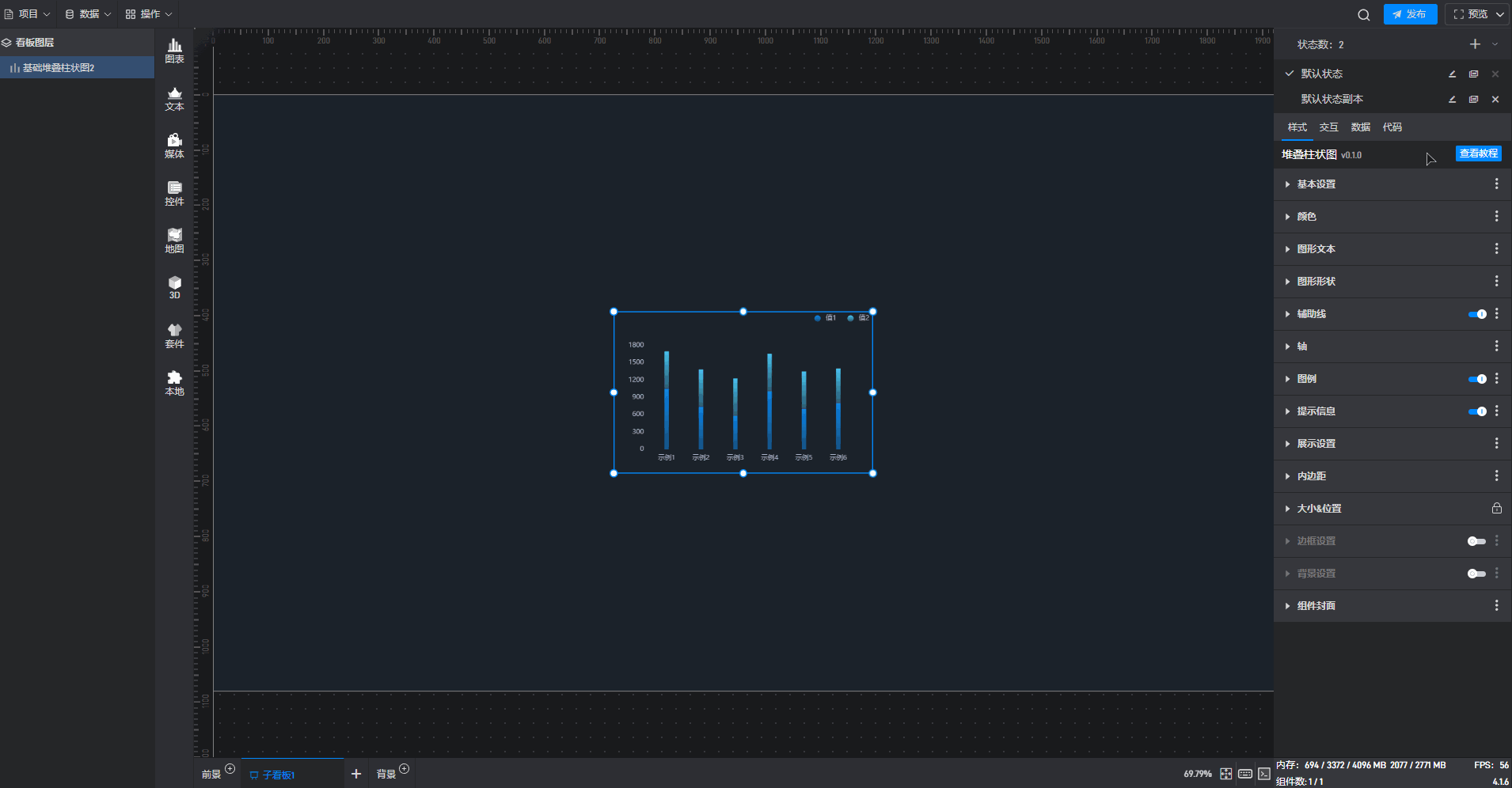 下面我们以基础堆叠柱状图 2为例,为大家介绍一下组件的使用步骤: