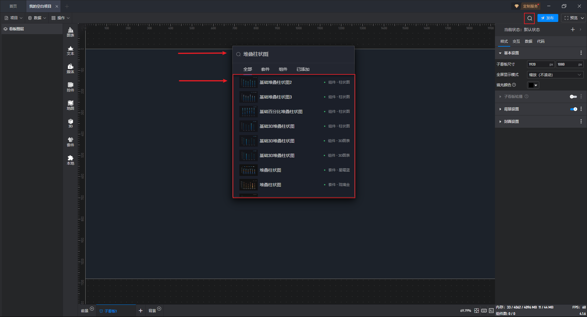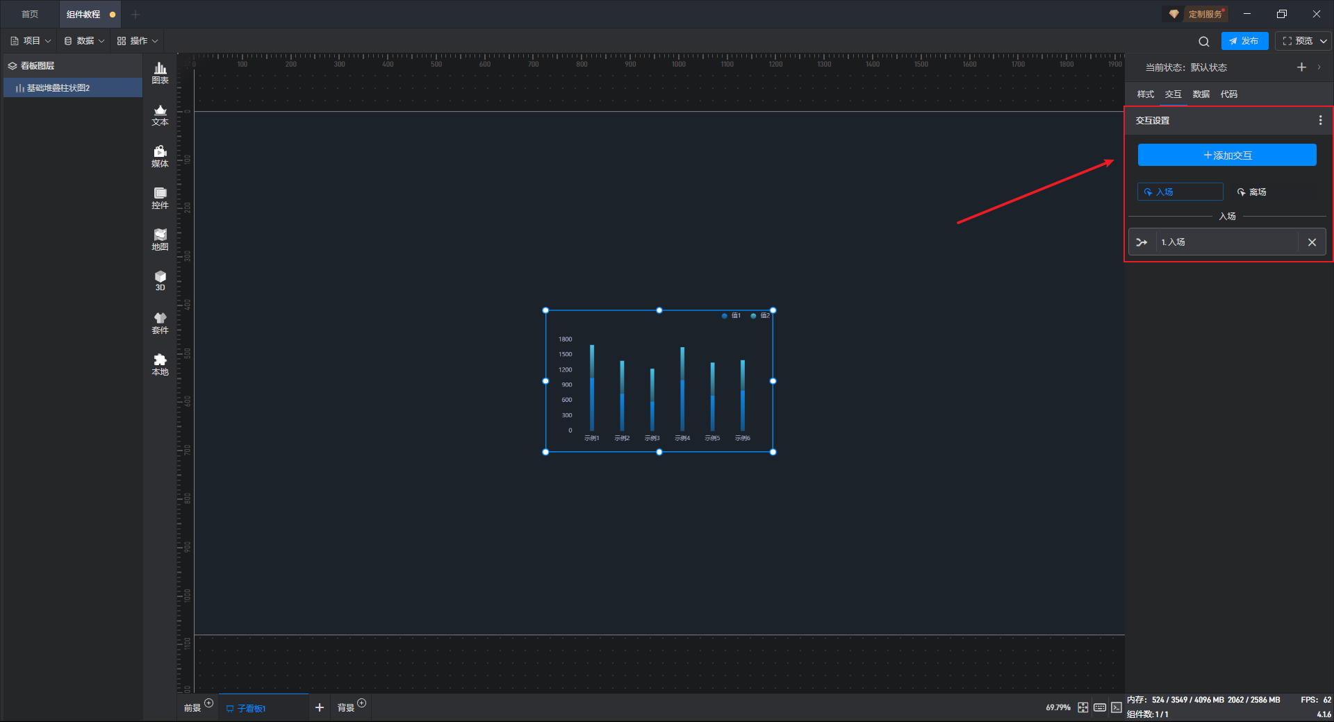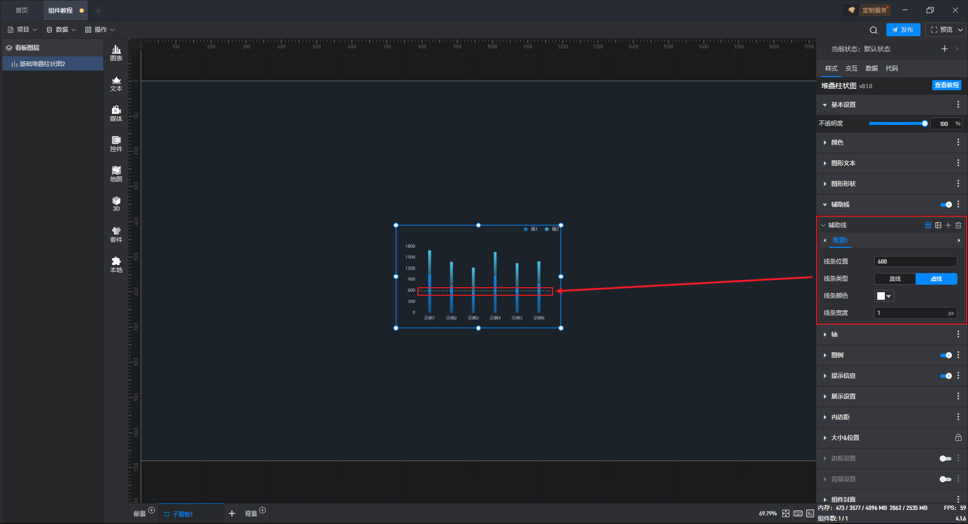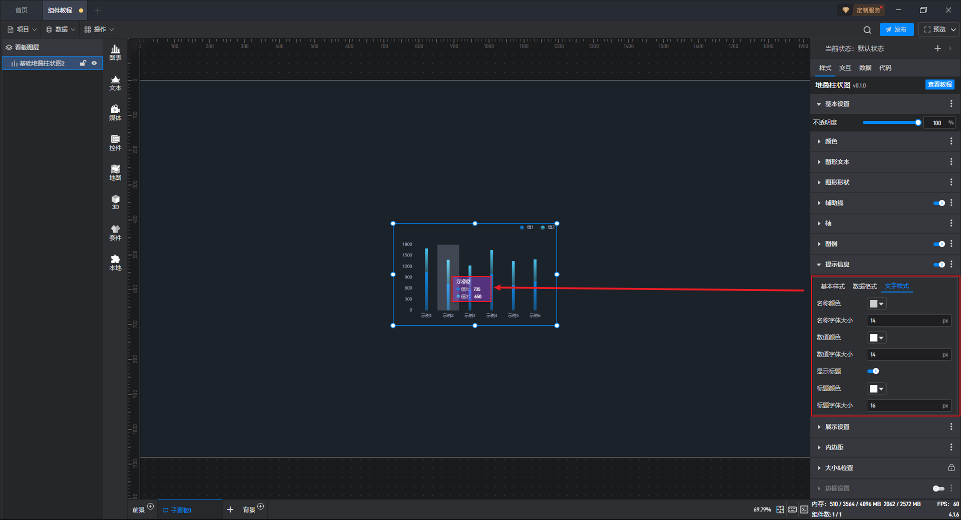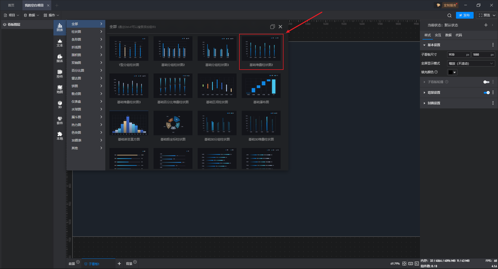 下面我们以基础堆叠柱状图 2为例,为大家介绍一下组件的使用步骤: