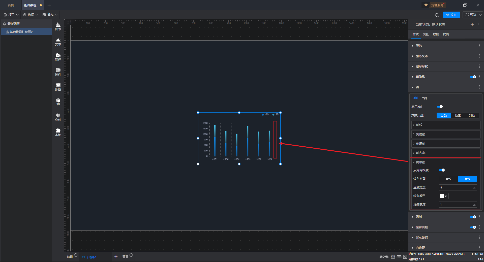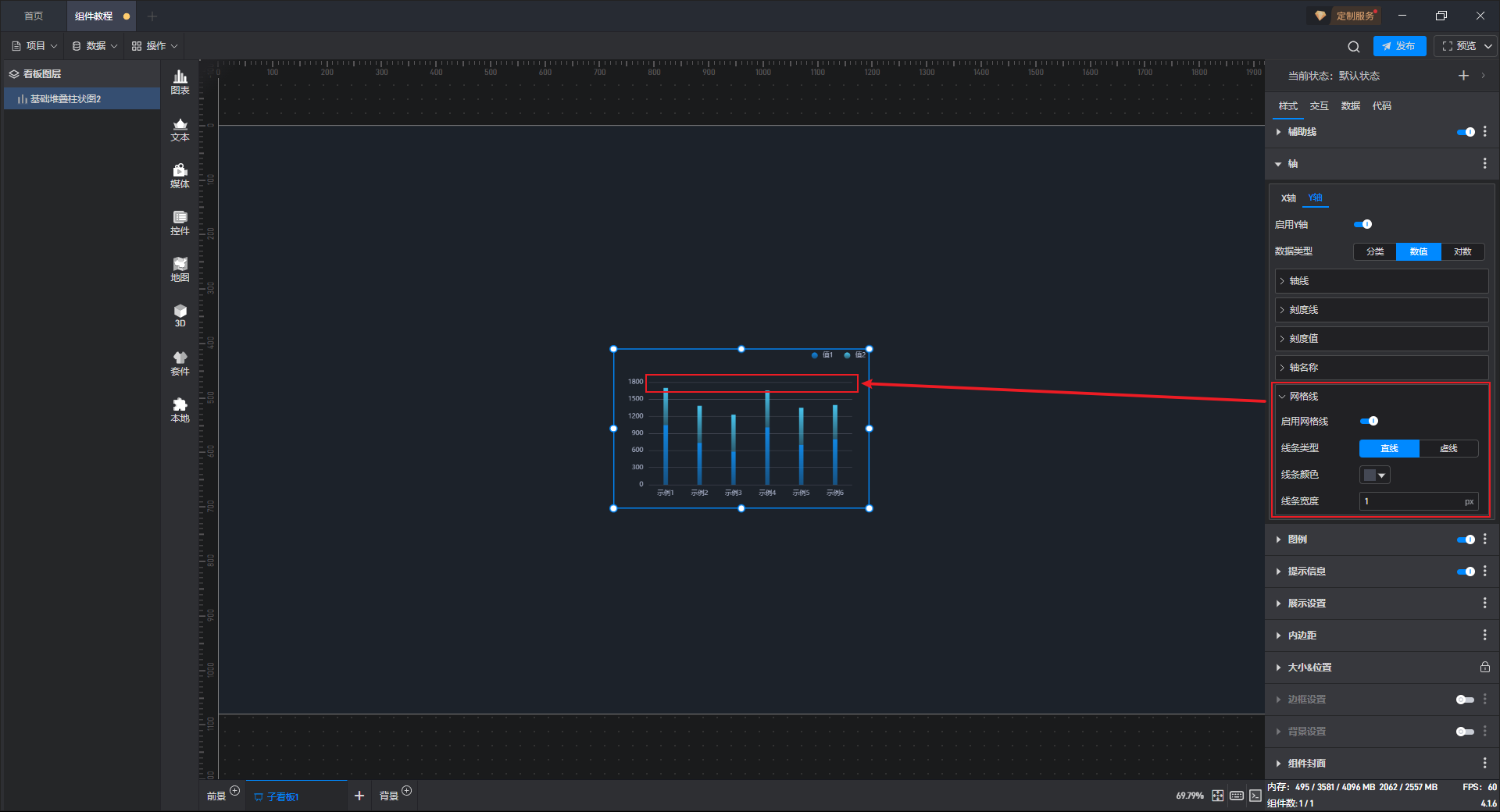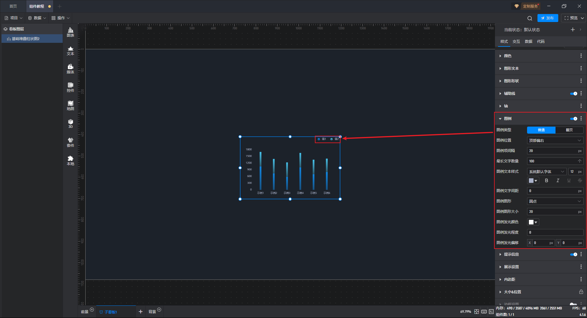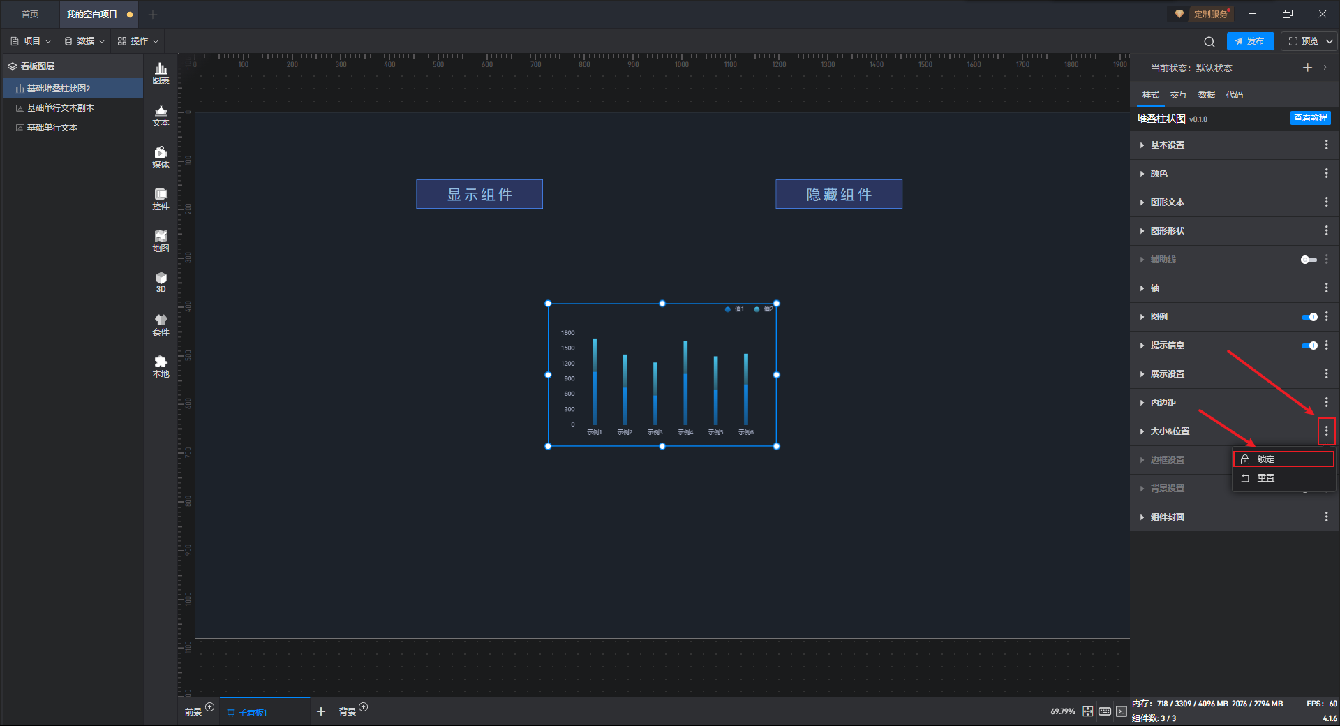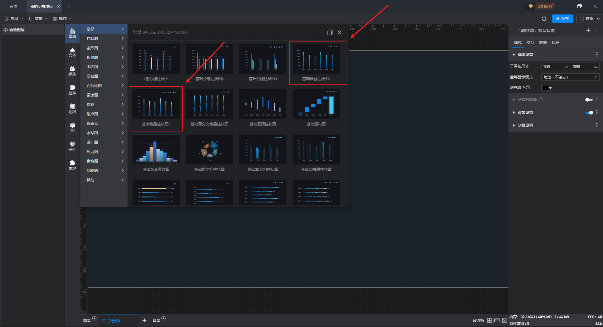 下面我们以基础堆叠柱状图 2为例,为大家介绍一下组件的使用步骤: