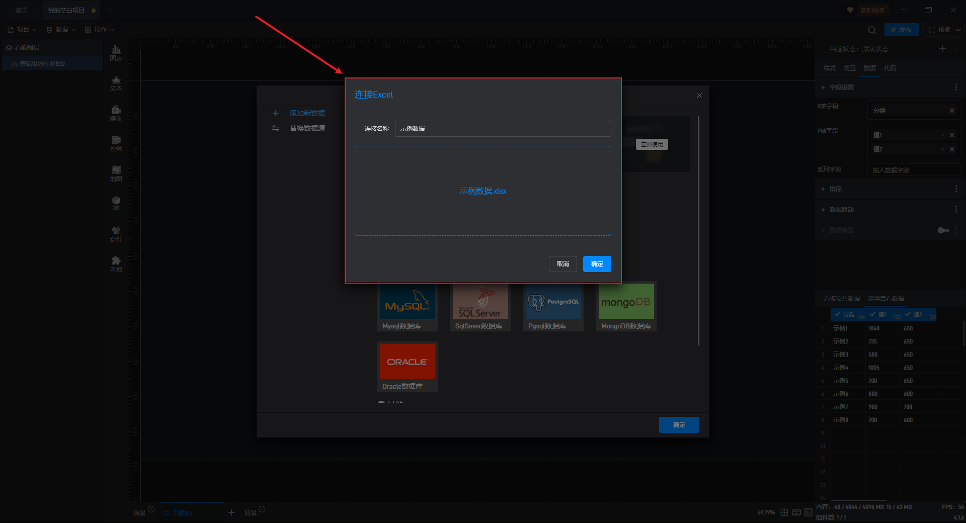 下面以添加Excel 数据源为例:(更多数据源添加方式请参看教程:连接数据)