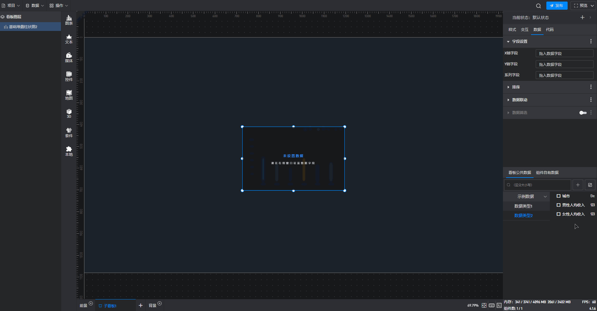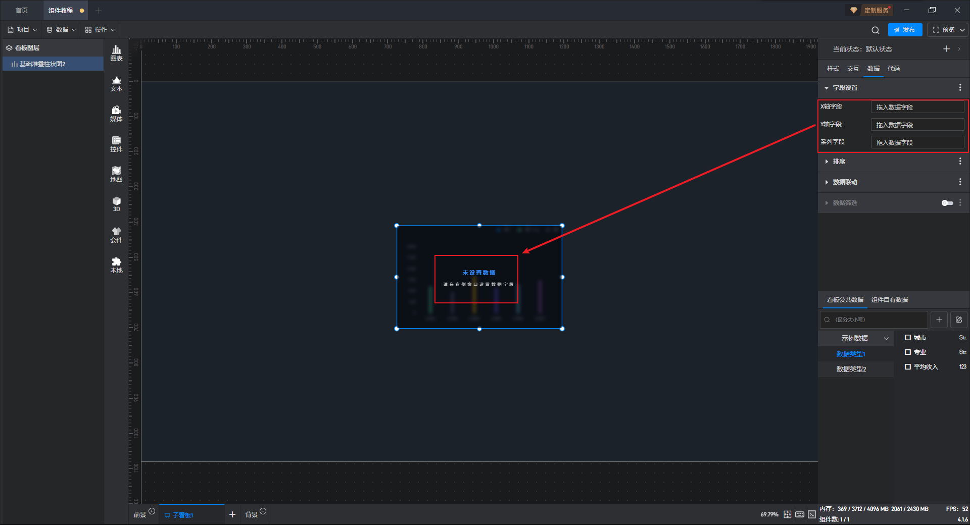 删除当前字段后,右侧字段栏为空,同时组件会提示“未设置数据”。