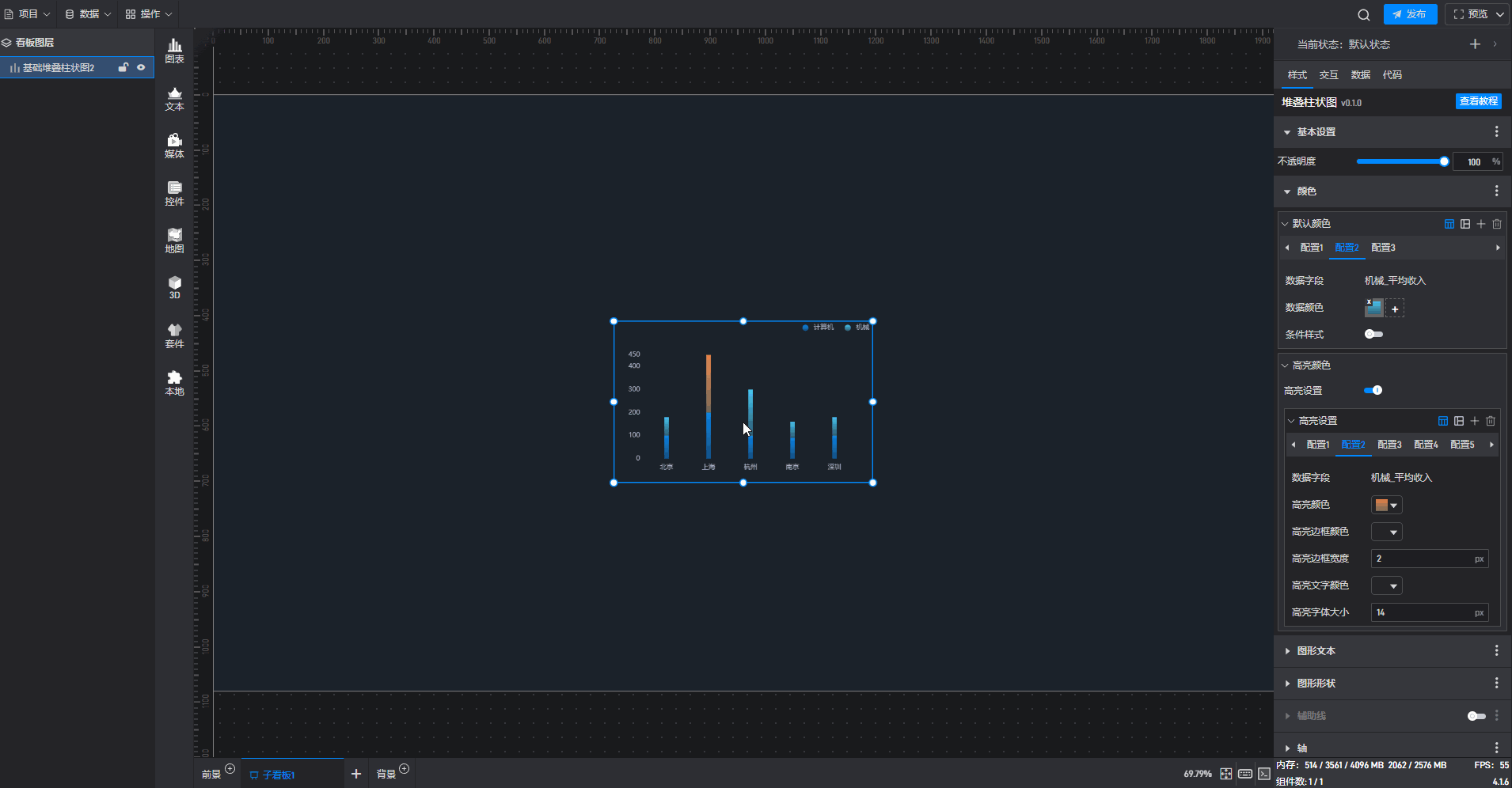 这是一个没有开启“高亮设置”按钮的基础堆叠柱状图 2 组件: