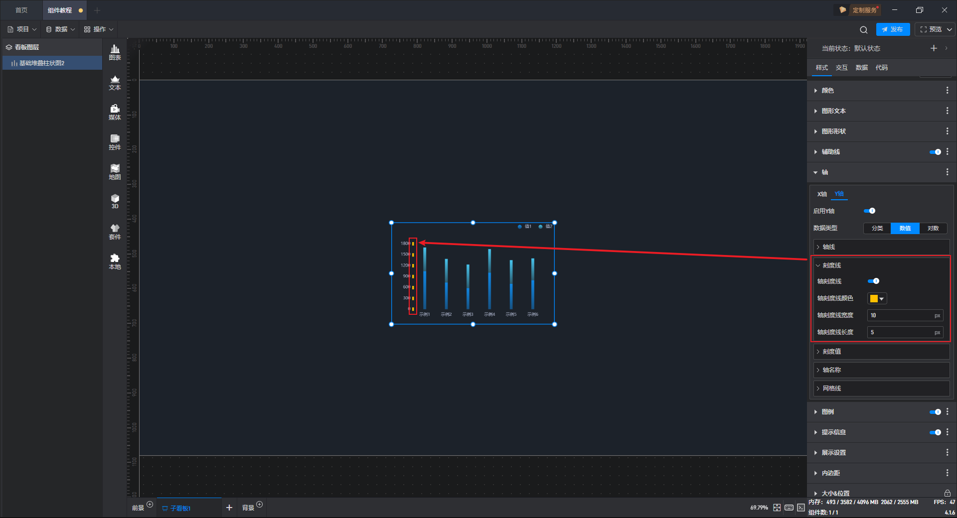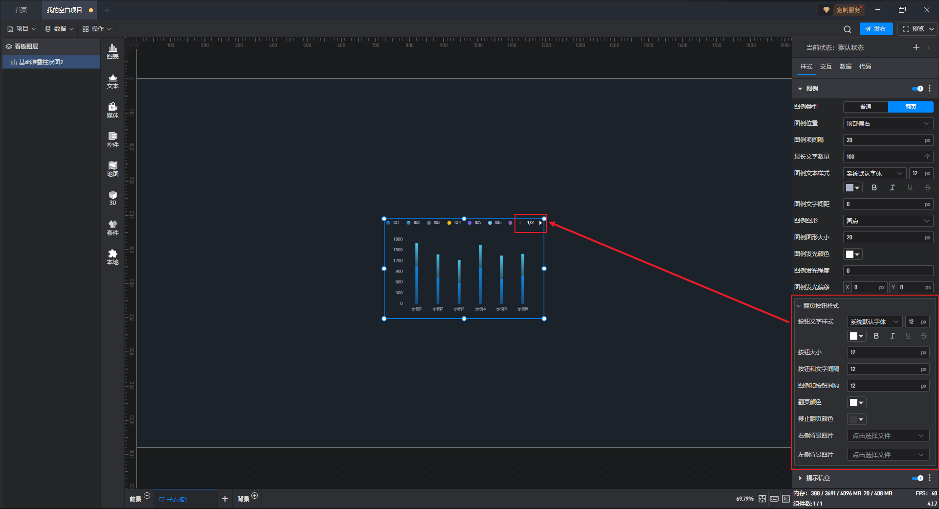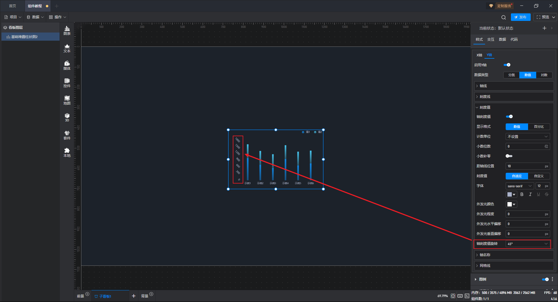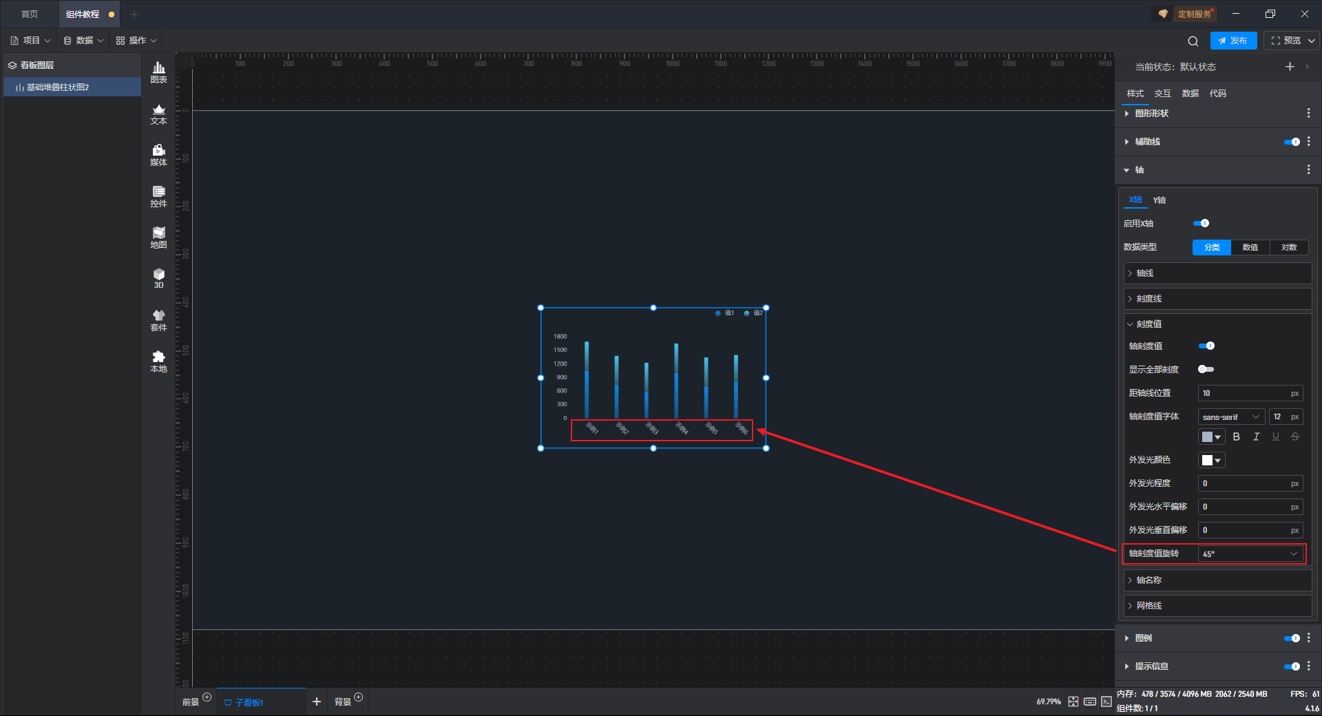 开启高亮设置,并设定高亮颜色、边框宽度等,就可以看到组件在显示对应数据柱子时会显示设置的高亮颜色。