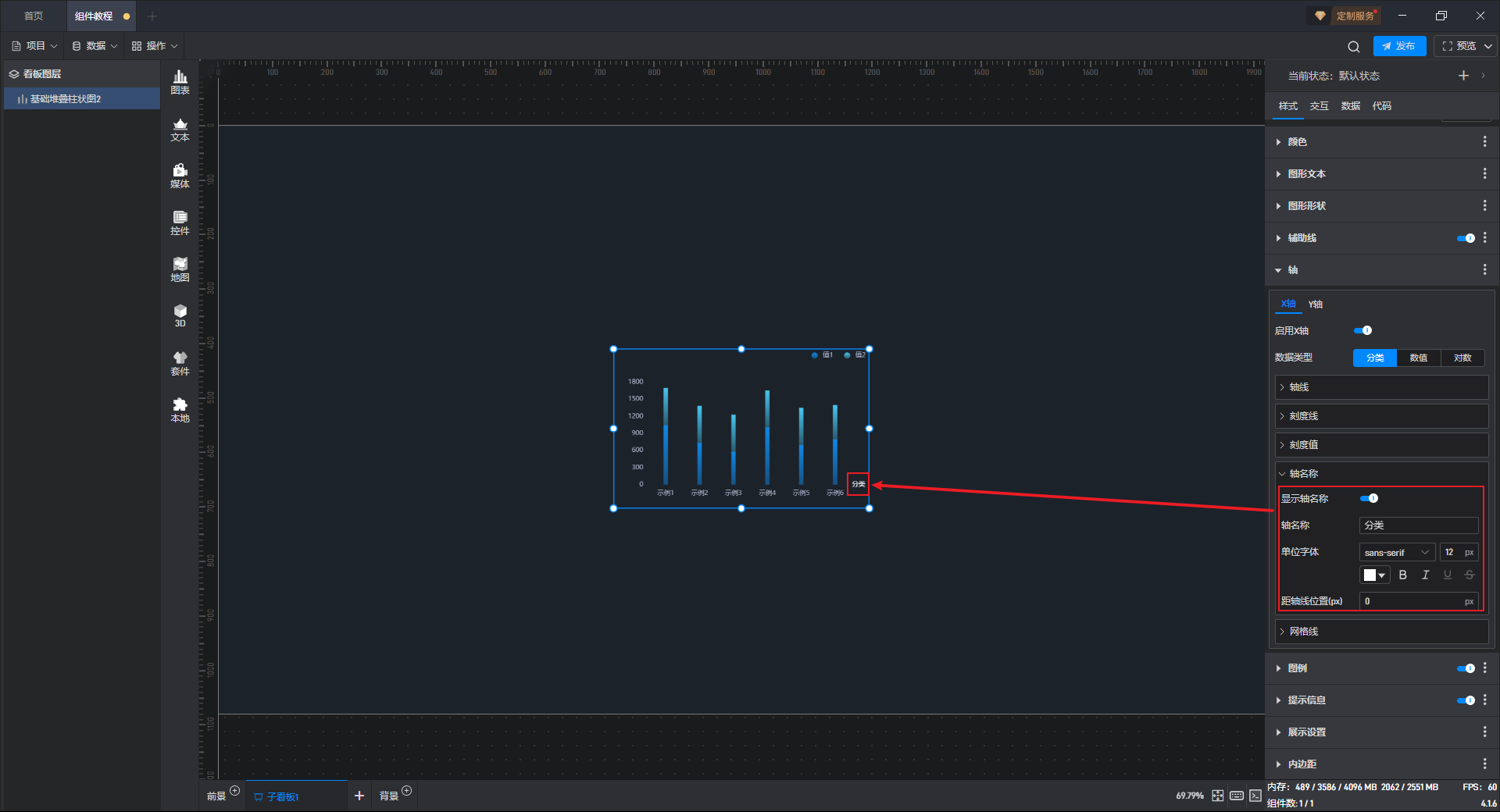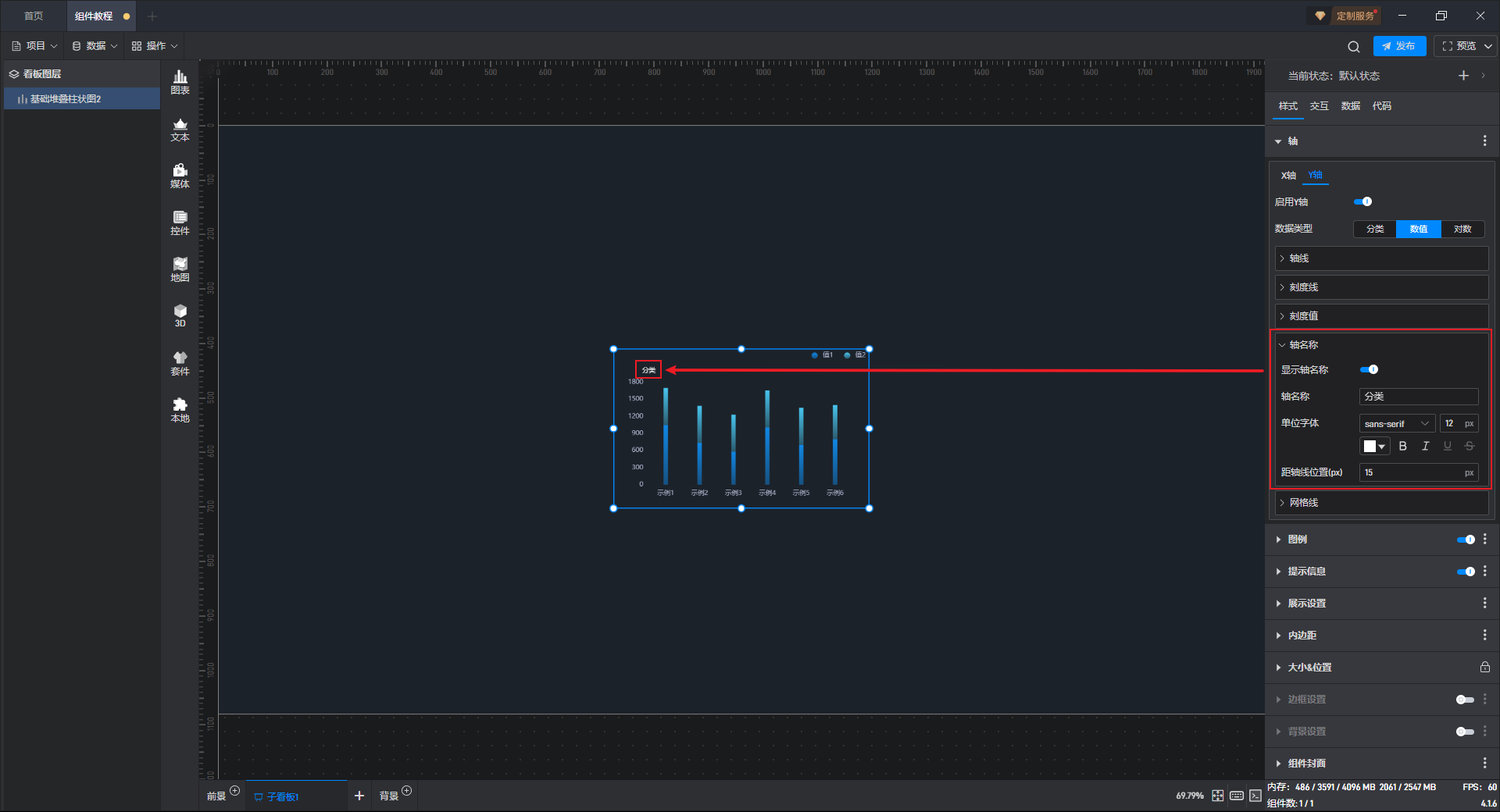 显示 x 轴名称 | 开启此按钮后,x 轴名称作为柱形文本的前缀显示在组件中。 |