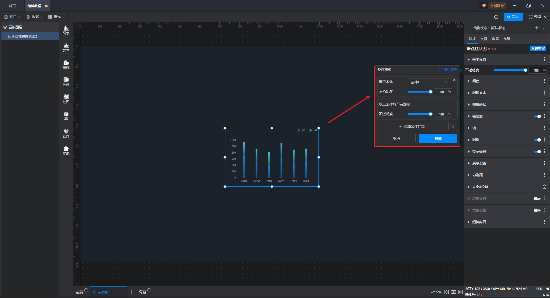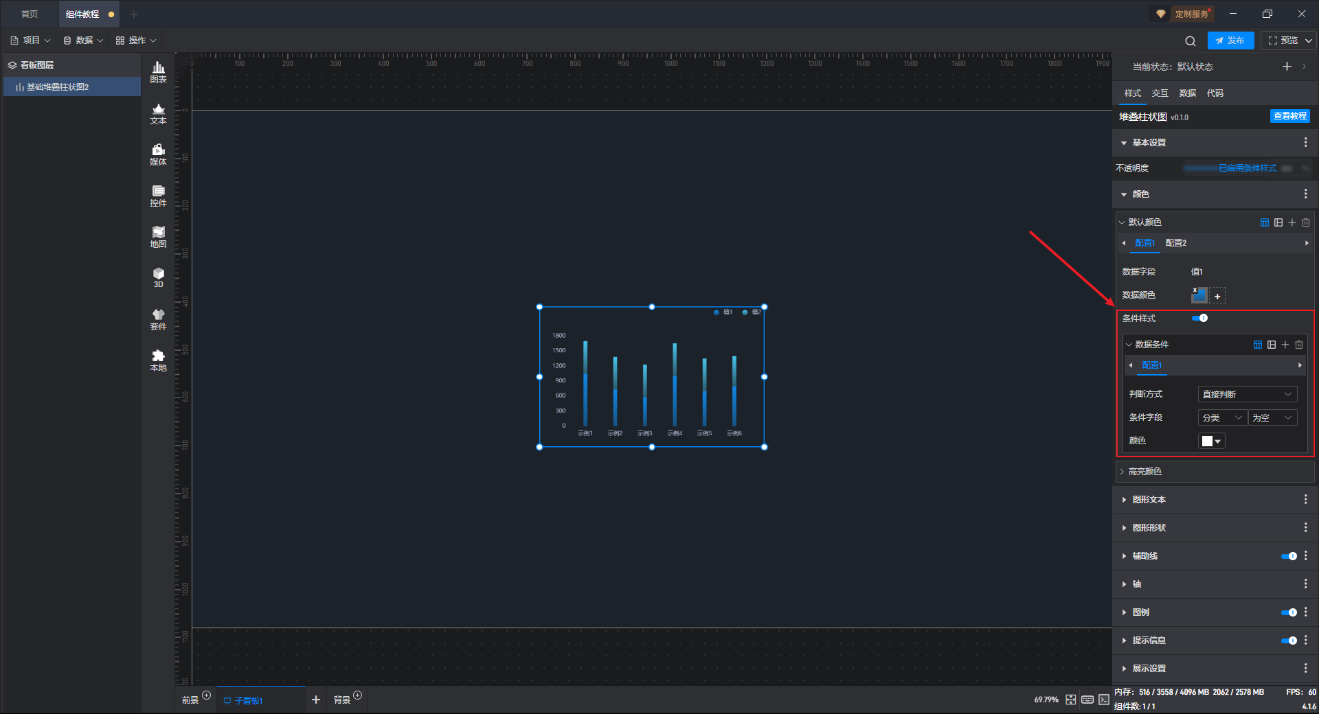 点击选中组件,开启“条件样式”按钮,就可以进行条件样式的设置。