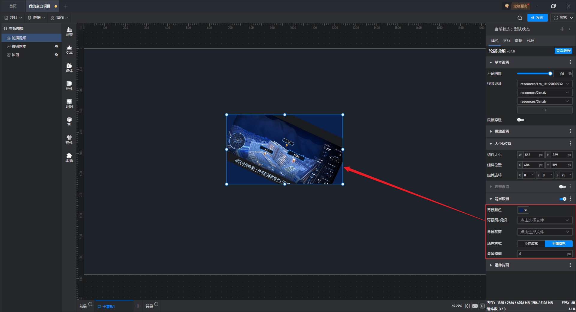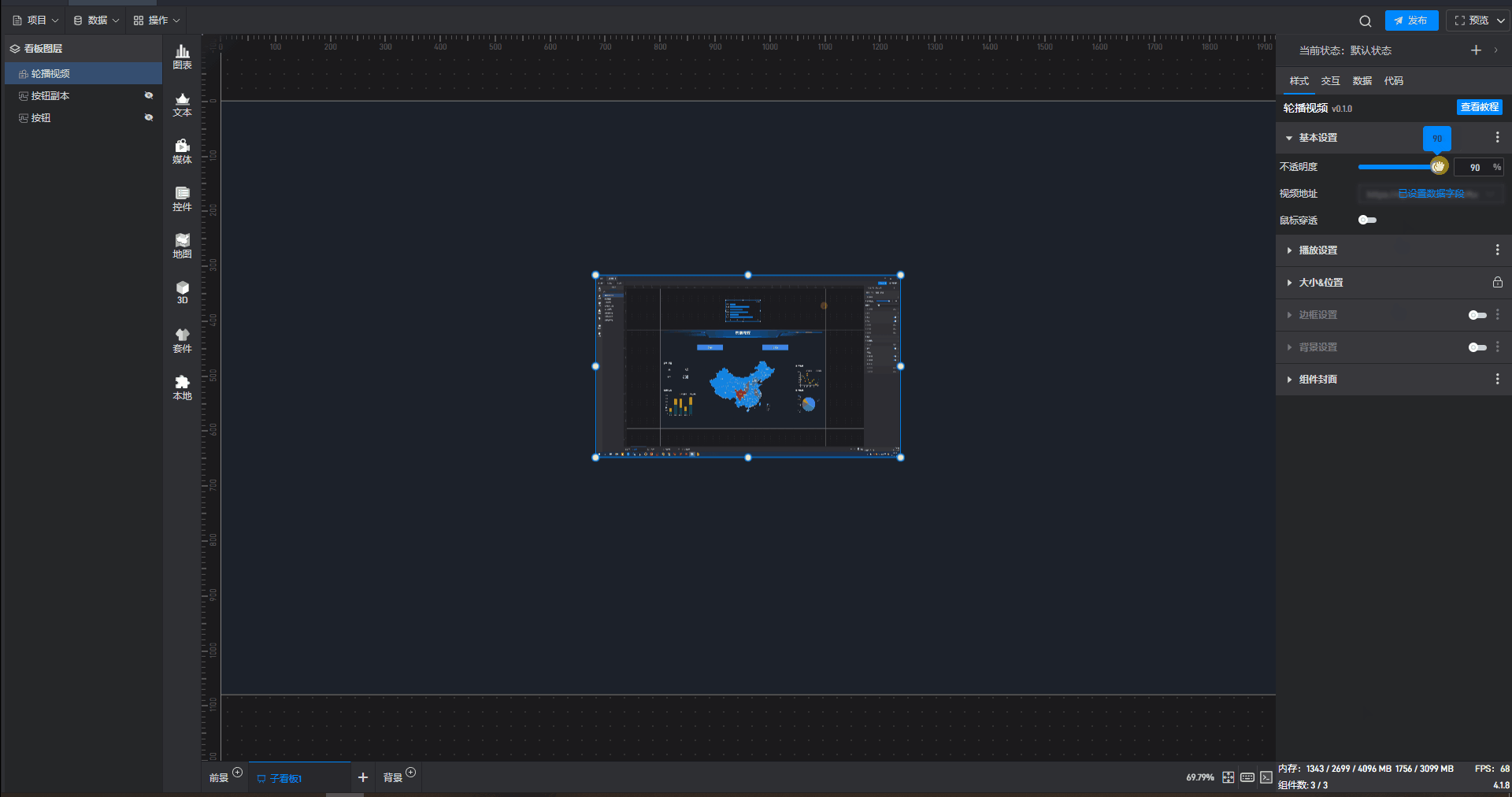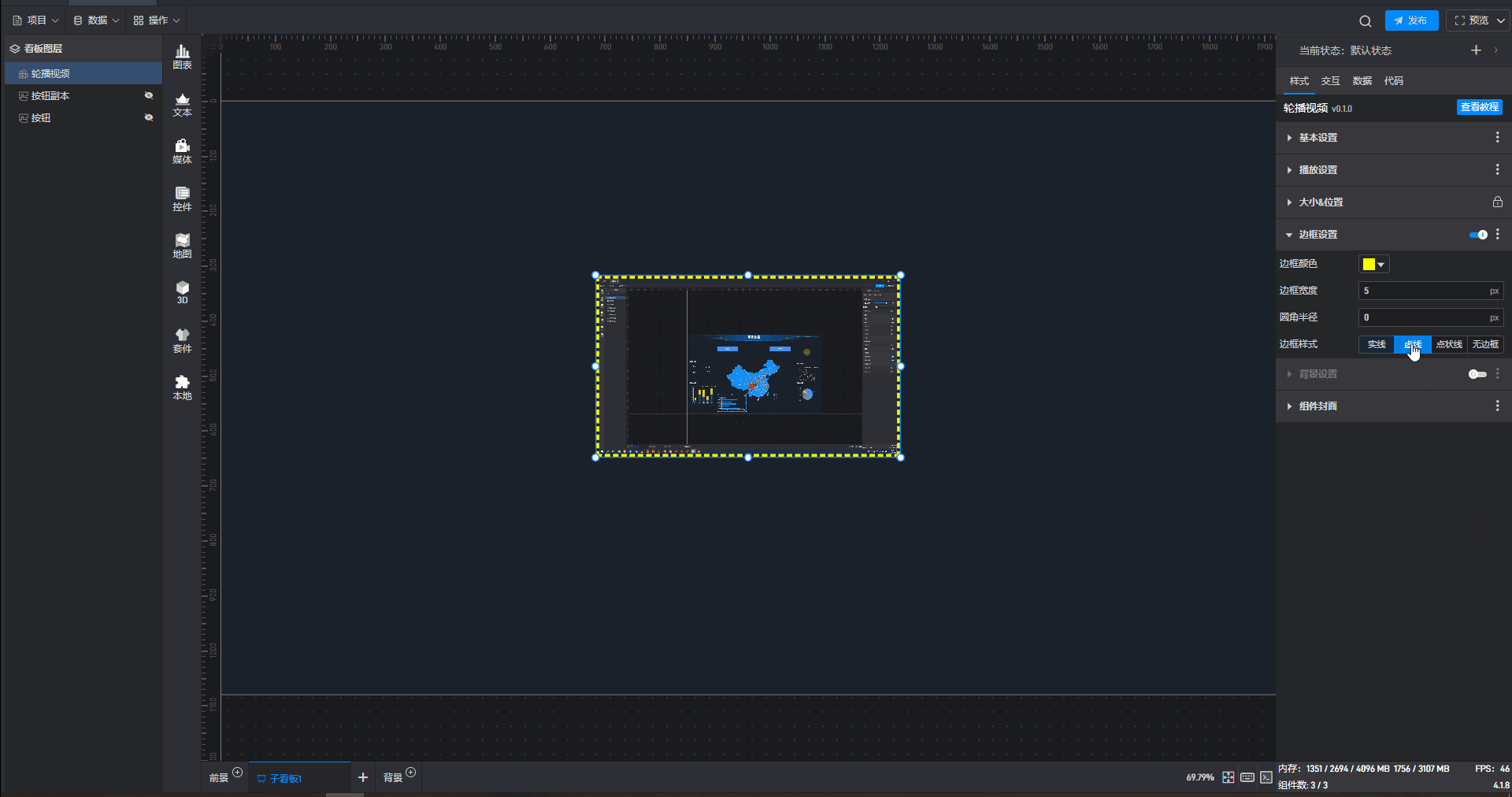 | 背景图/视频 | 可在此处添加本地图片或视频,充当组件背景。 |