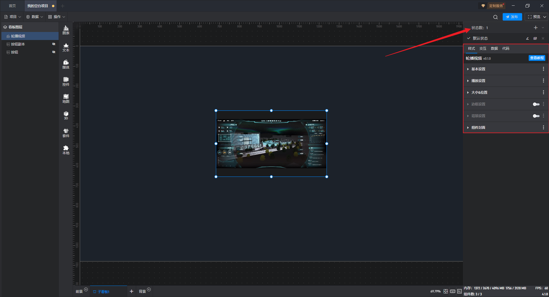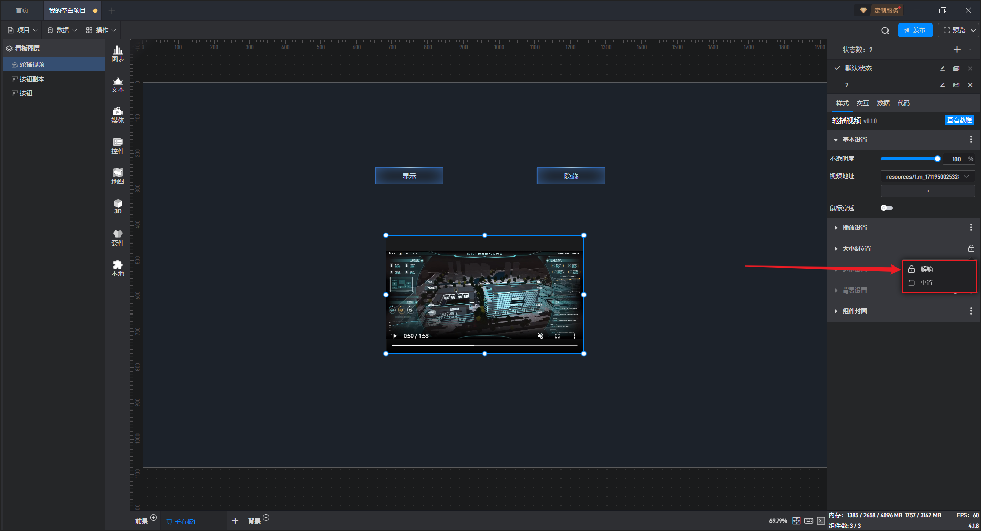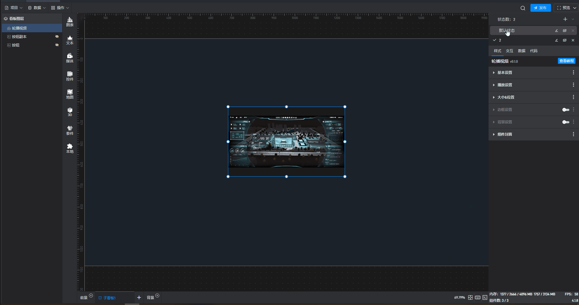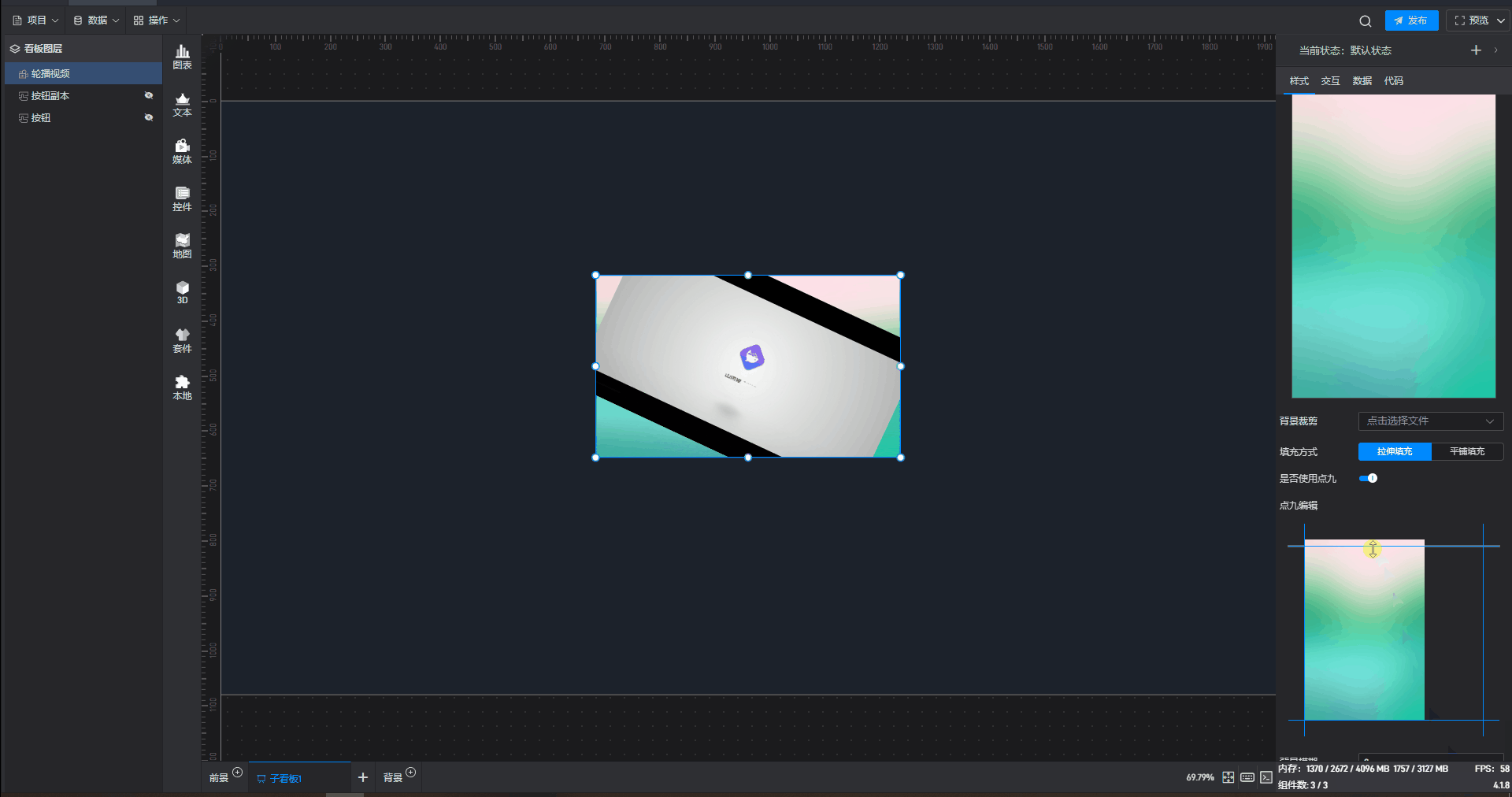 | 背景图/视频 | 可在此处添加本地图片或视频,充当组件背景。 |