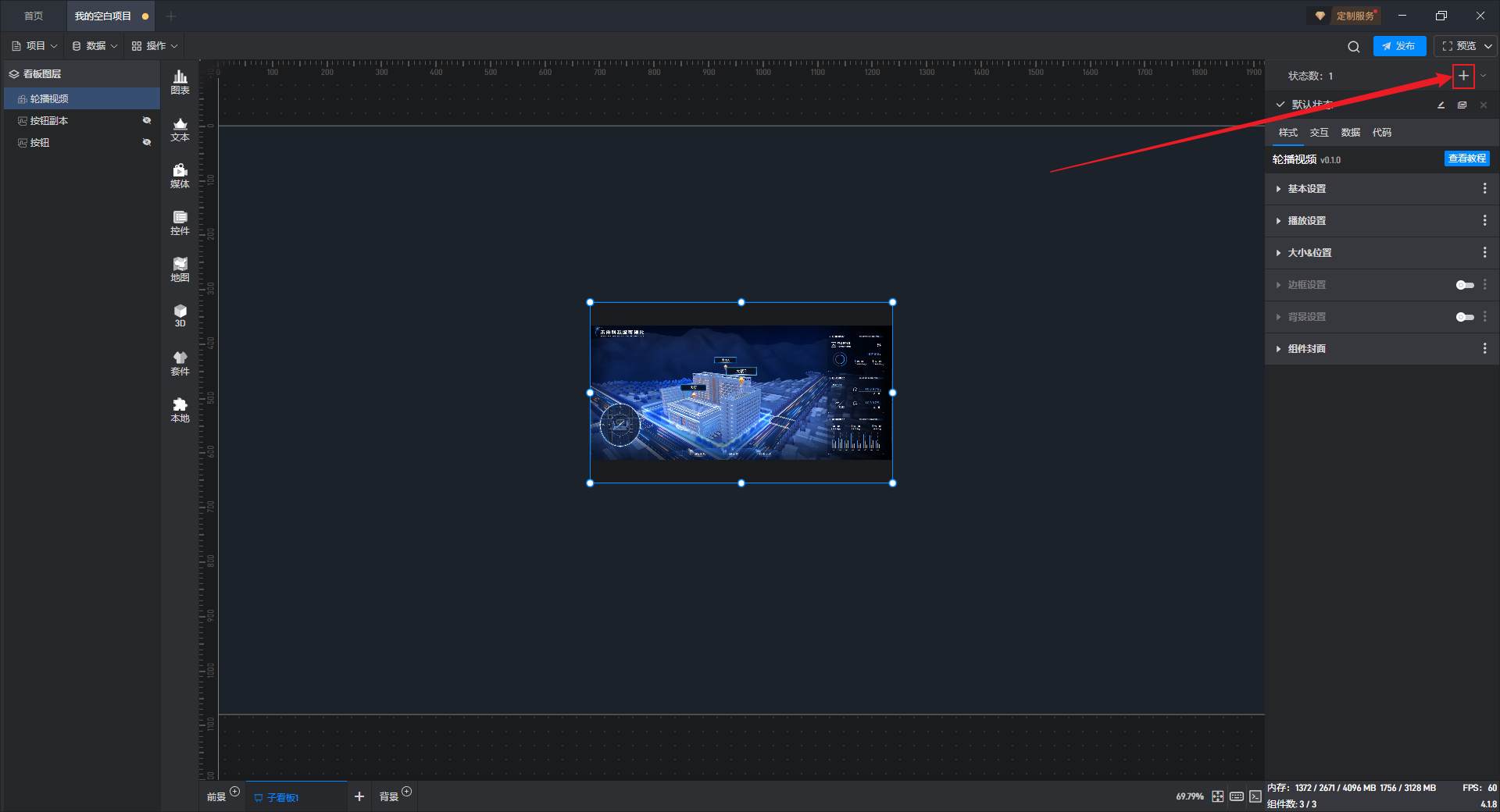 点击右上角的“+”可以添加一个新的组件状态。