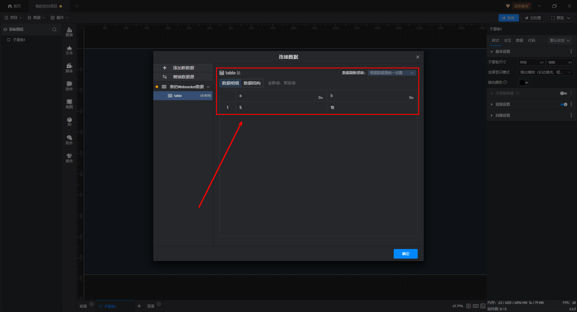 设置完成后,可以对使用项目参数设置的数据进行预览,点击“确定”按钮即可完成 WebSocket 数据的连接。