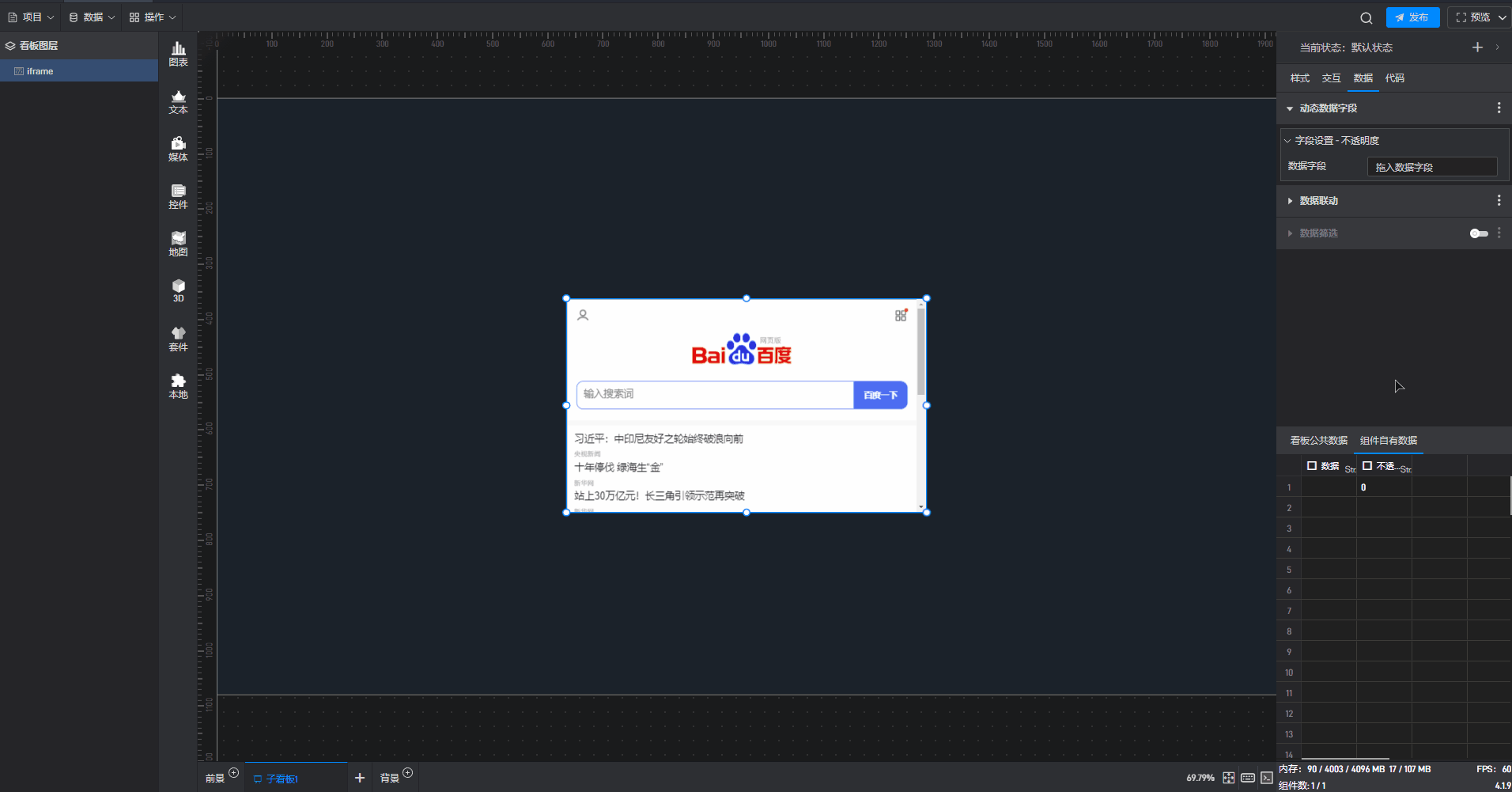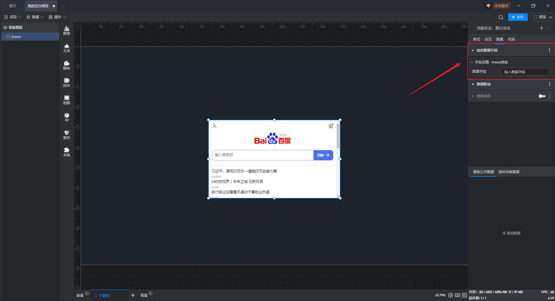 iframe 组件默认没有数据字段,所以需要用到动态数据字段的功能。