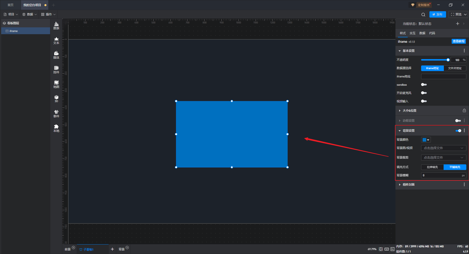组件默认没有背景颜色,如果需要设置背景颜色,需要先开启“背景设置”项按钮。