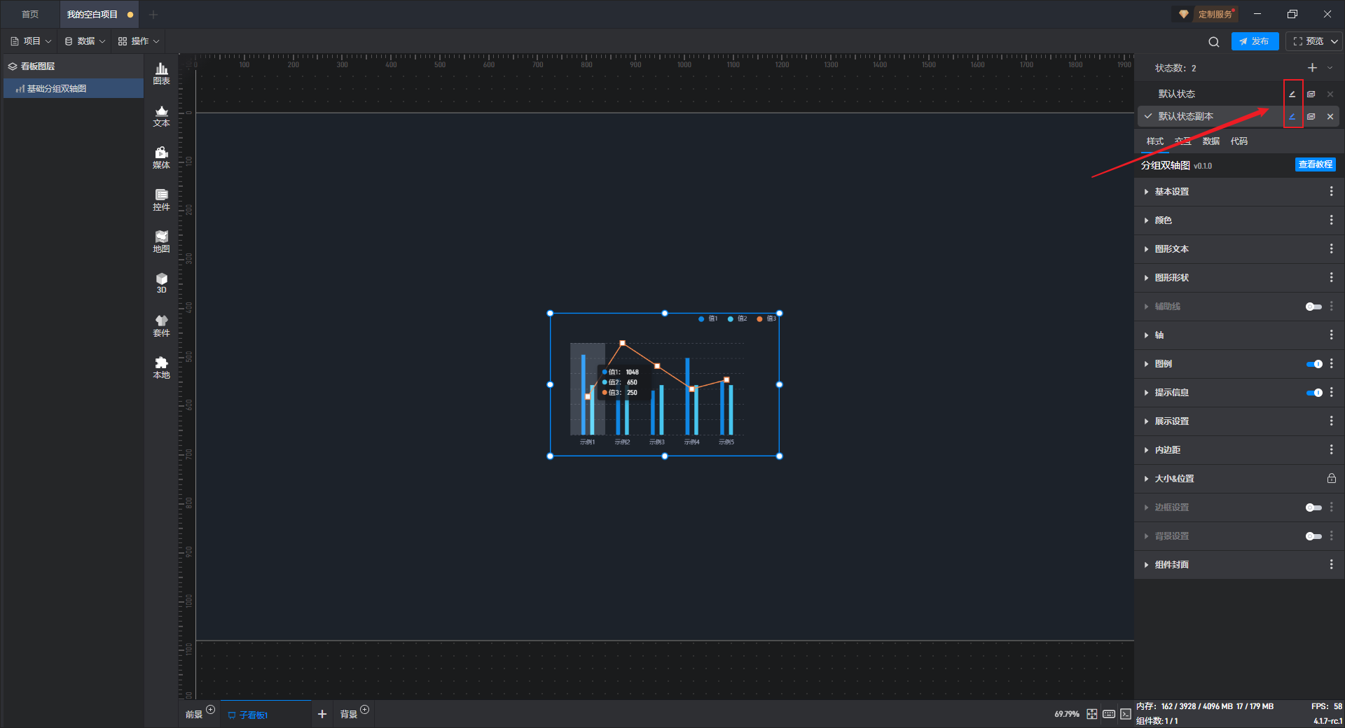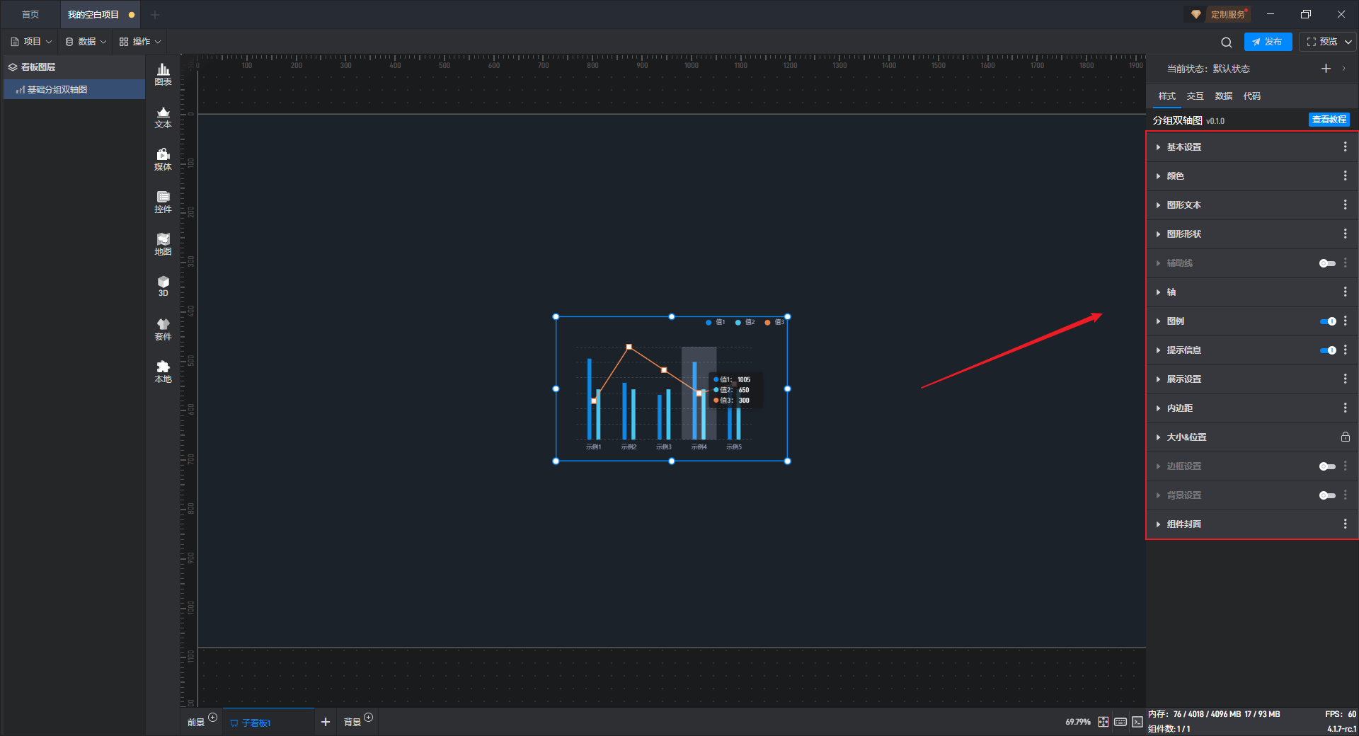 这是一个没有开启“高亮设置”按钮的基础分组双轴图组件: