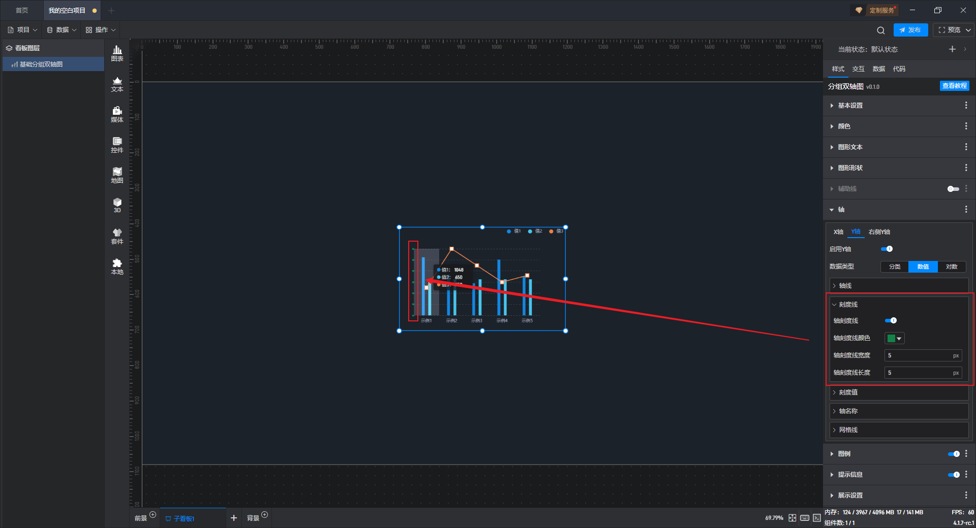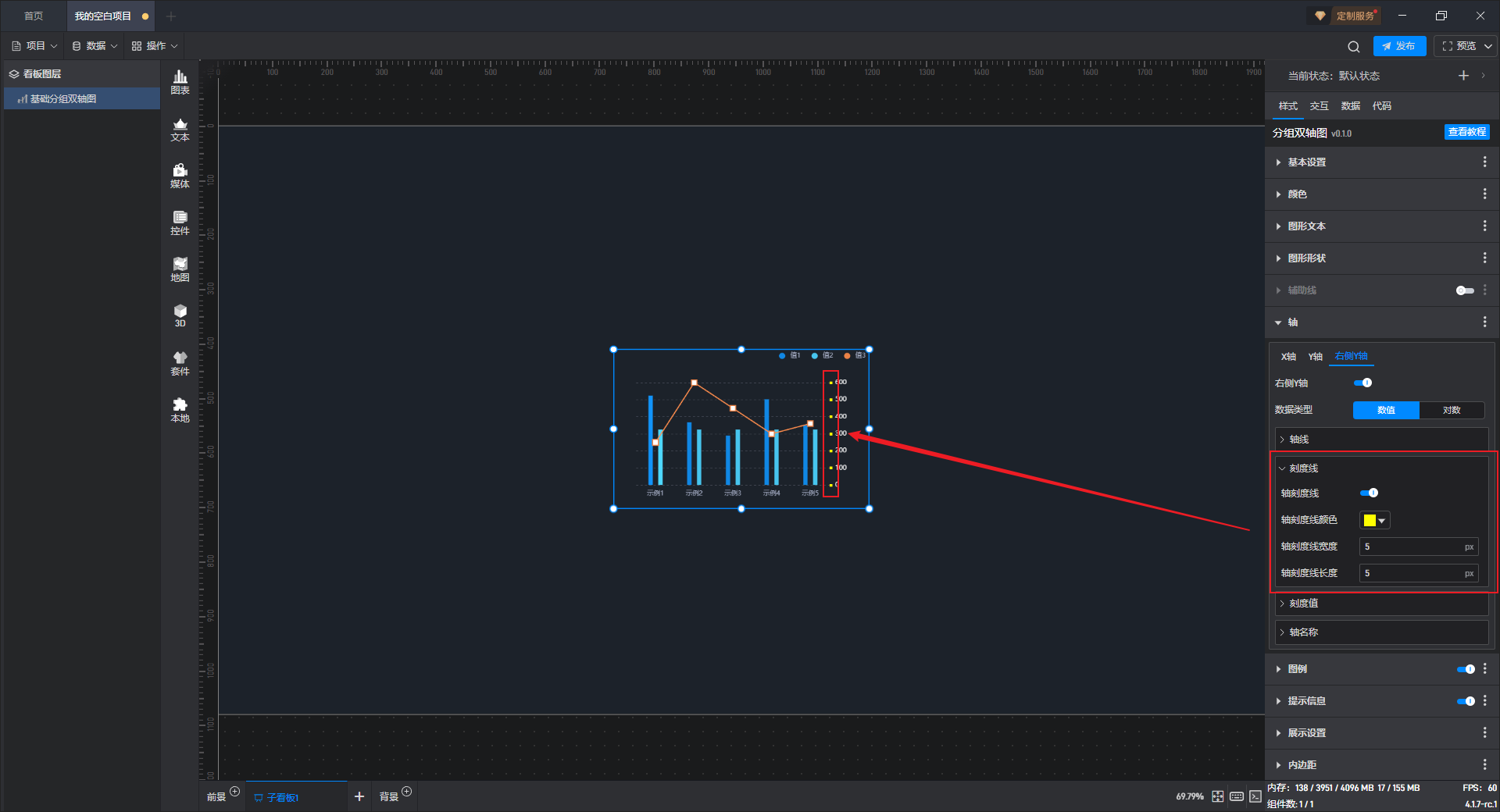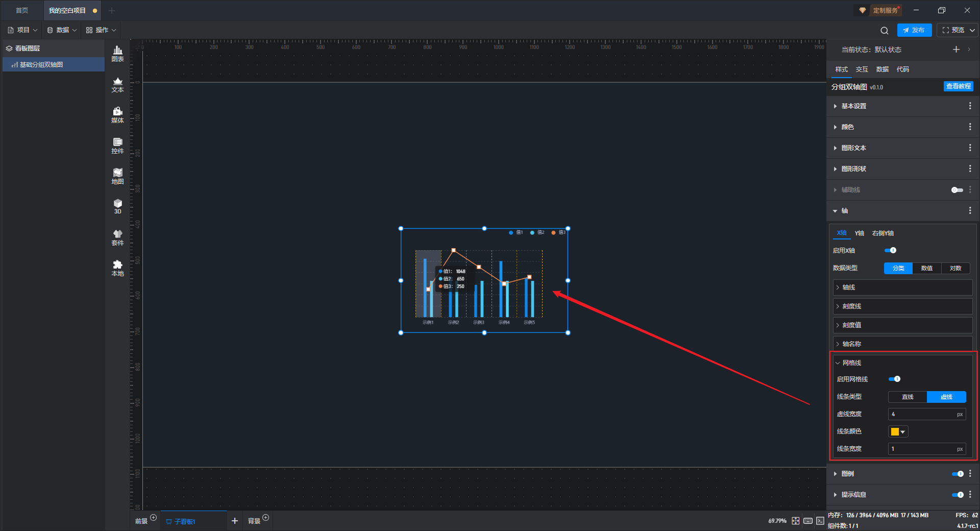 基础分组双轴图是分组双轴图组件的一种预设样式,包含了分组双轴图组件所有的功能。