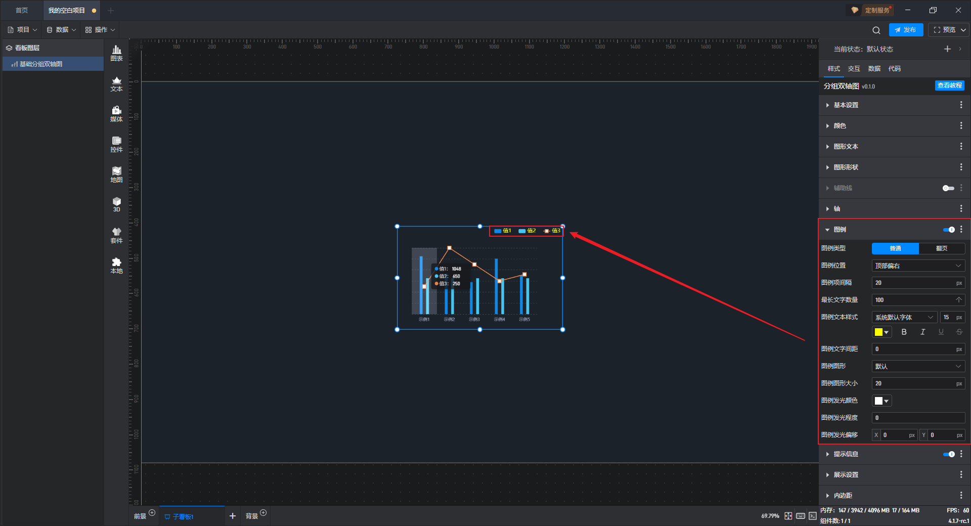 开启“显示图形文本”按钮后,组件中才能显示图形文字样式。