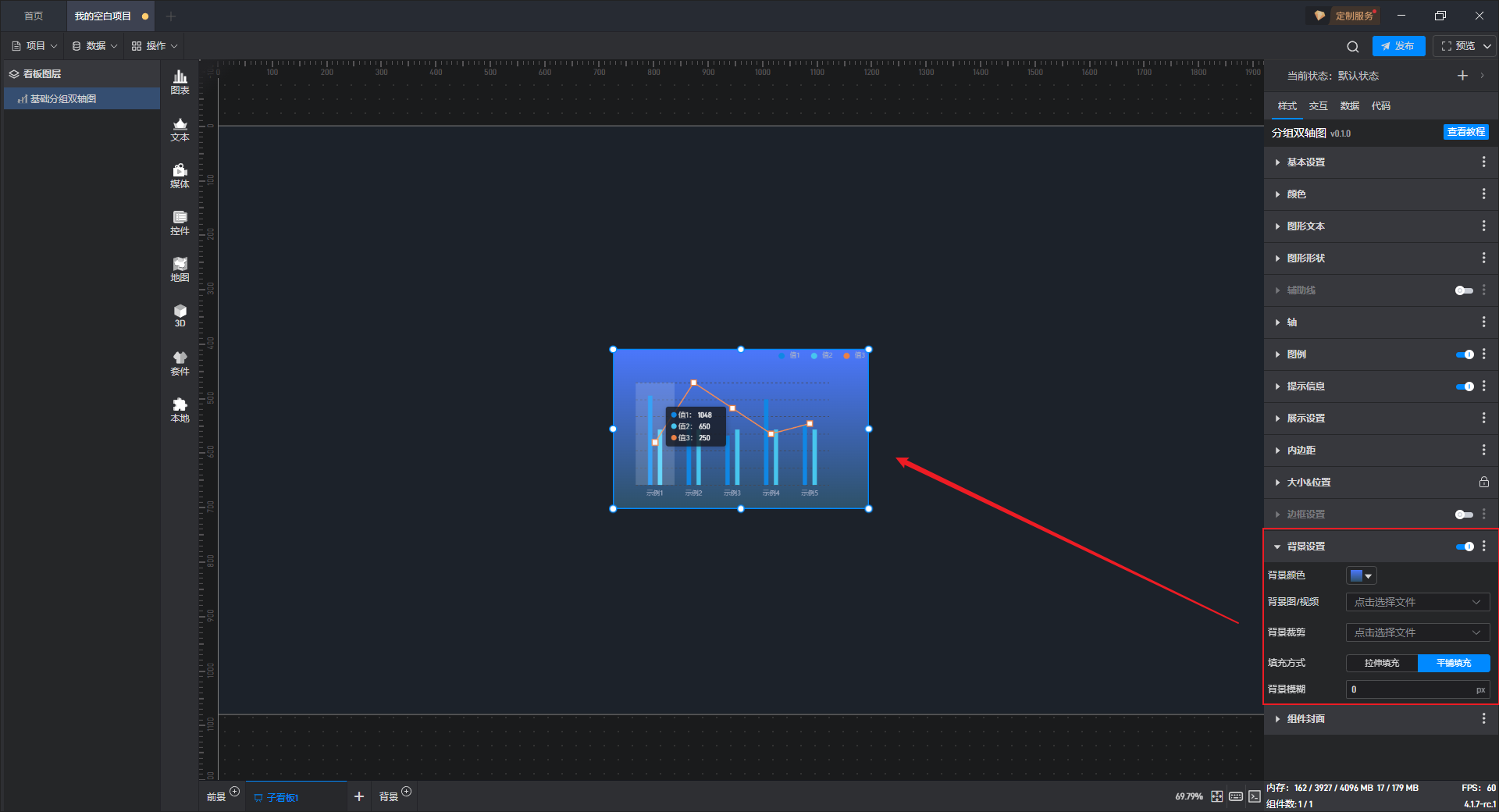 组件默认没有背景颜色,如果需要设置背景颜色,需要先开启“背景设置”项按钮。