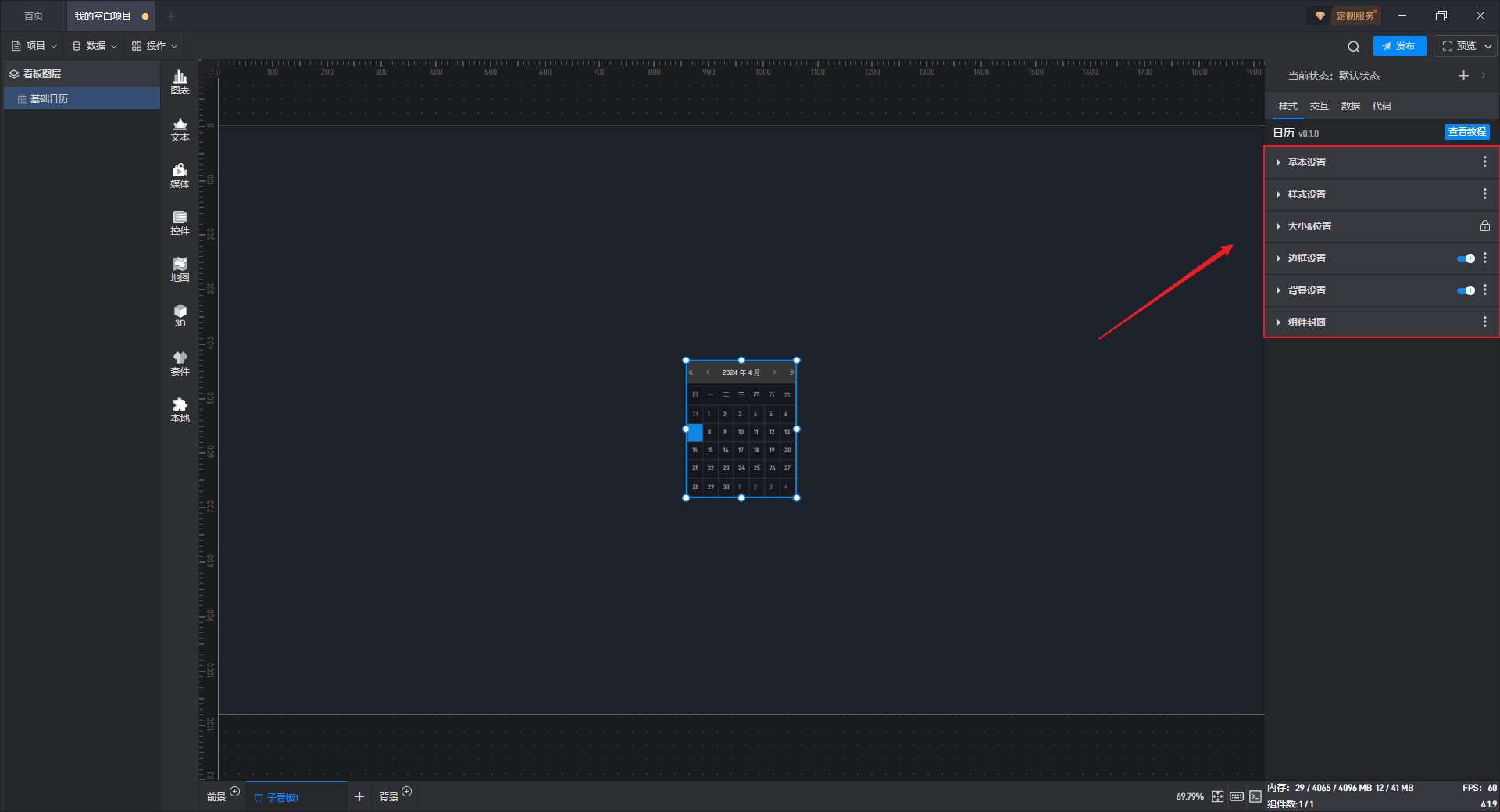 点击选中组件,在右侧“样式”设置窗口中可以看到多个不同的设置分类,每一个分类里都有不同的设置项,这些分类和设置项根据不同的组件会有不同的内容。