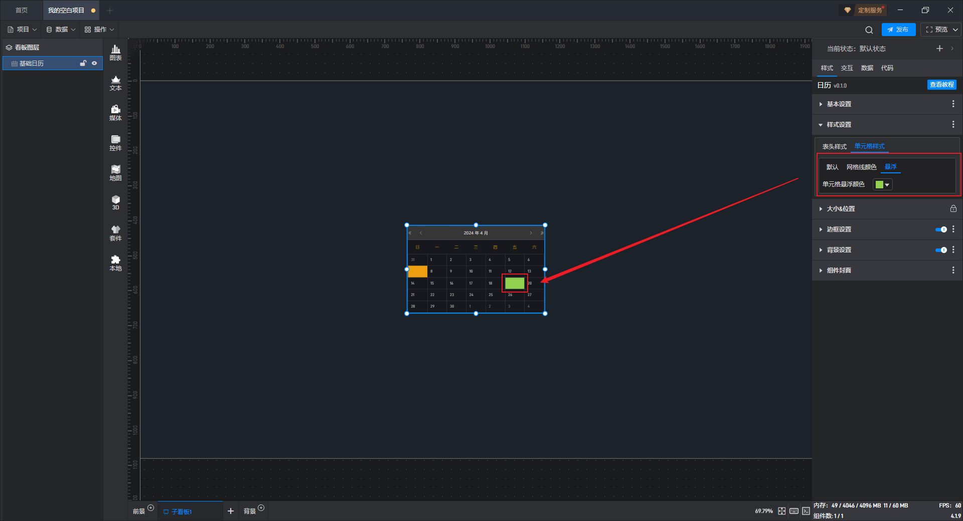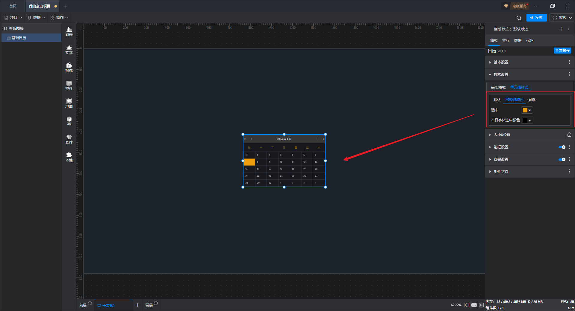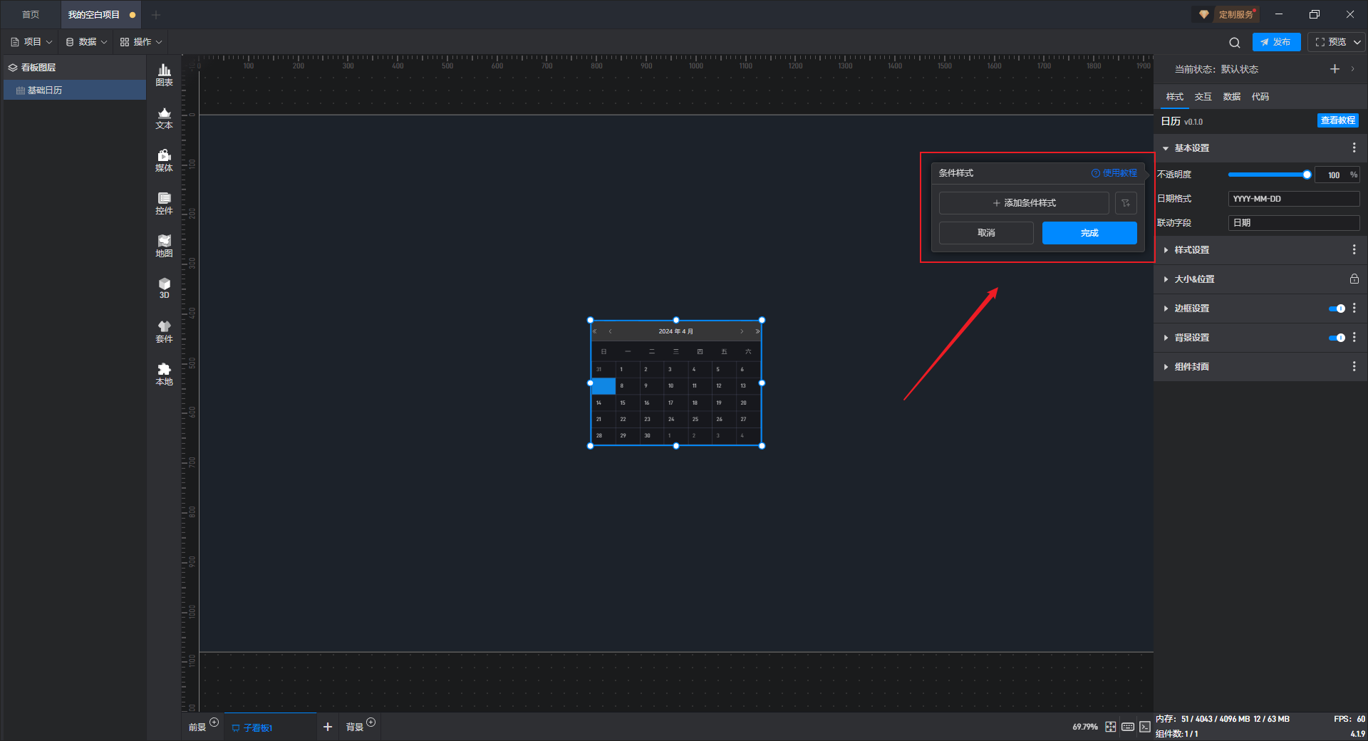 部分设置项的条件设置方式直接显示在该设置项中,可以直接在该设置项上设置,但基础日历组件的条件样式只能通过方式 1 进行设置。