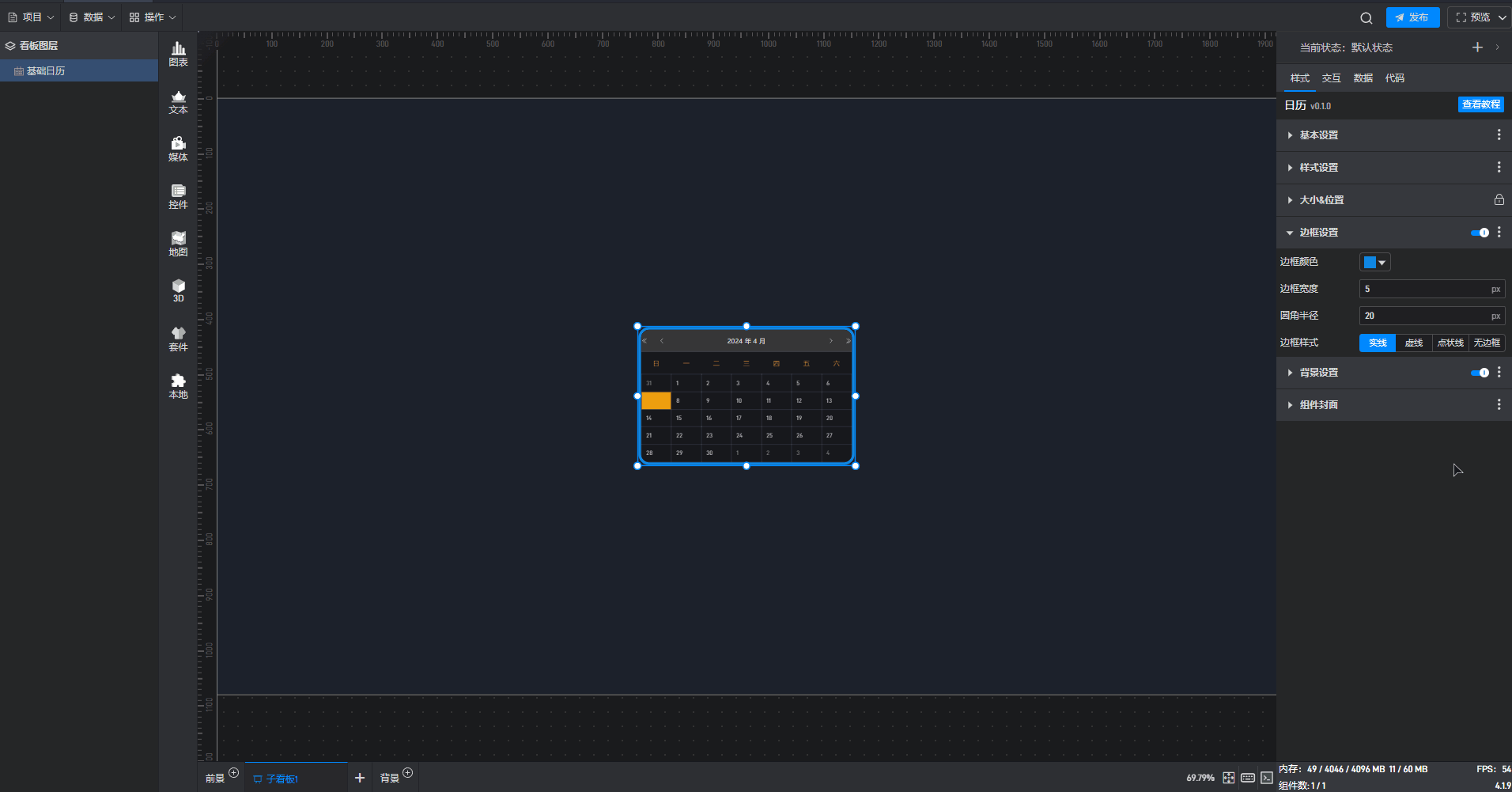 开启“边框设置”按钮后,组件中才会显示边框样式,才可以对组件整体边框样式进行配置。