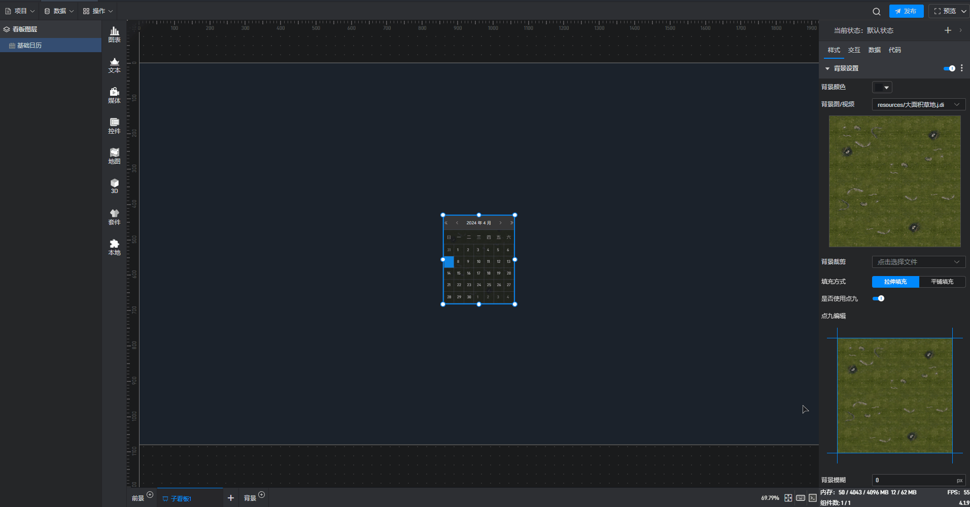 | 背景图/视频 | 可在此处添加本地图片或视频,充当组件背景。 |