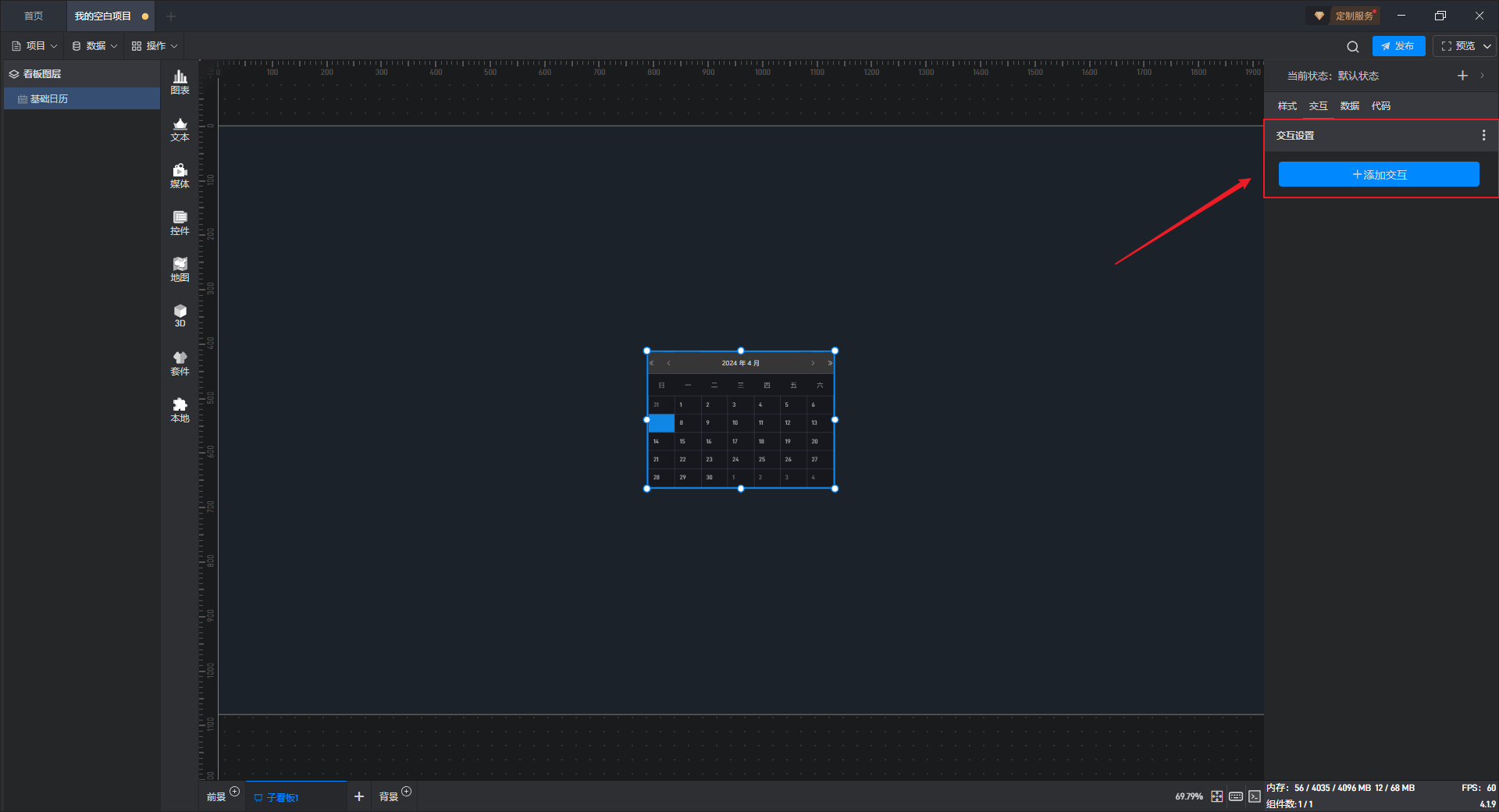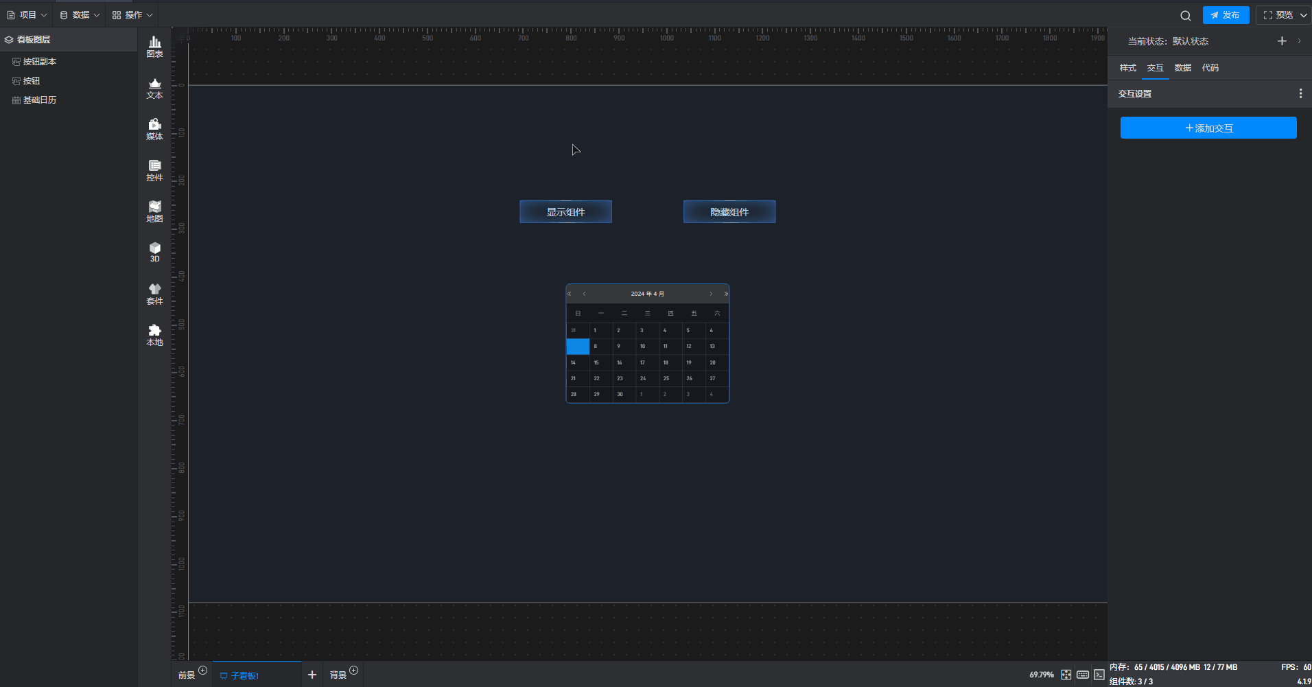 点击选中组件,在右侧“交互”设置窗口中可以对当前组件的交互进行添加和删除。
