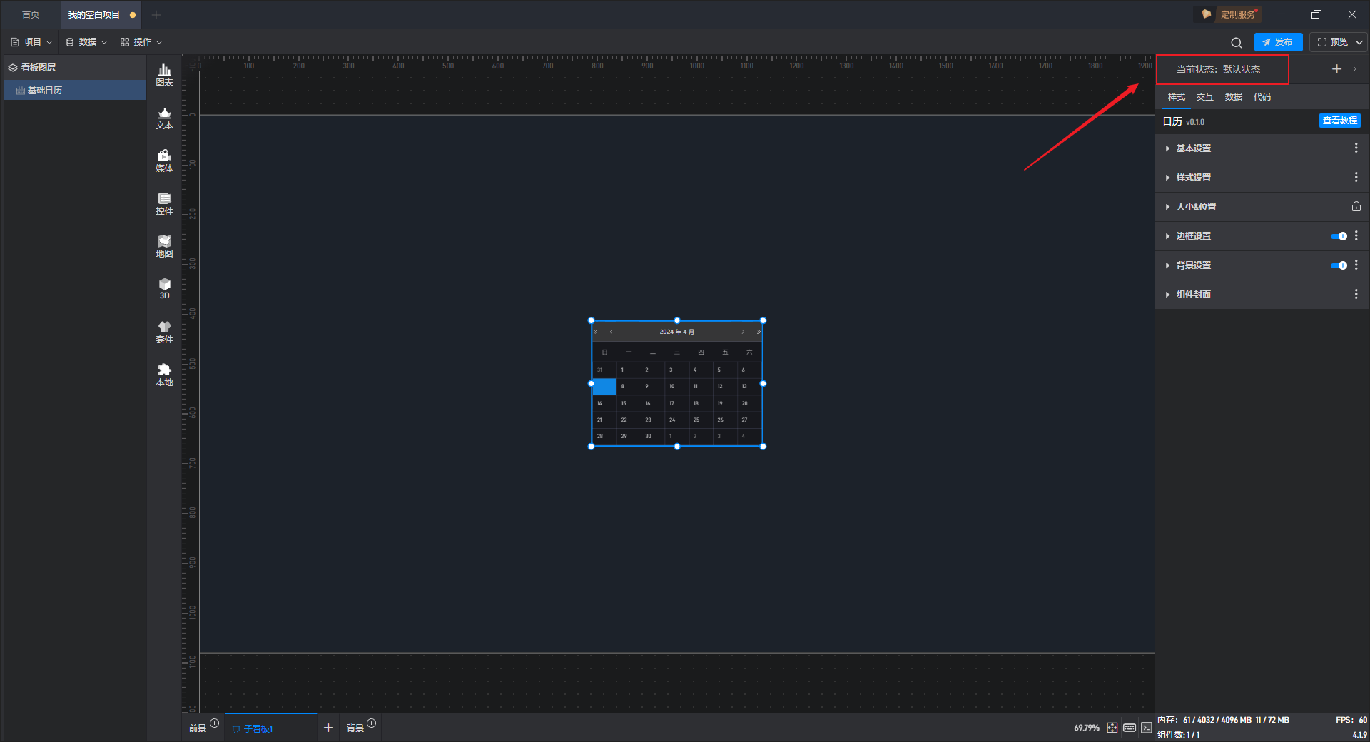 在编辑项目时,我们可以通过点击状态列表中的不同状态来手动切换组件状态。