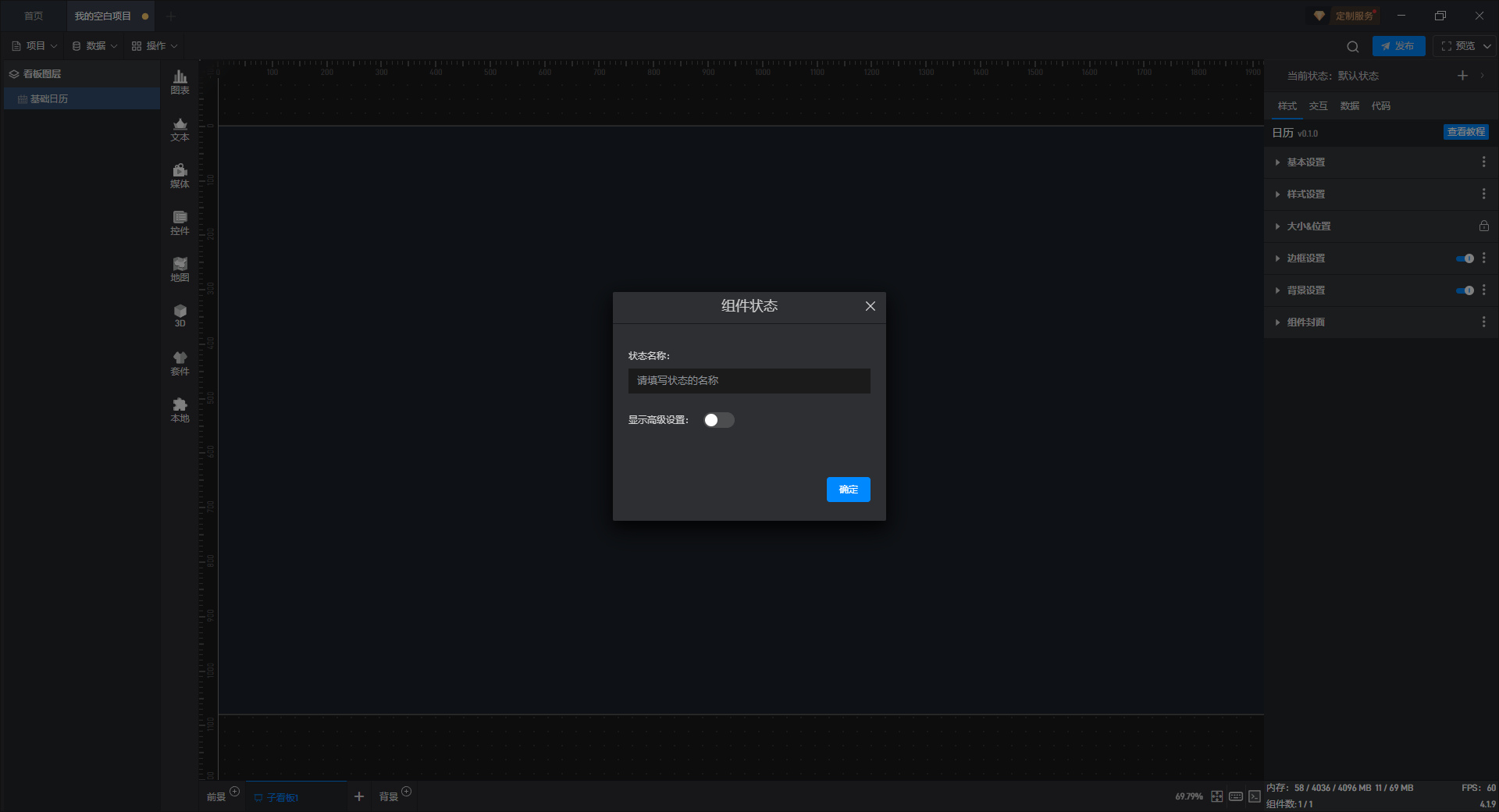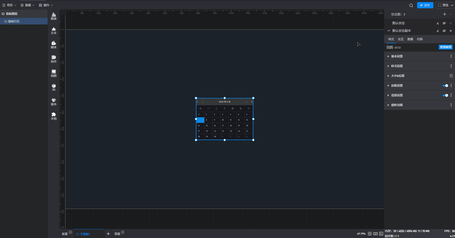 多状态主要用于通过数据条件或是点击交互(通常是点击其他组件来触发本组件的状态切换)来切换组件设置项的场景,这里的设置项包括组件的样式、交互、数据和代码。