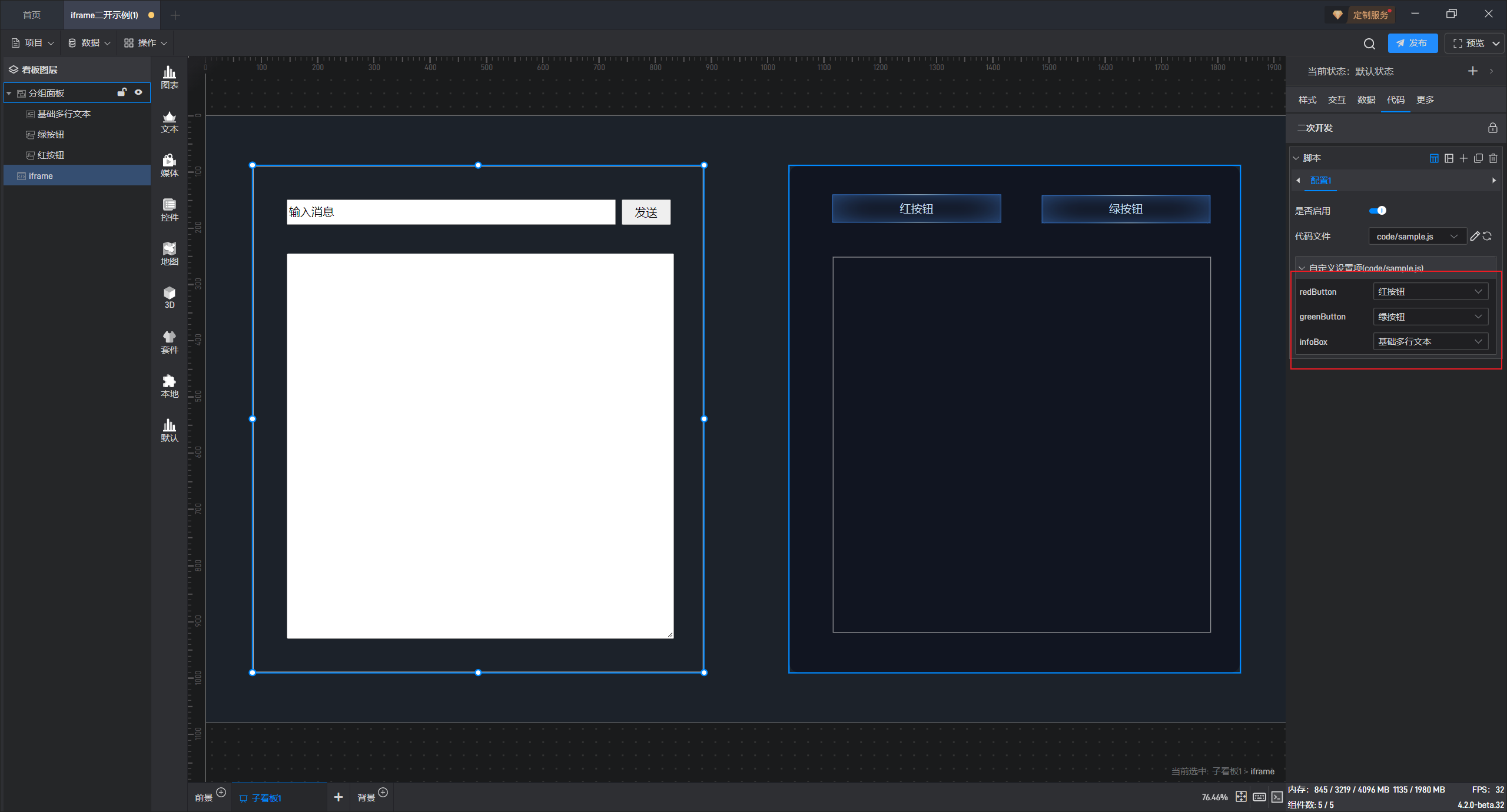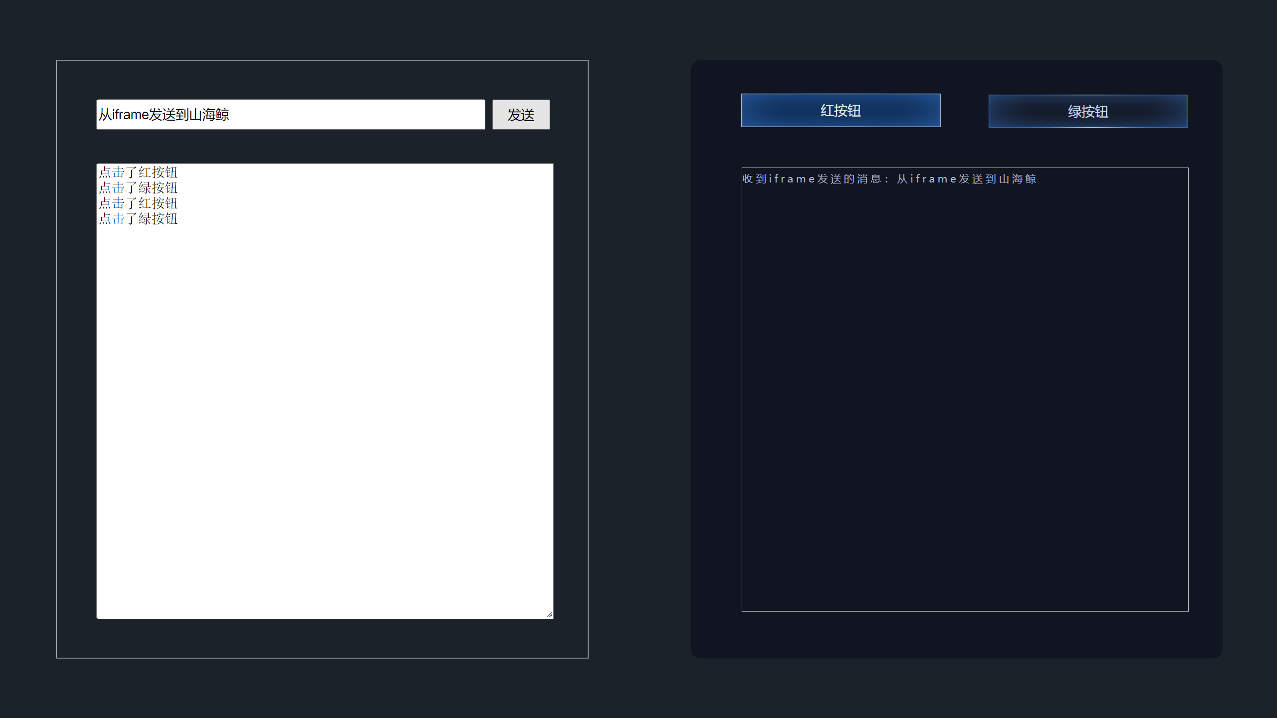选择好之后,就可以看到 iFrame 内的内容和山海鲸组件的内容就可以正常通信了: