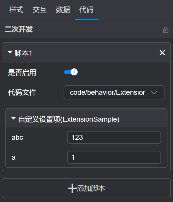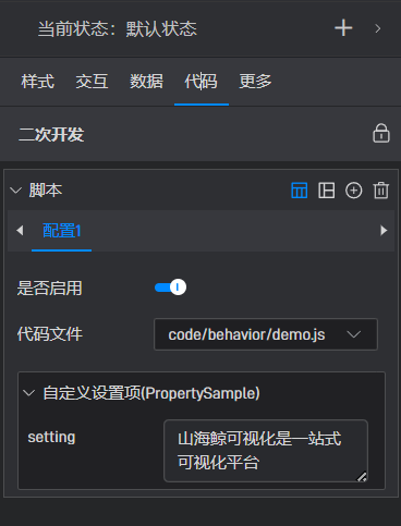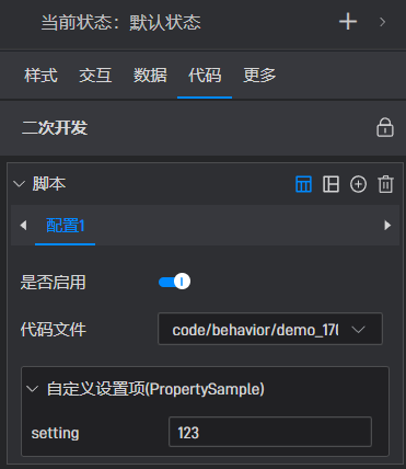 //公开属性,会生成设置项,生成的设置项在“数据-二次开发数据字段”中