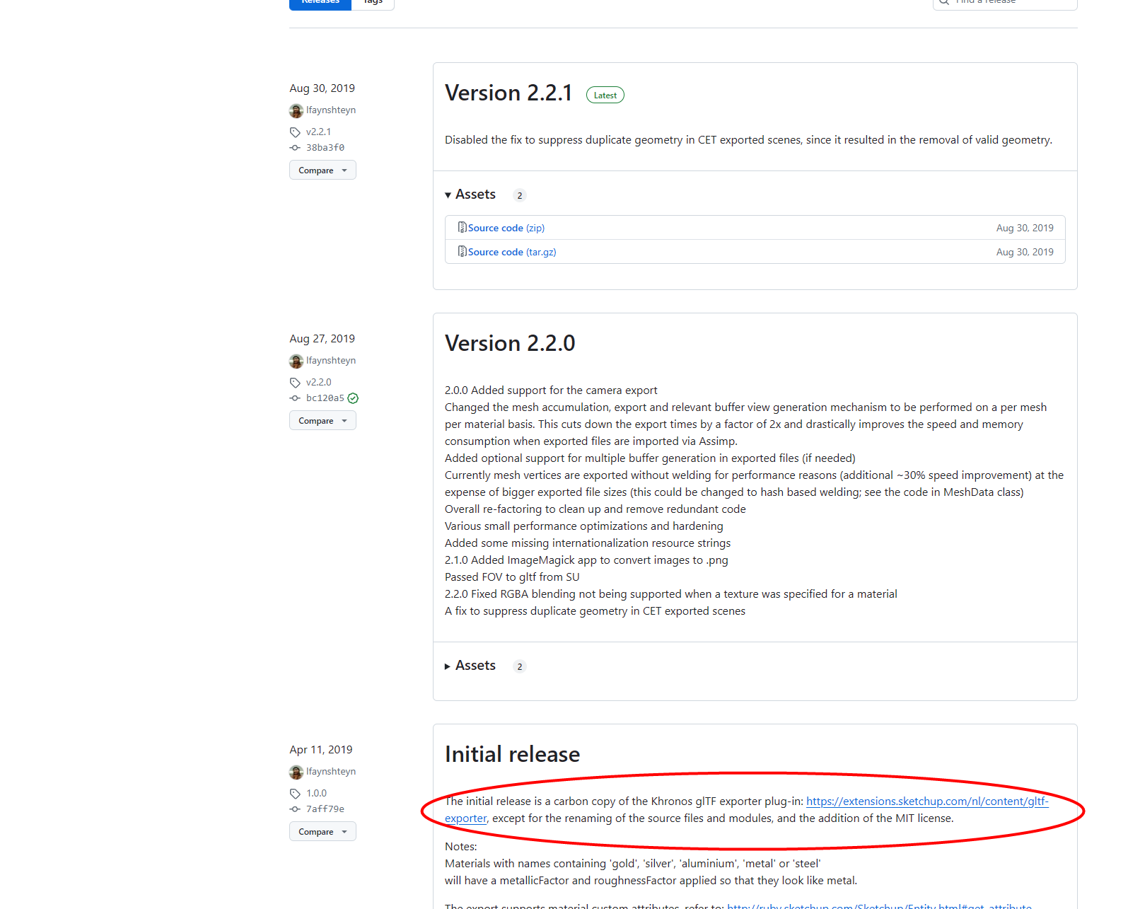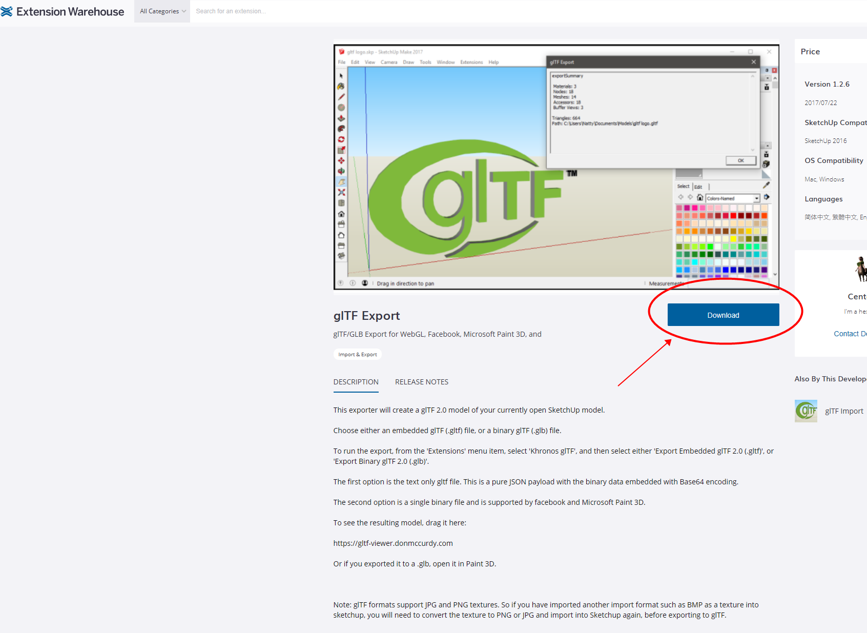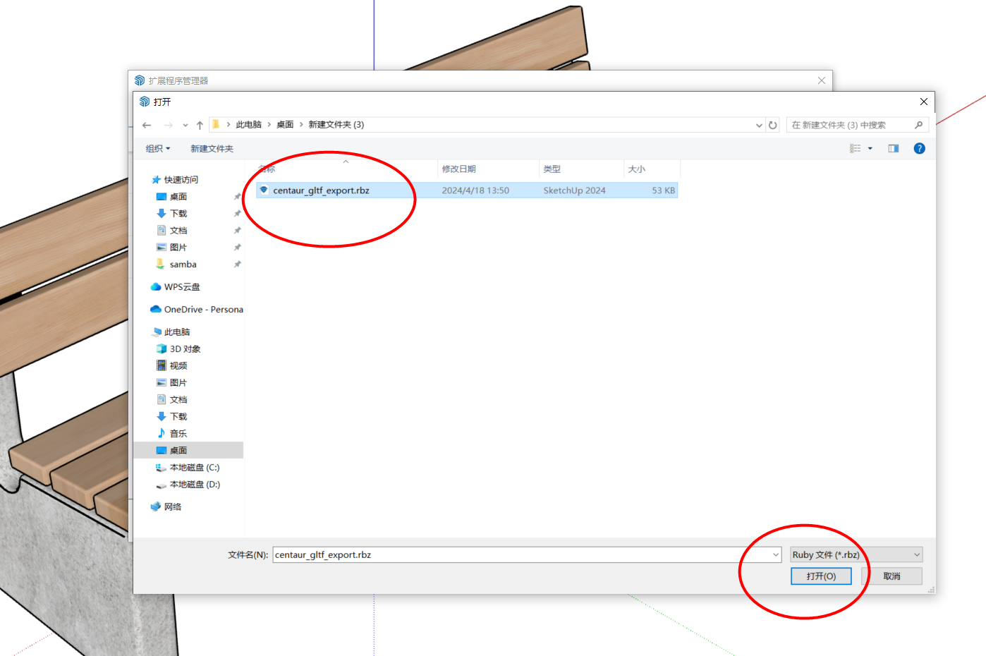 安装插件,打开开源插件的网址:Releases · YulioTech/SketchUp-glTF-Exporter-Ruby · GitHub,根据图片指示下载插件,插件后缀为 rbz。