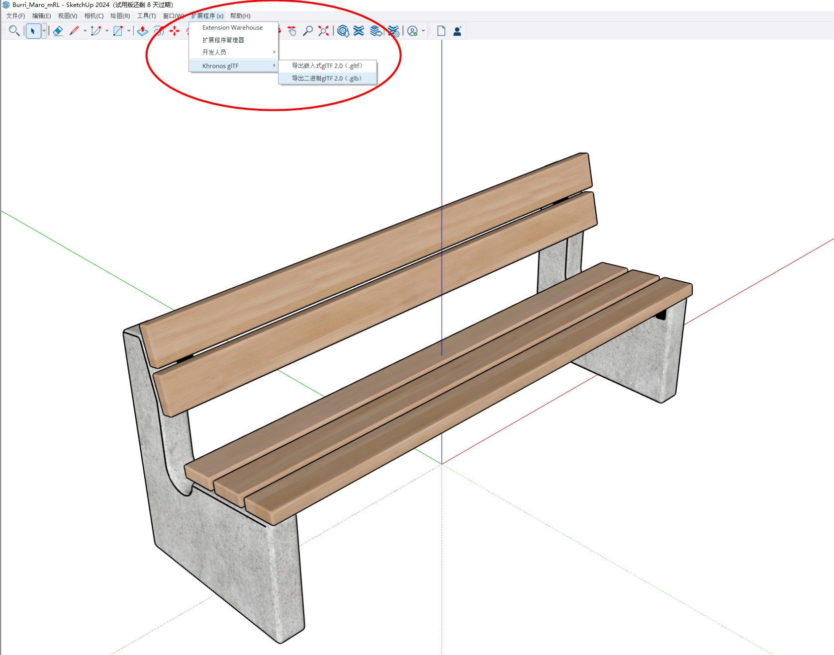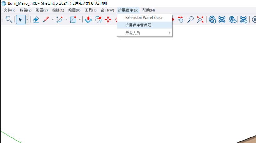 SketchUp 常用版本有 SketchUp Pro2018,SketchUp Pro2024等,SketchUp 不支持直接导出 gltf 格式模型,所以需要借助开源插件的帮助。下面就以SketchUp Pro2024 试用版来示例如何将模型导入到鲸孪生。