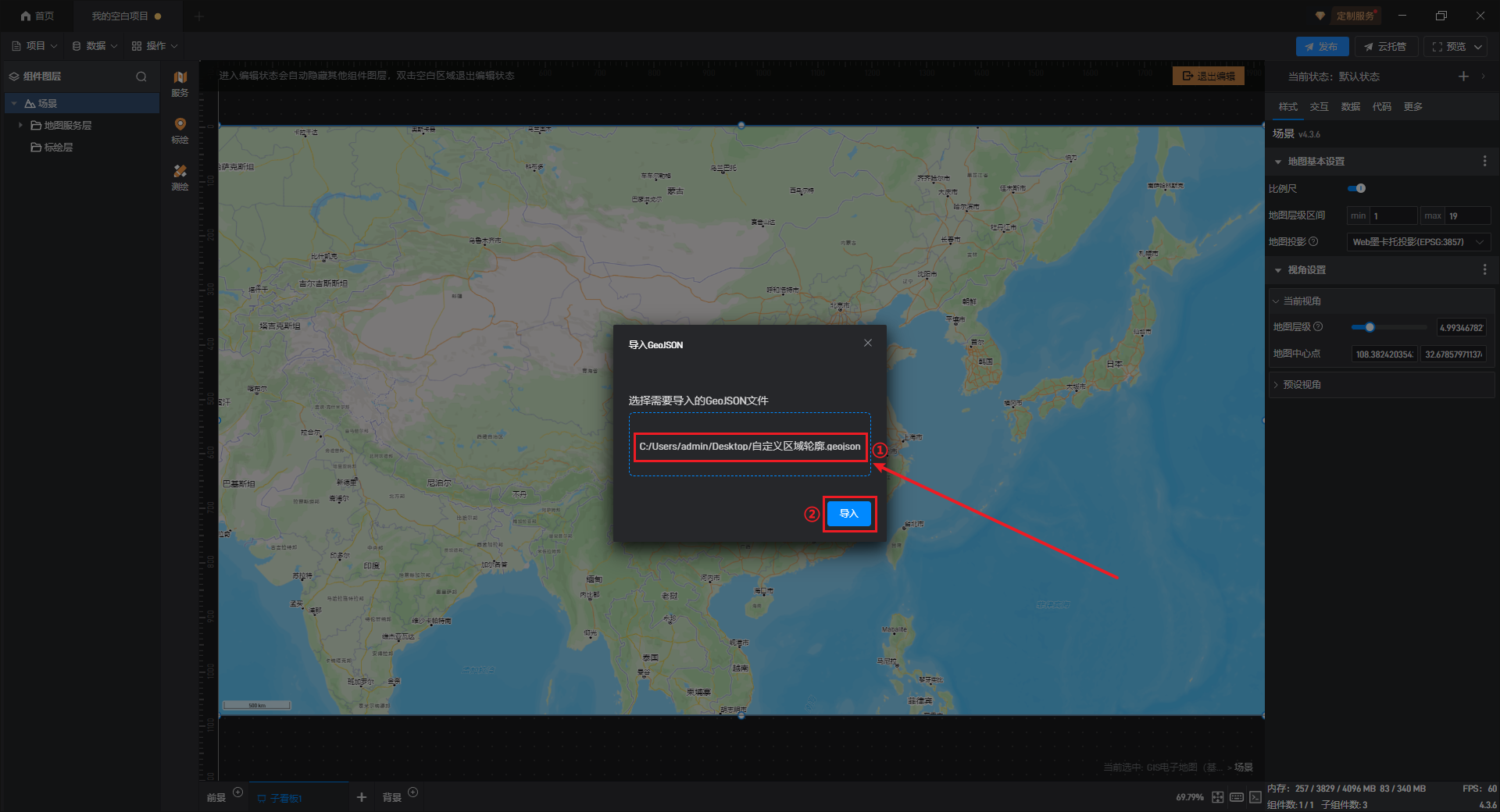 选择本地的“GeoJSON 文件”后,点击“导入”按钮即可成功导入。