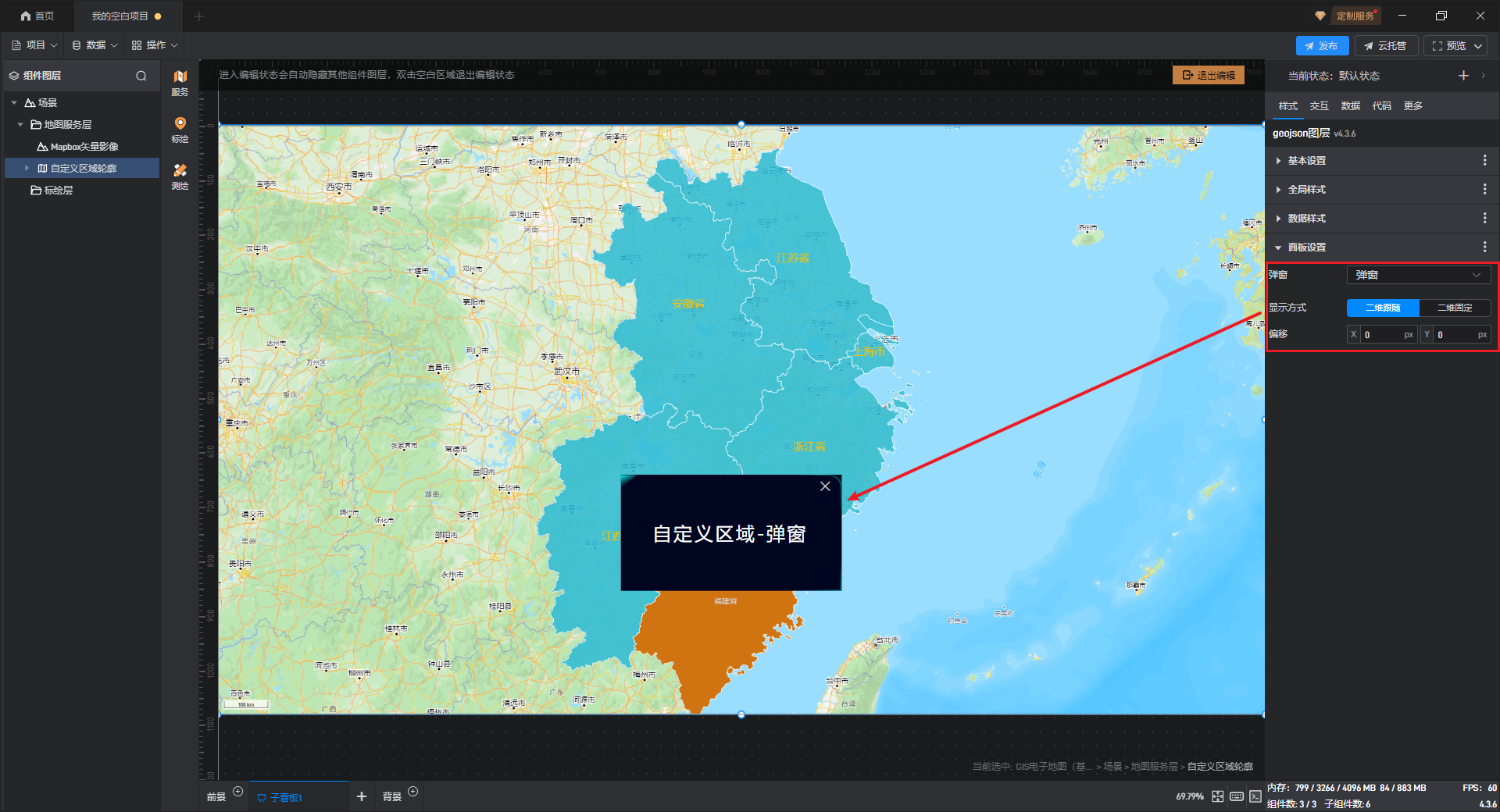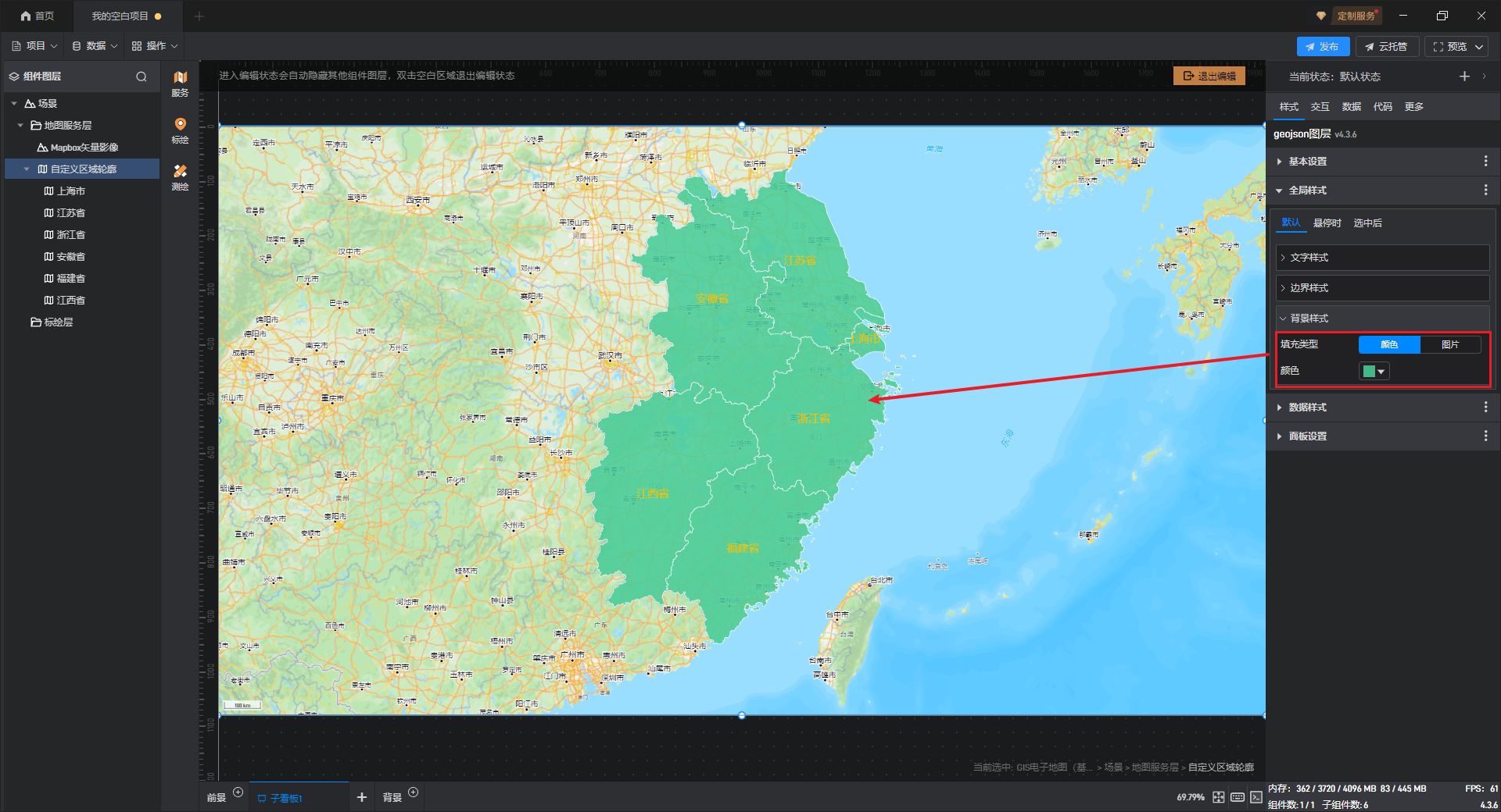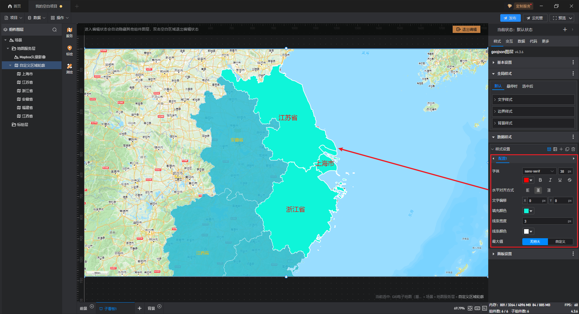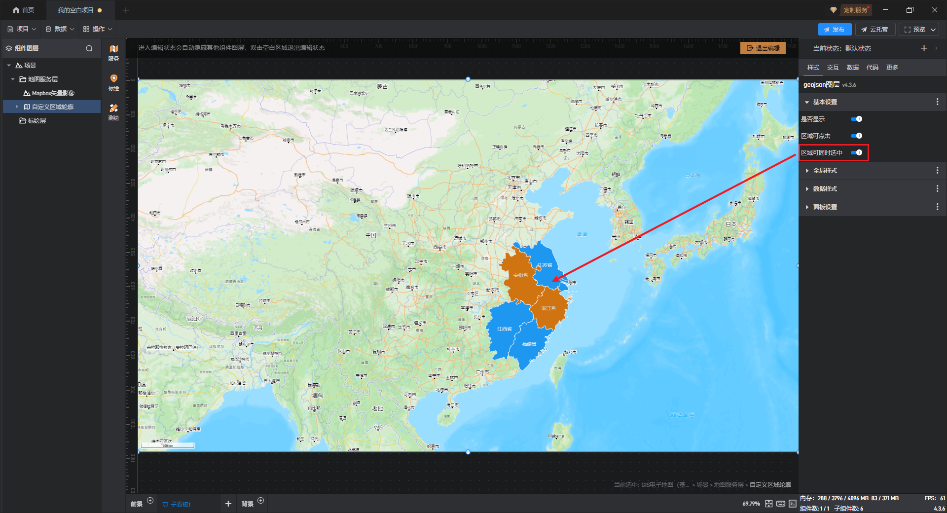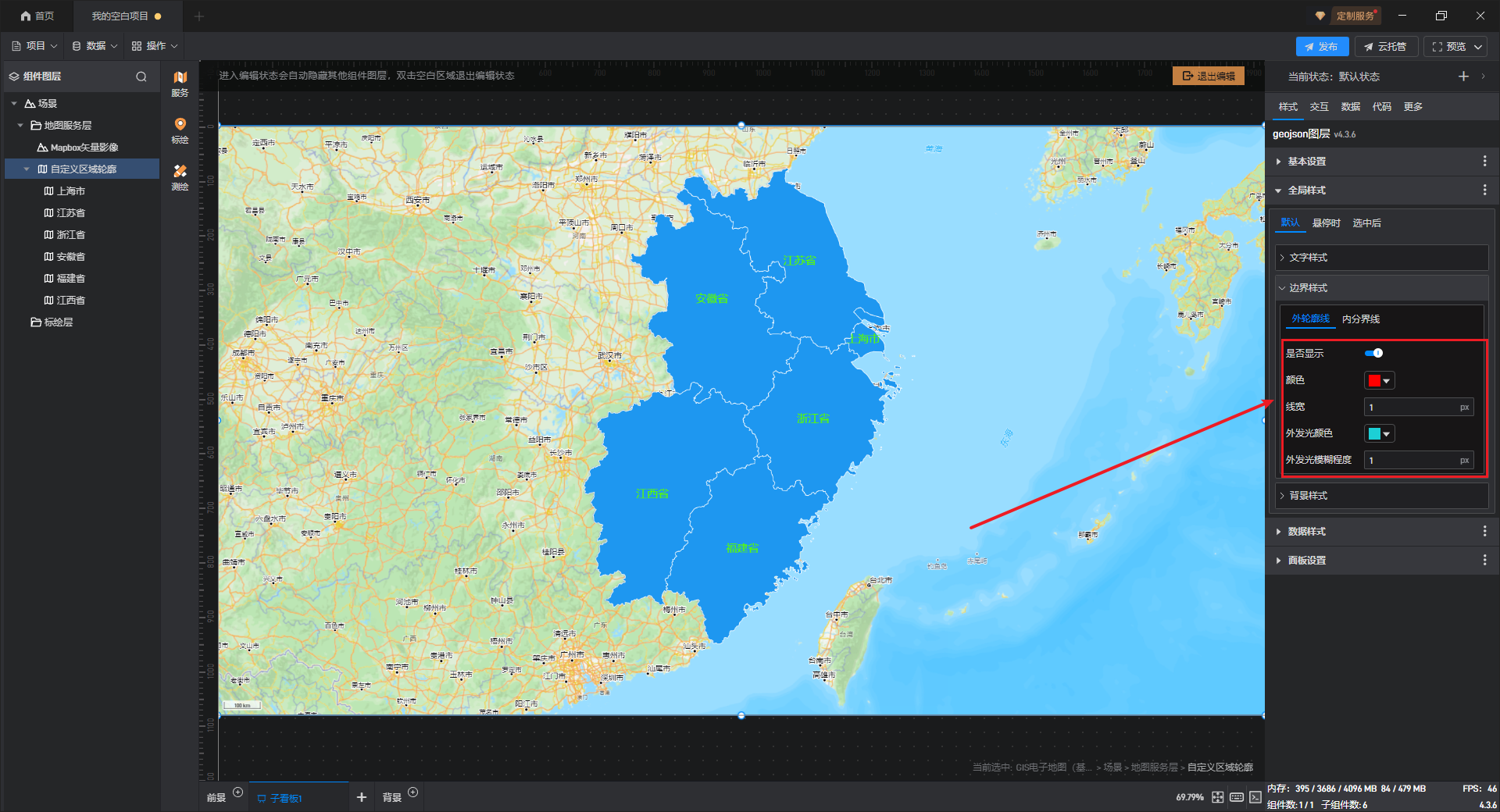 在左侧组件图层点击选中“自定义区域轮廓”图层,可以对其进行一些通用的基础设置,下面逐个进行介绍: