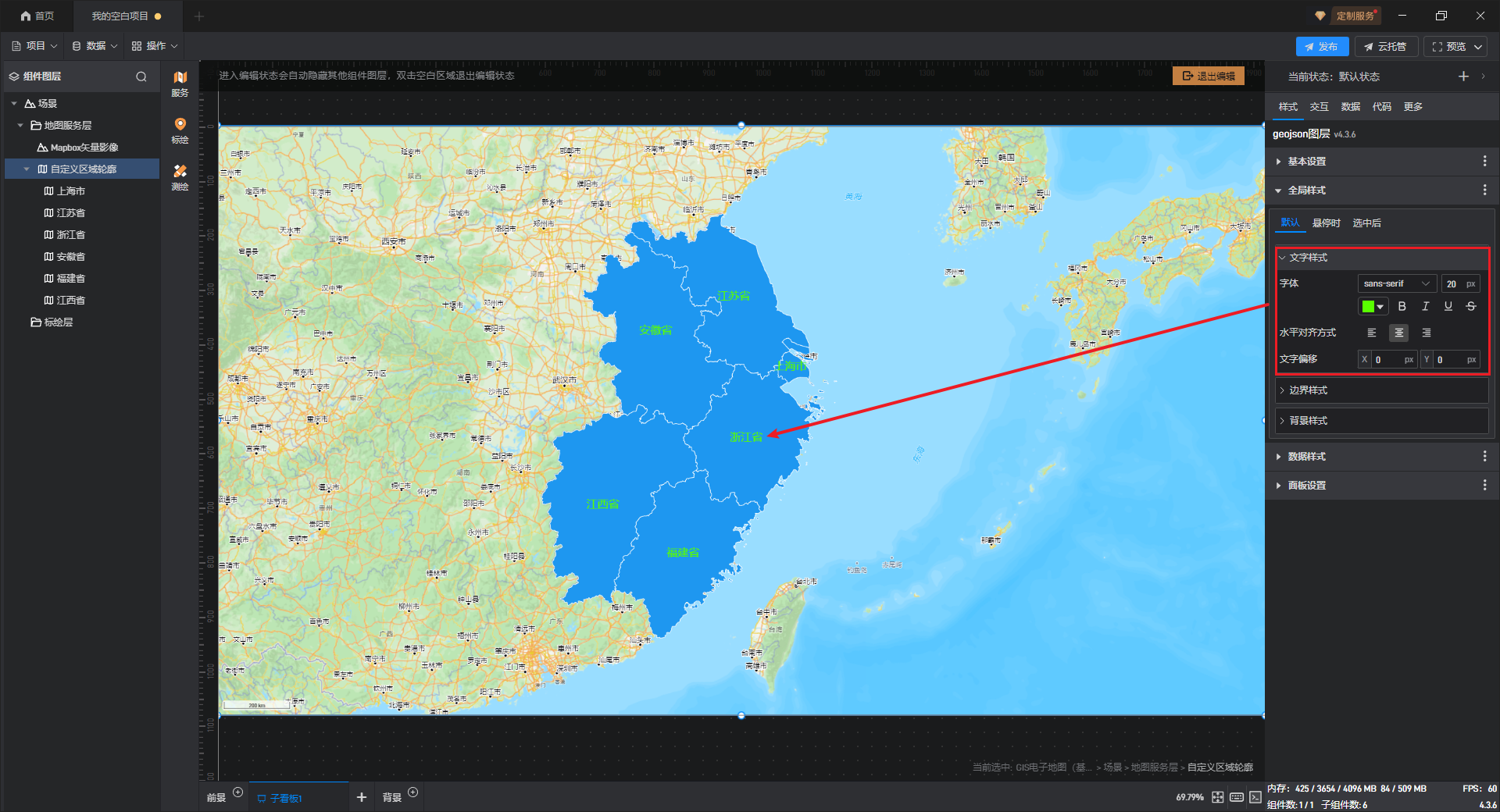 自定义区域轮廓 全局样式文字样式设置,如下图所示: