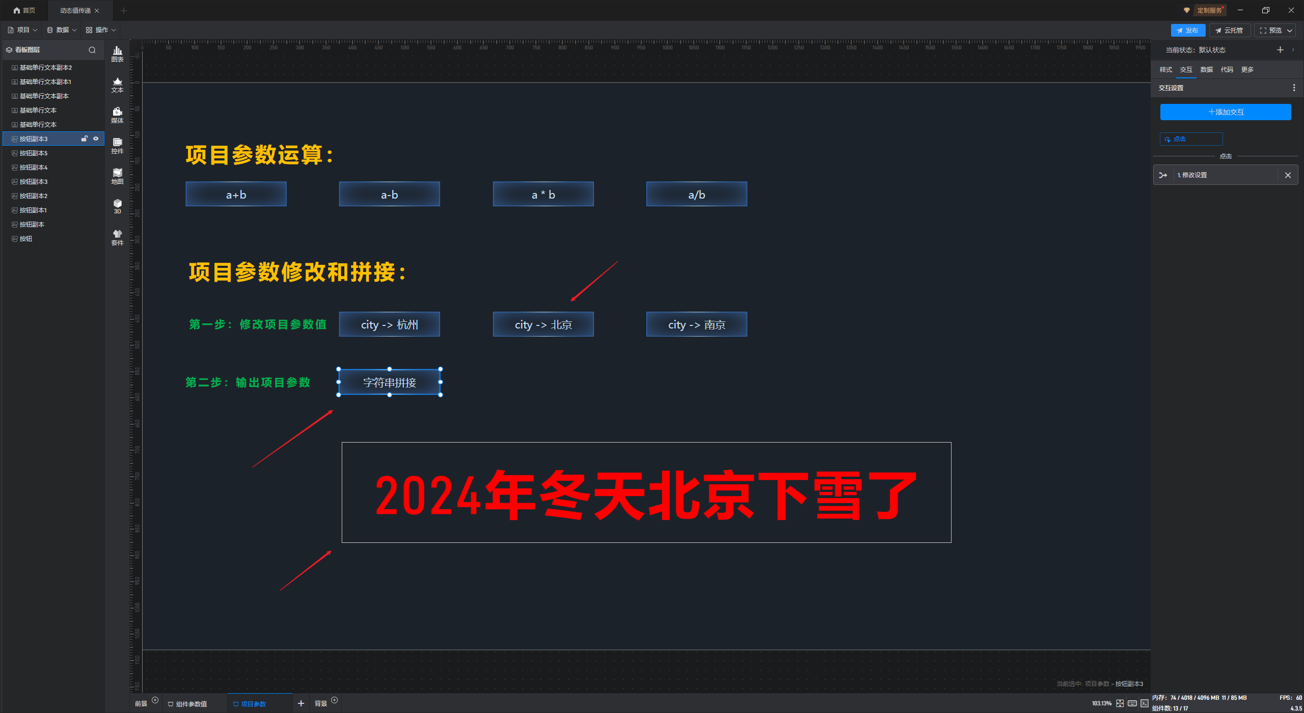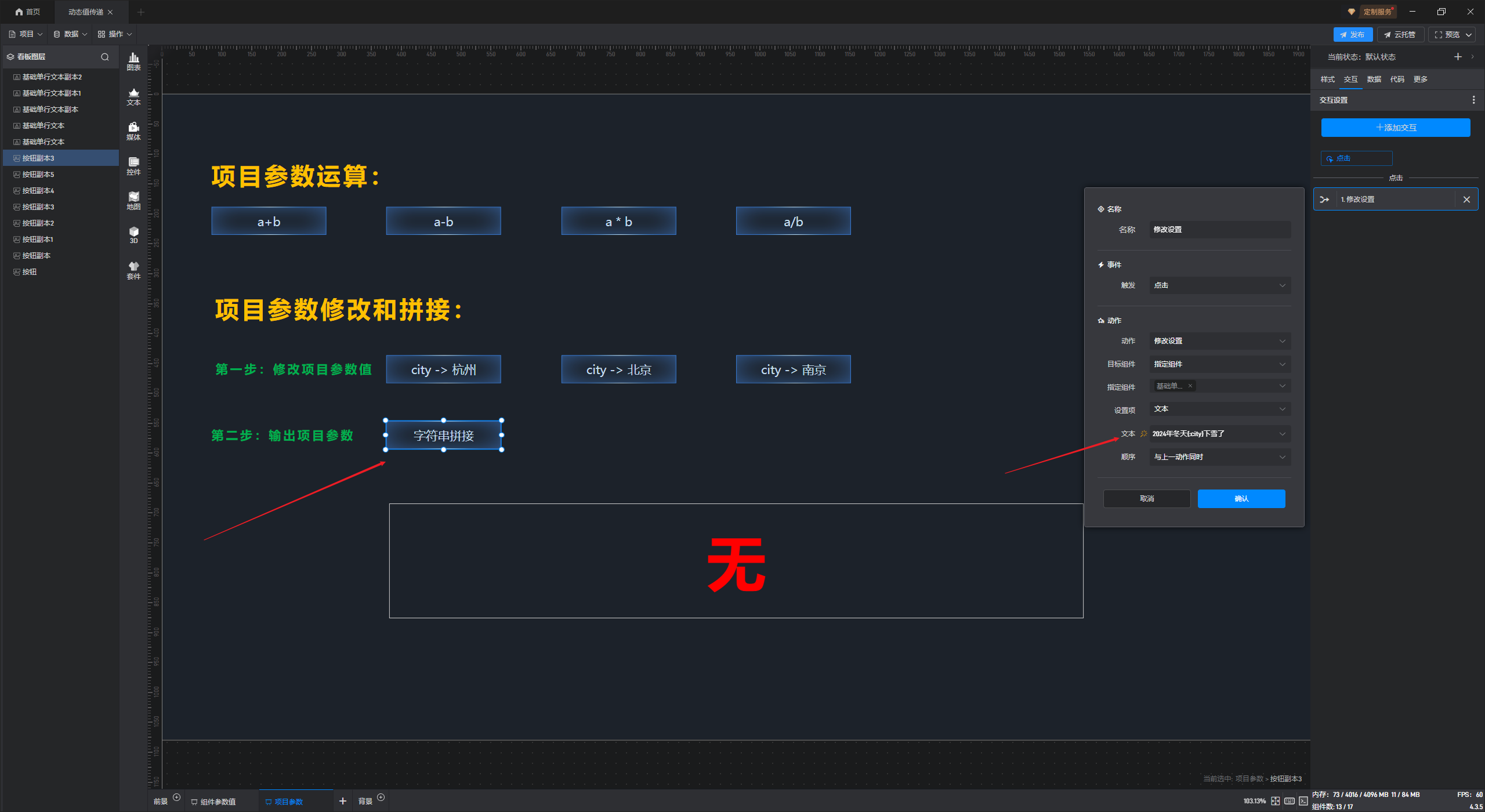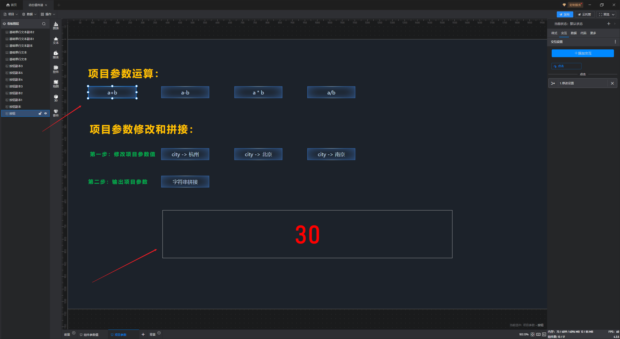 通过交互中的动态值设置,我们也可以进行项目参数的运算和传递。