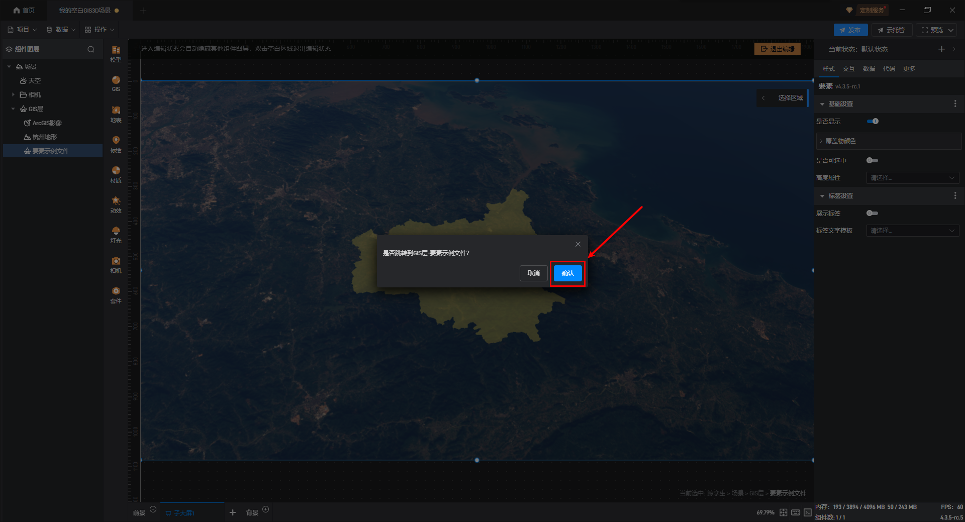 导入后会弹出跳转提示,点击“确认”可以将视角自动切换至要素位置。