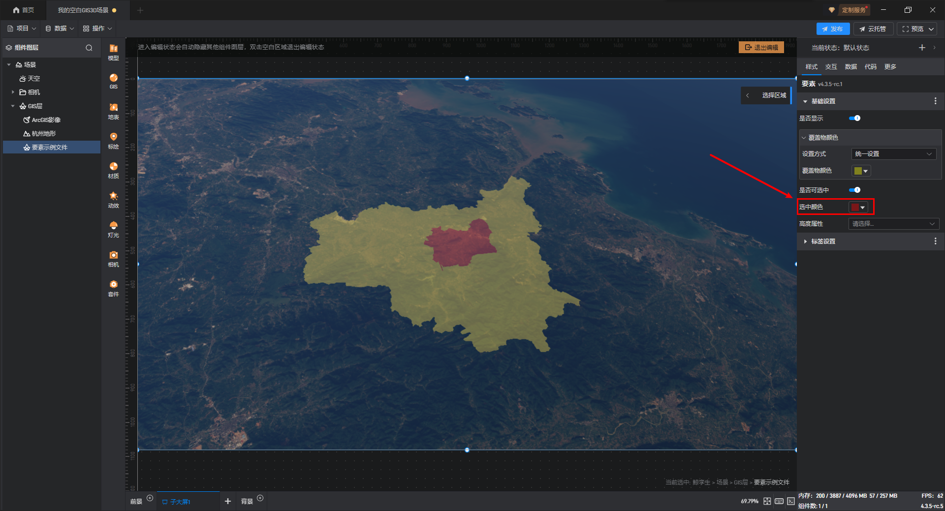 | 选中颜色 | 自定义设置要素区域被选中时,覆盖物显示的颜色。 |