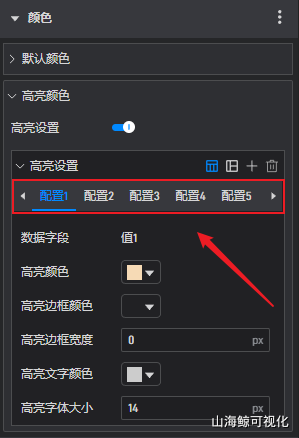 开启“高亮设置”的按钮后,才可以单独对组件中每个数据字段的高亮颜色进行配置。