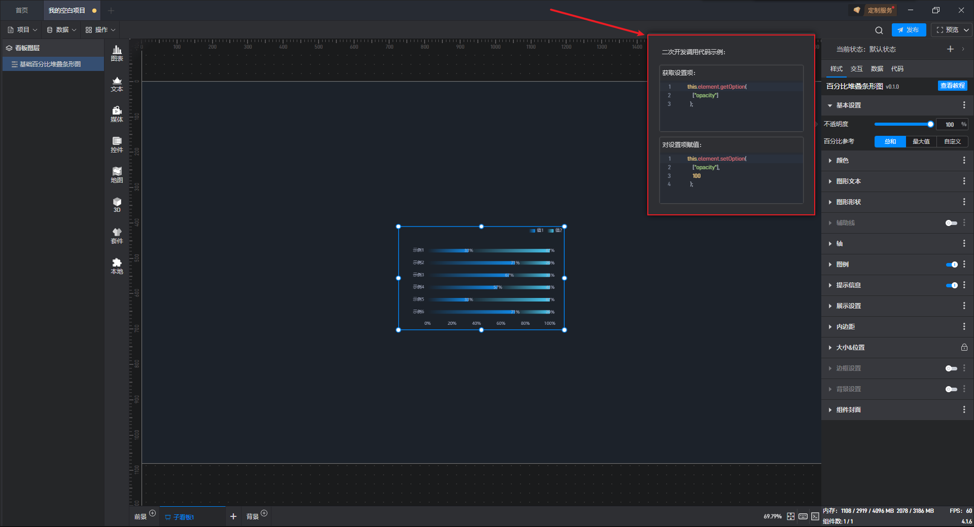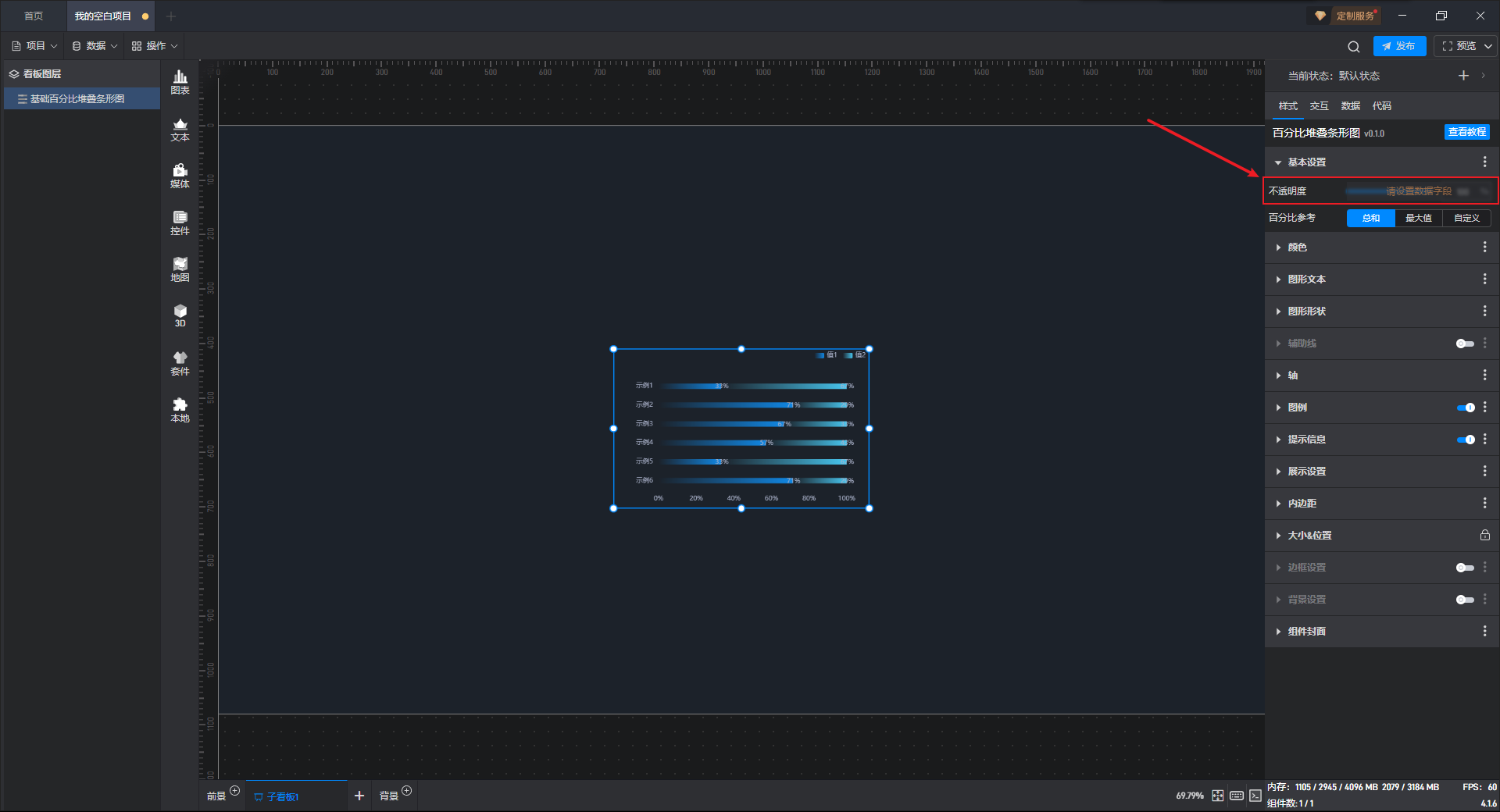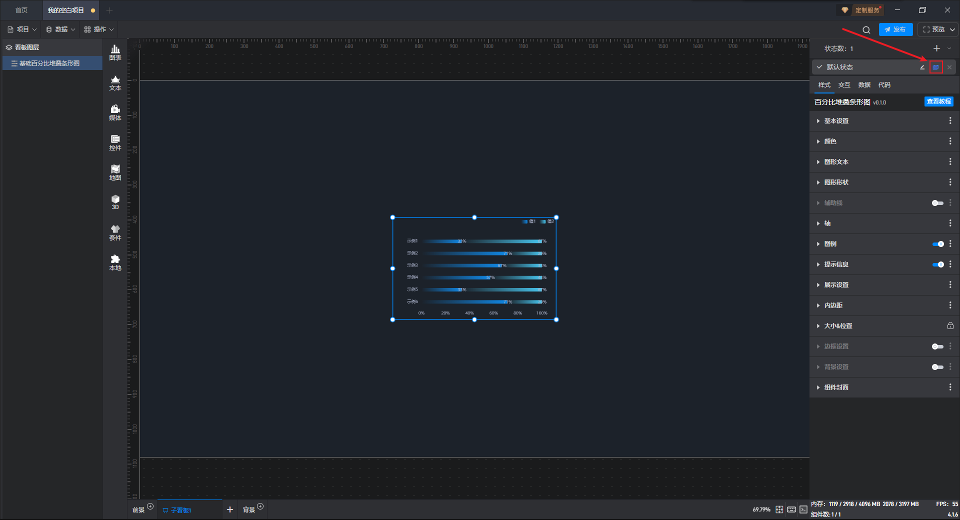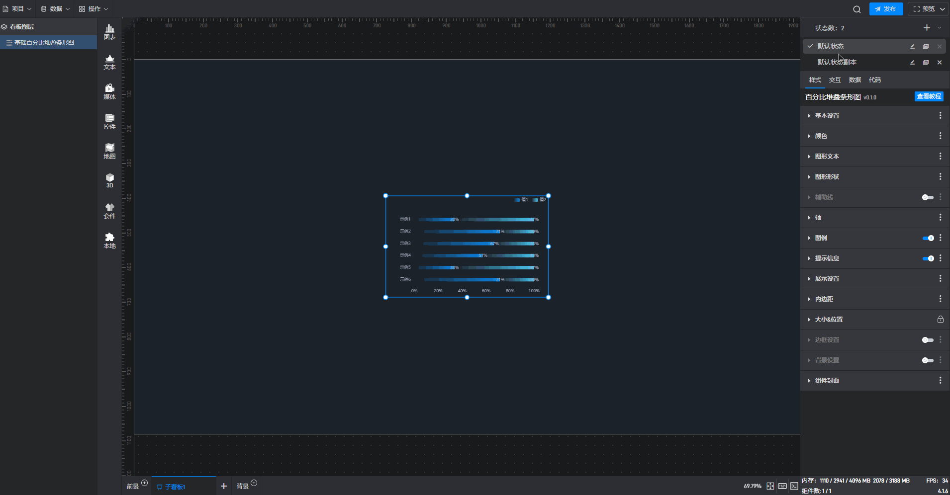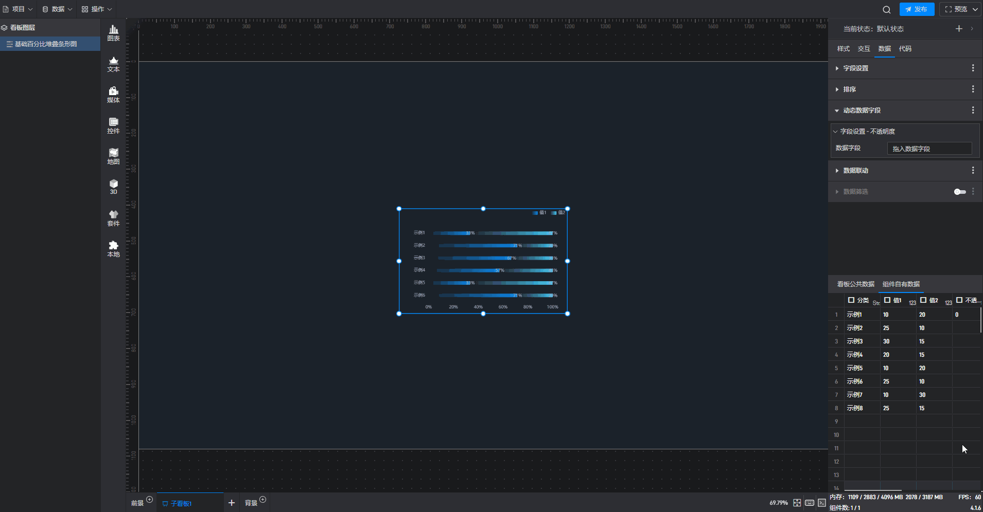 下面我们以基础百分比堆叠条形图为例,给大家介绍一下该组件的使用步骤: