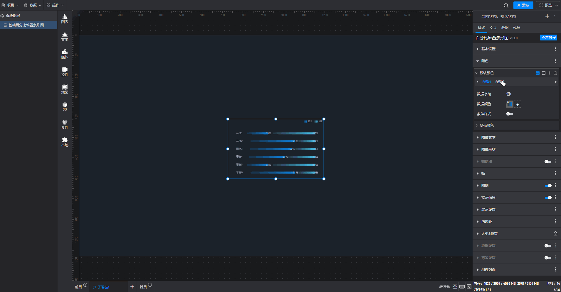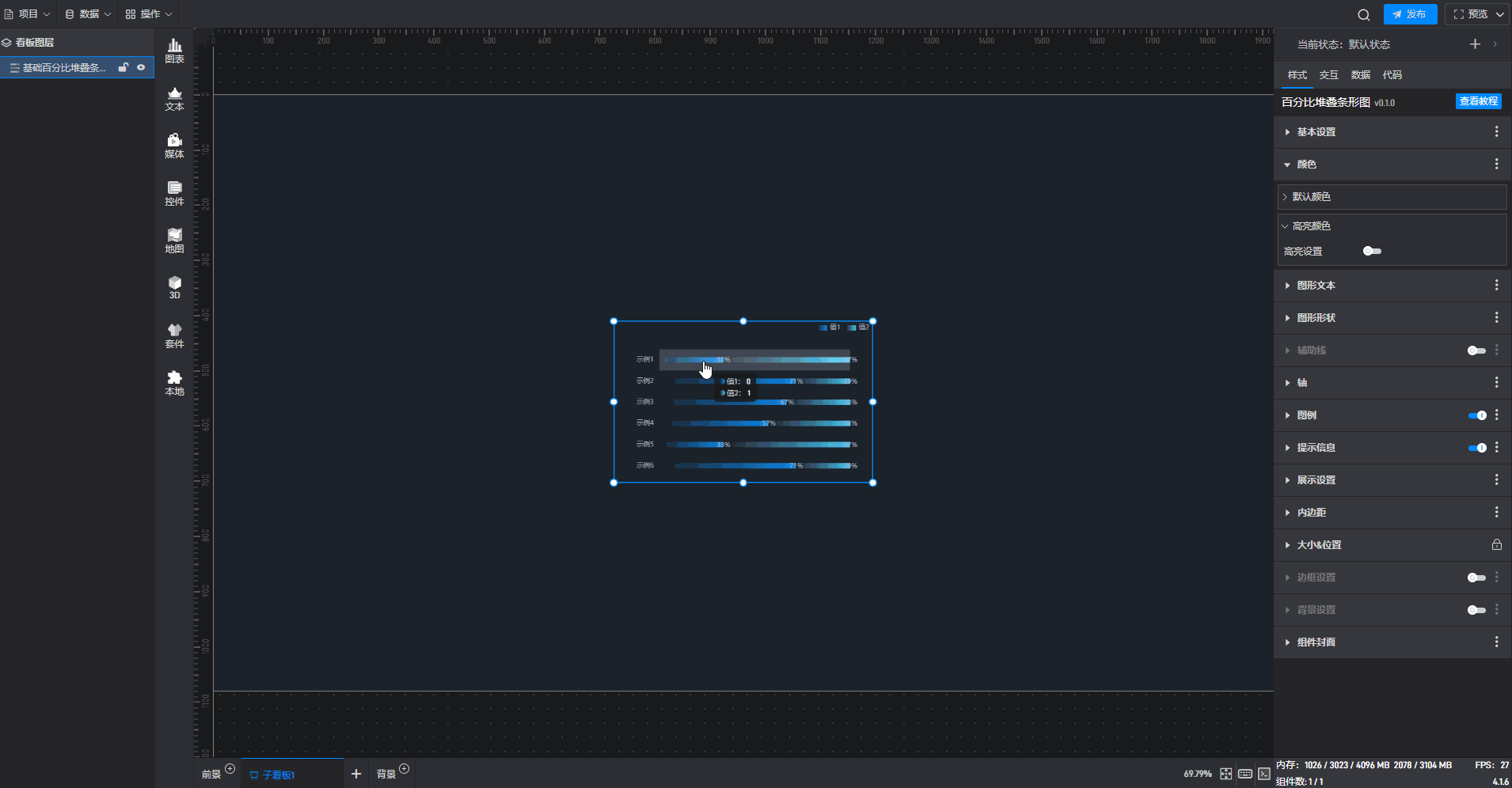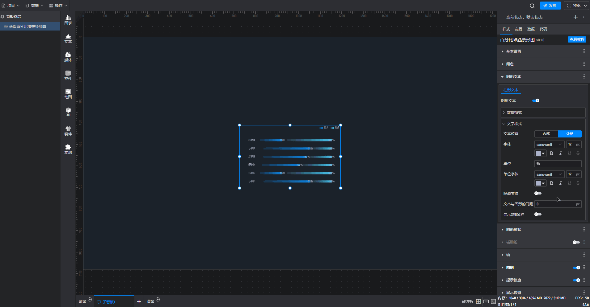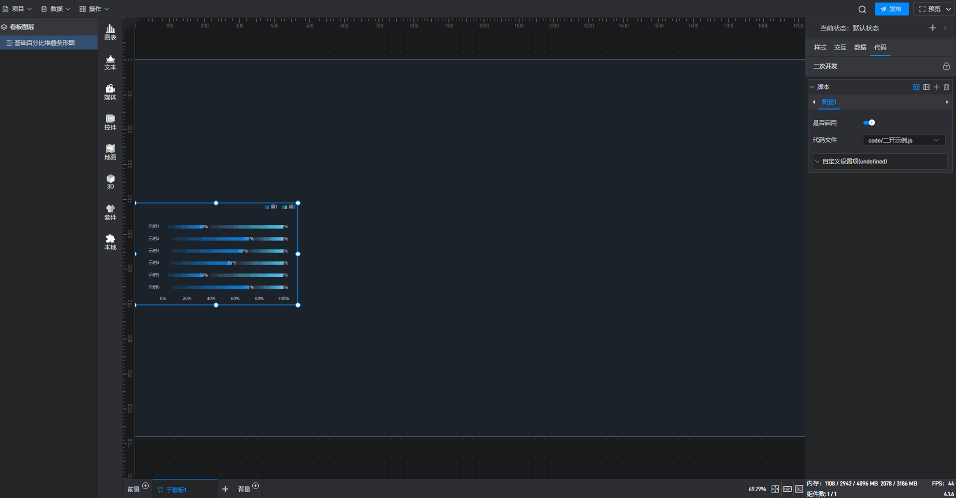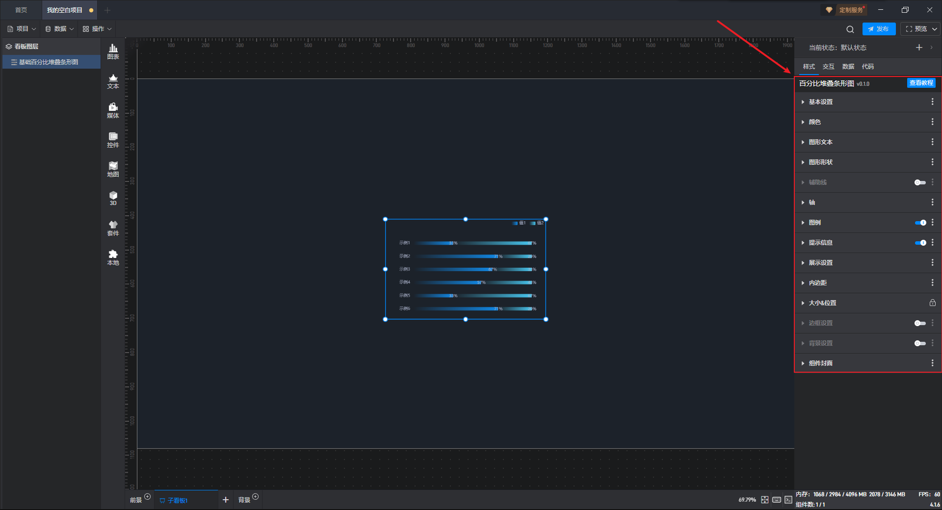下面我们以基础百分比堆叠条形图为例,给大家介绍一下该组件的使用步骤: